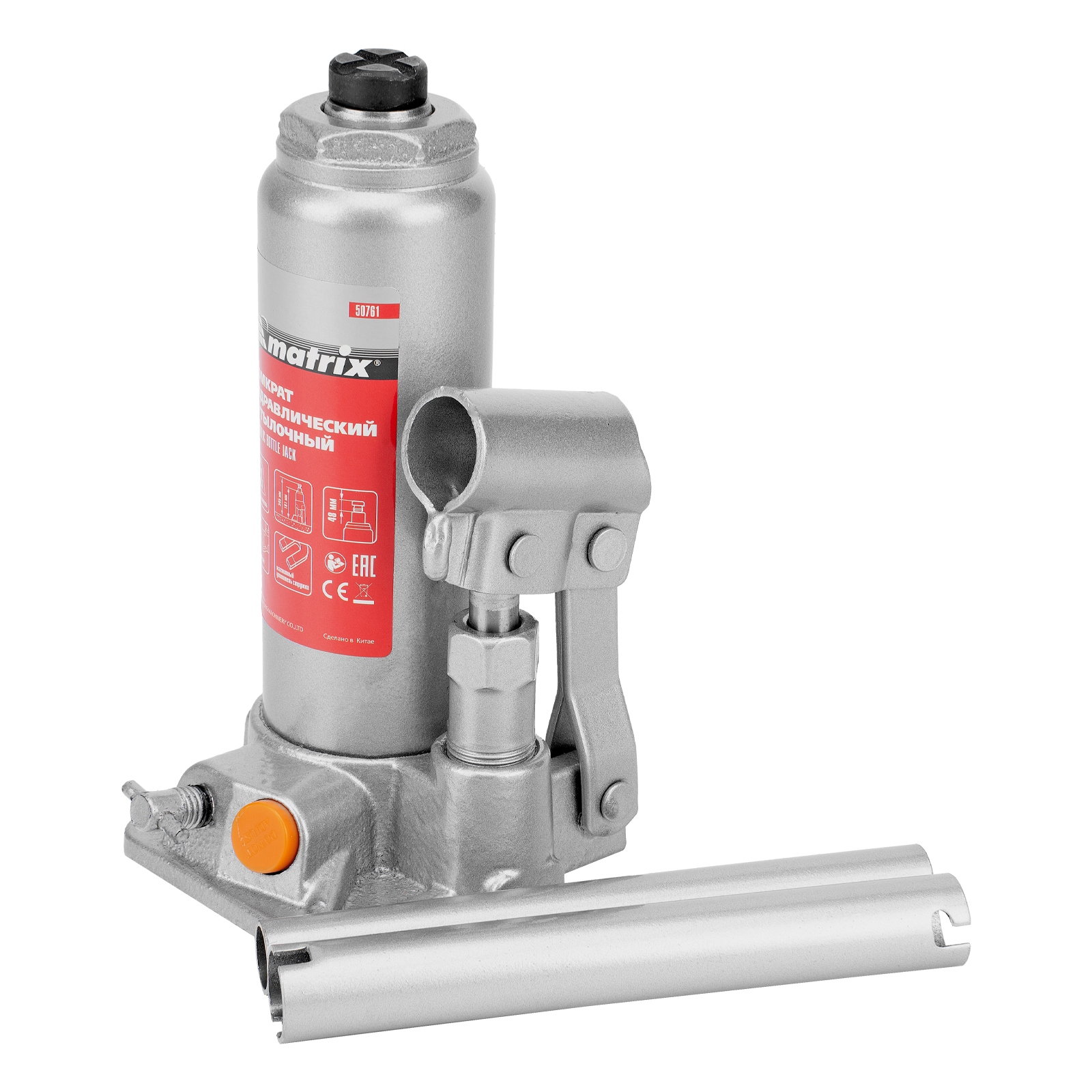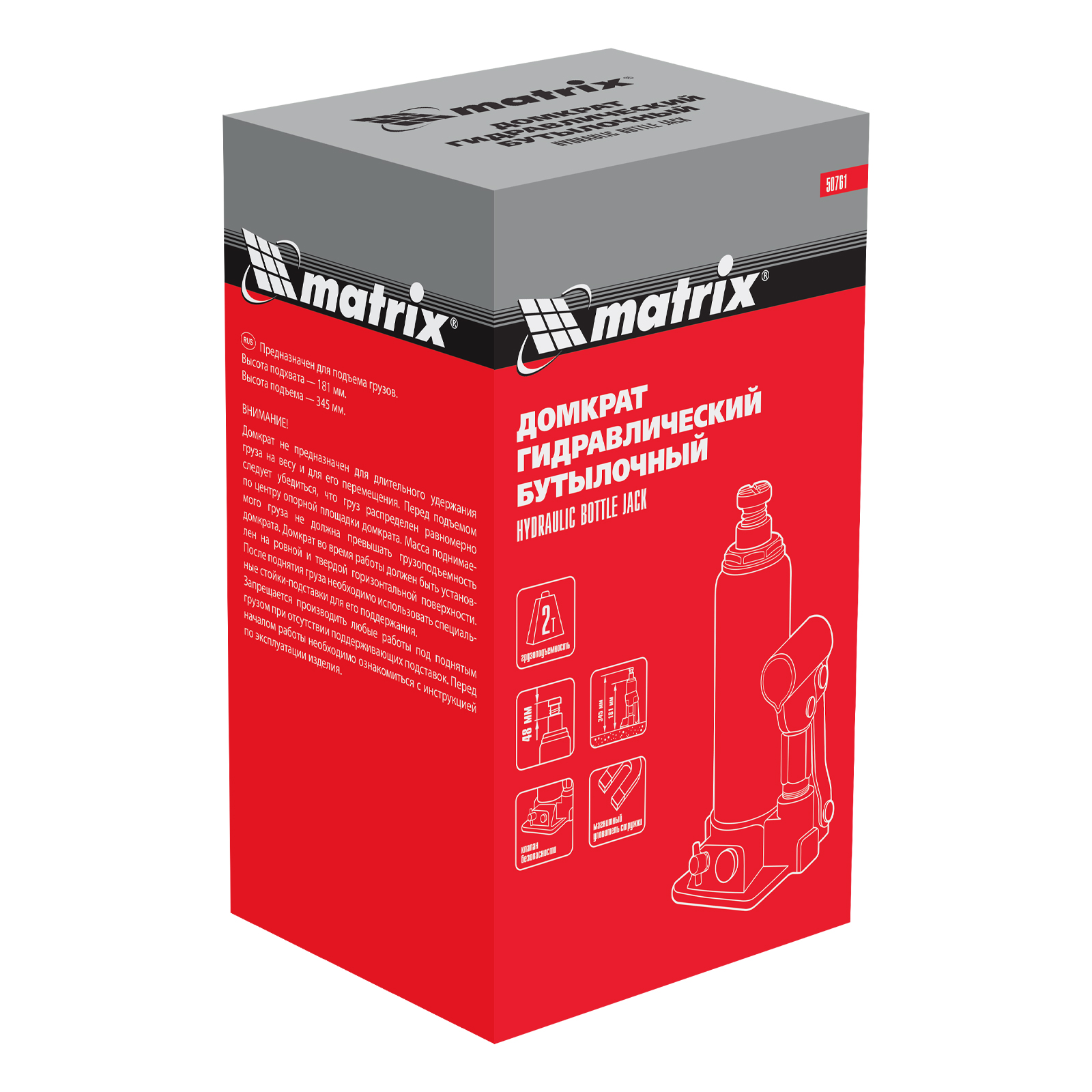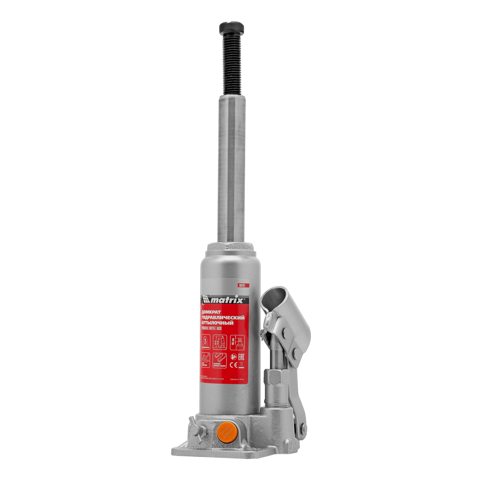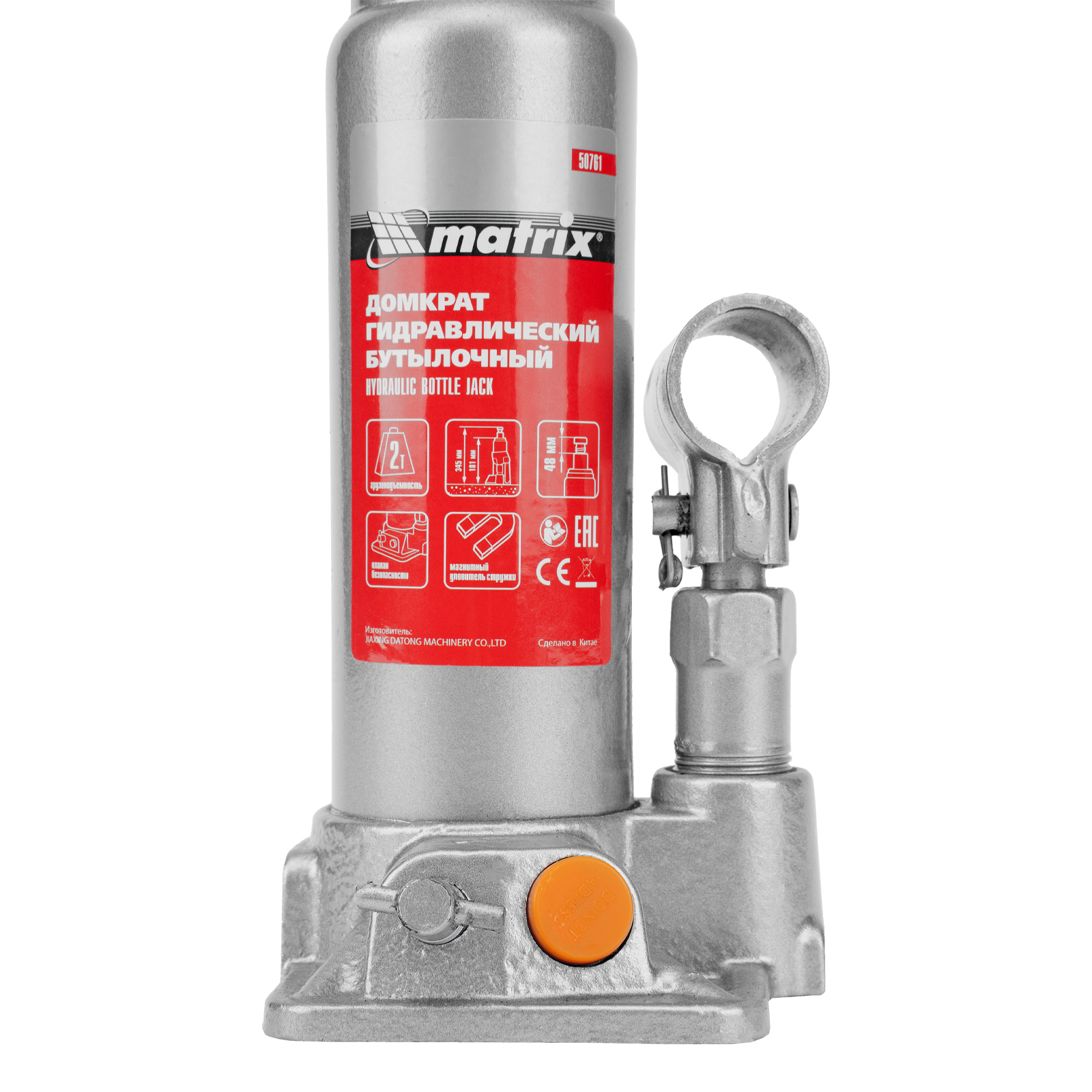 Домкрат гидравлический бутылочный, 2 т, h подъема 181-345 мм Matrix