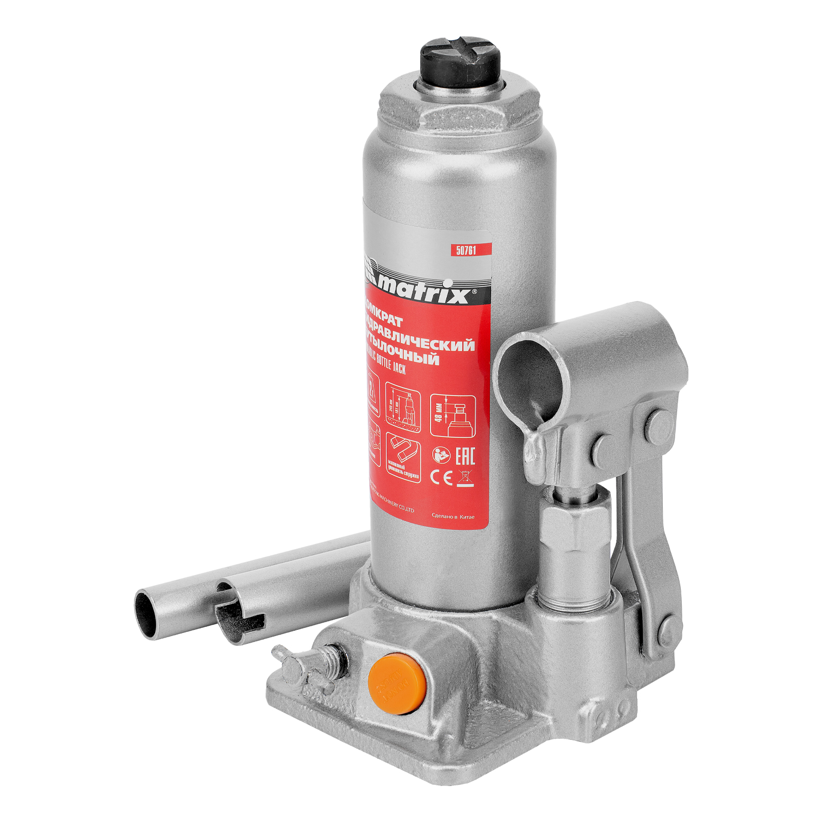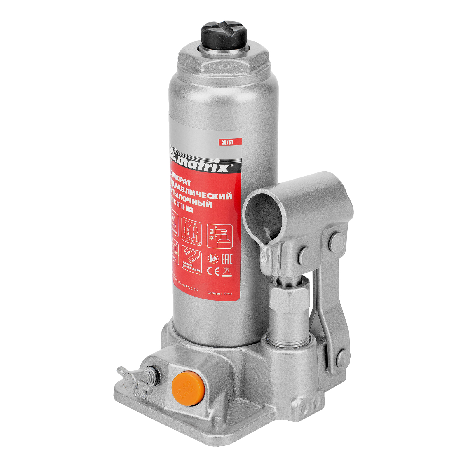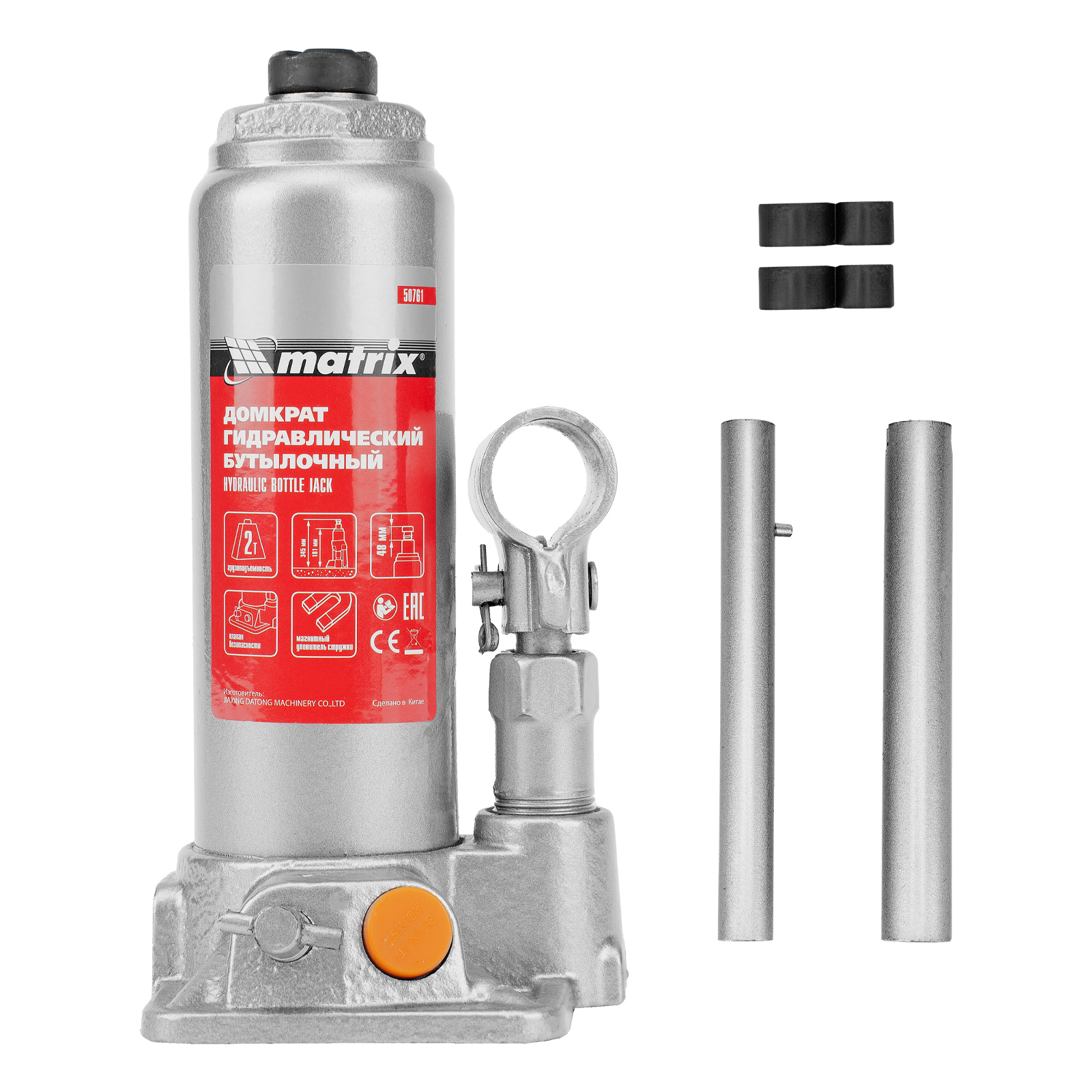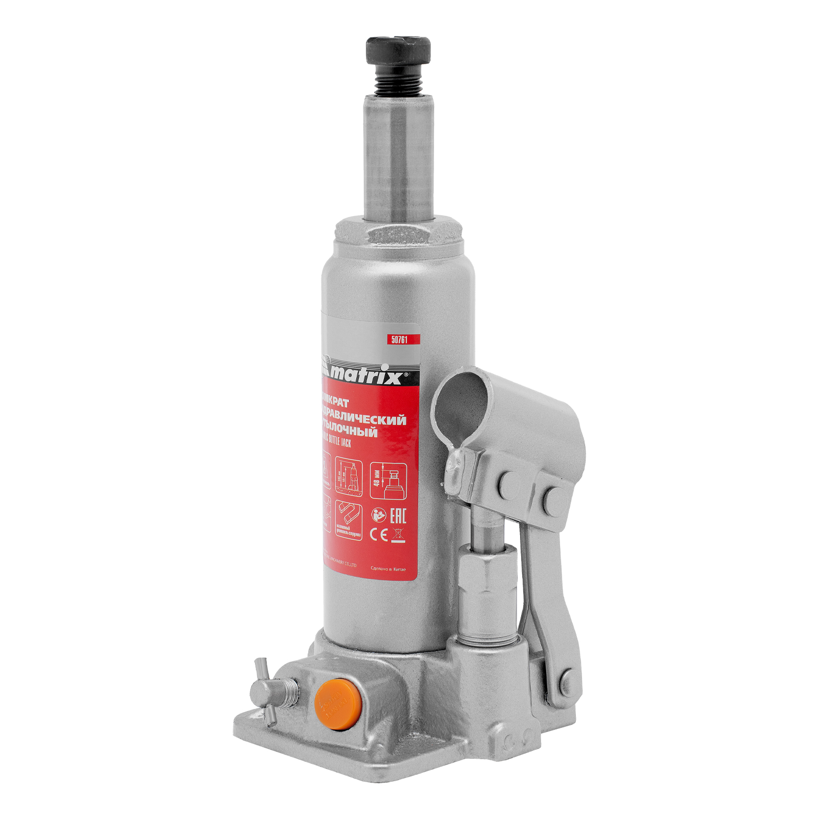 Домкрат гидравлический бутылочный, 2 т, h подъема 181-345 мм Matrix