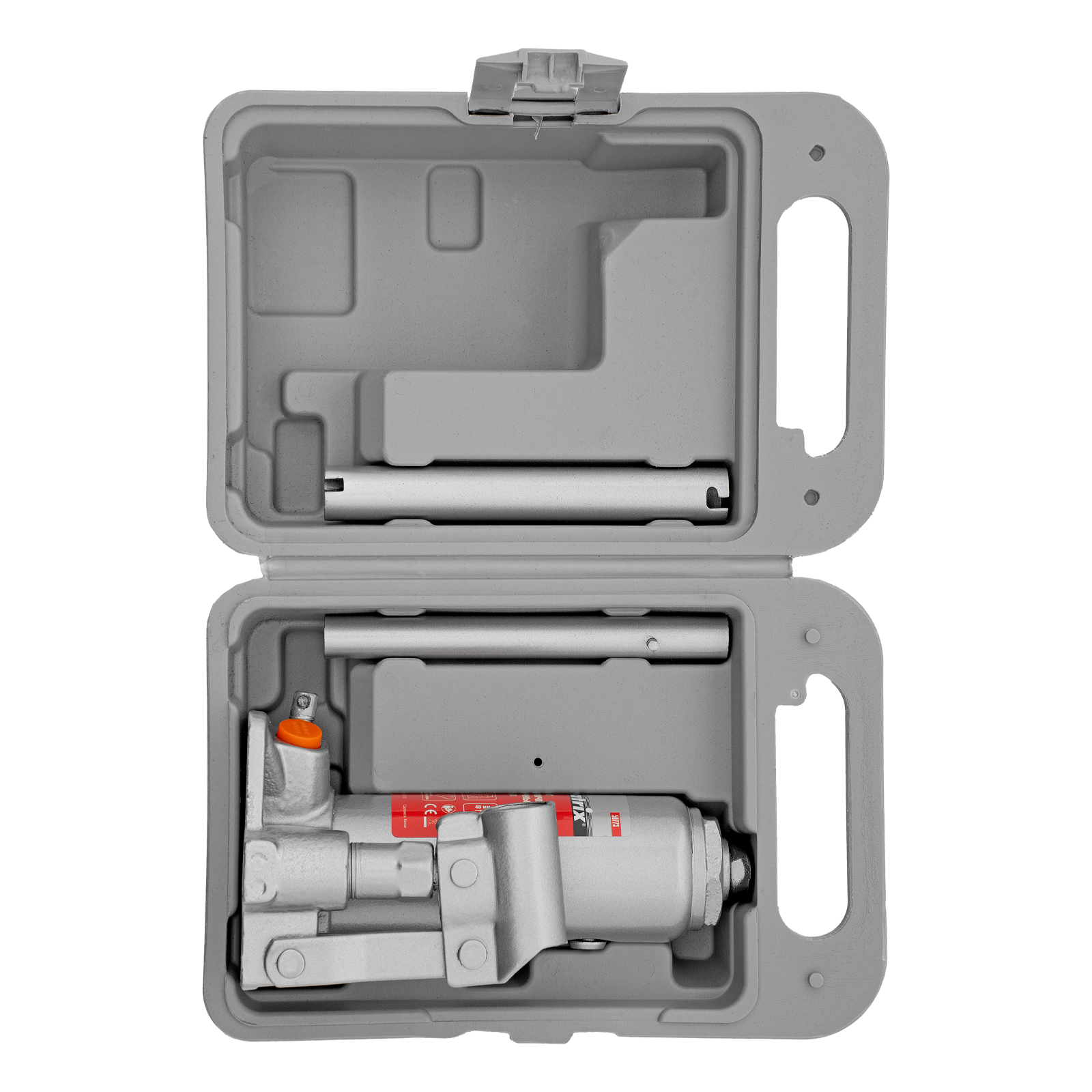 - Удобная транспортировка — домкрат комплектуется прочным пластиковым кейсом.