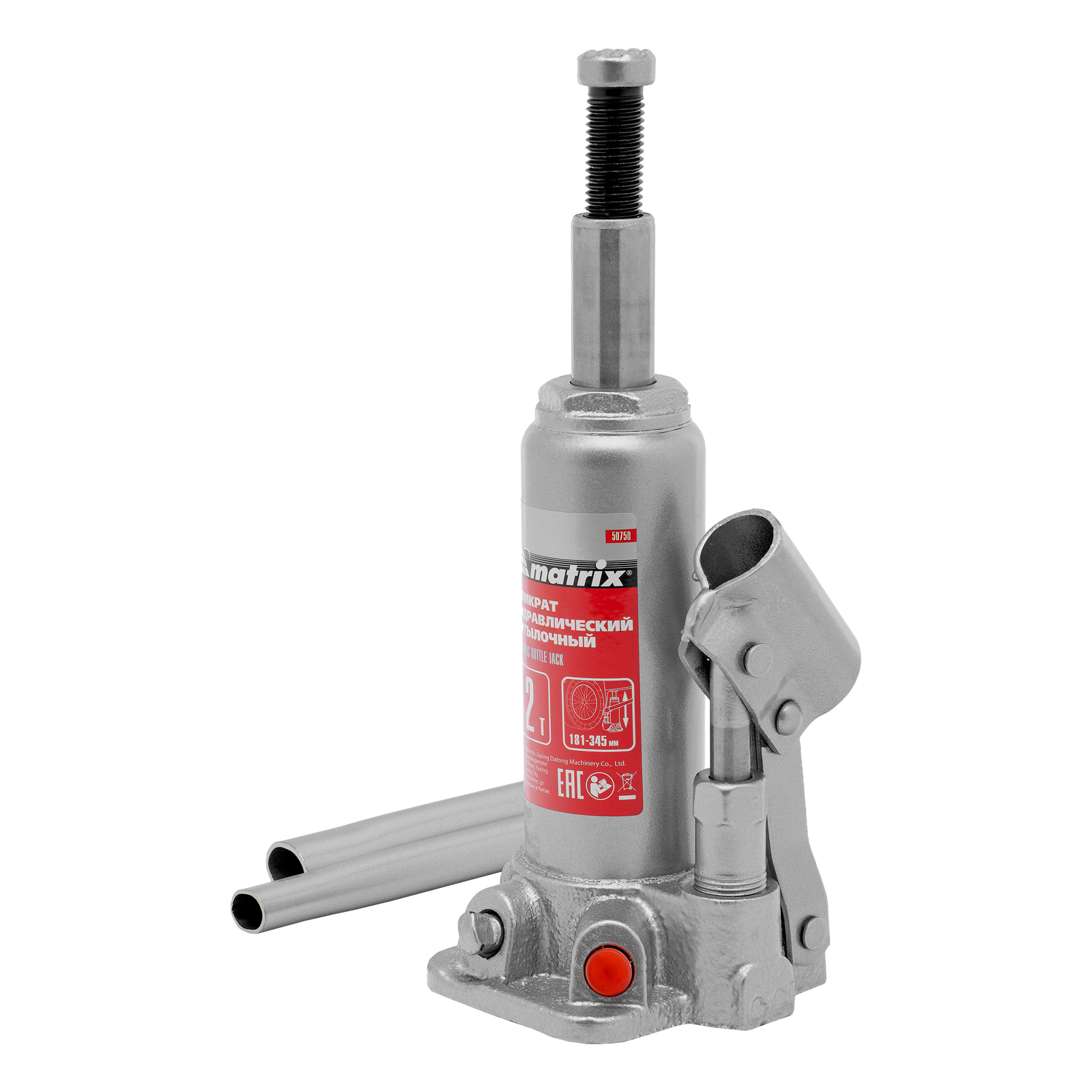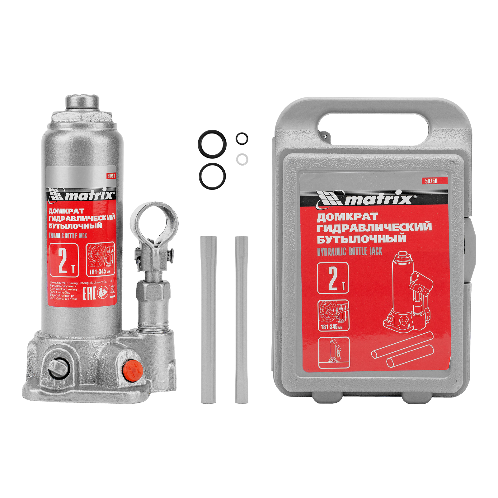 Домкрат гидравлический бутылочный, 2 т, высота подъема 181-345 мм, в пластиковый кейсе Matrix