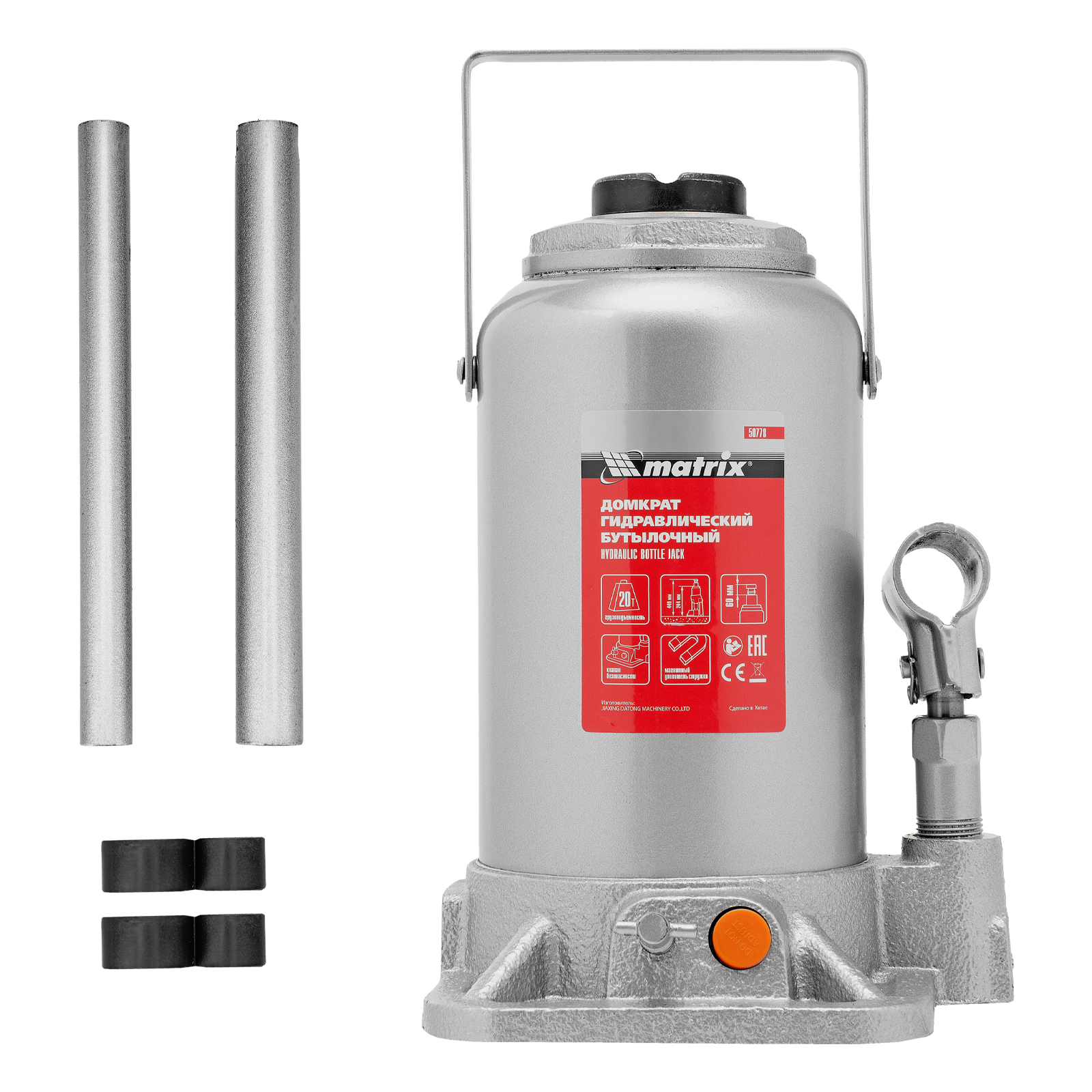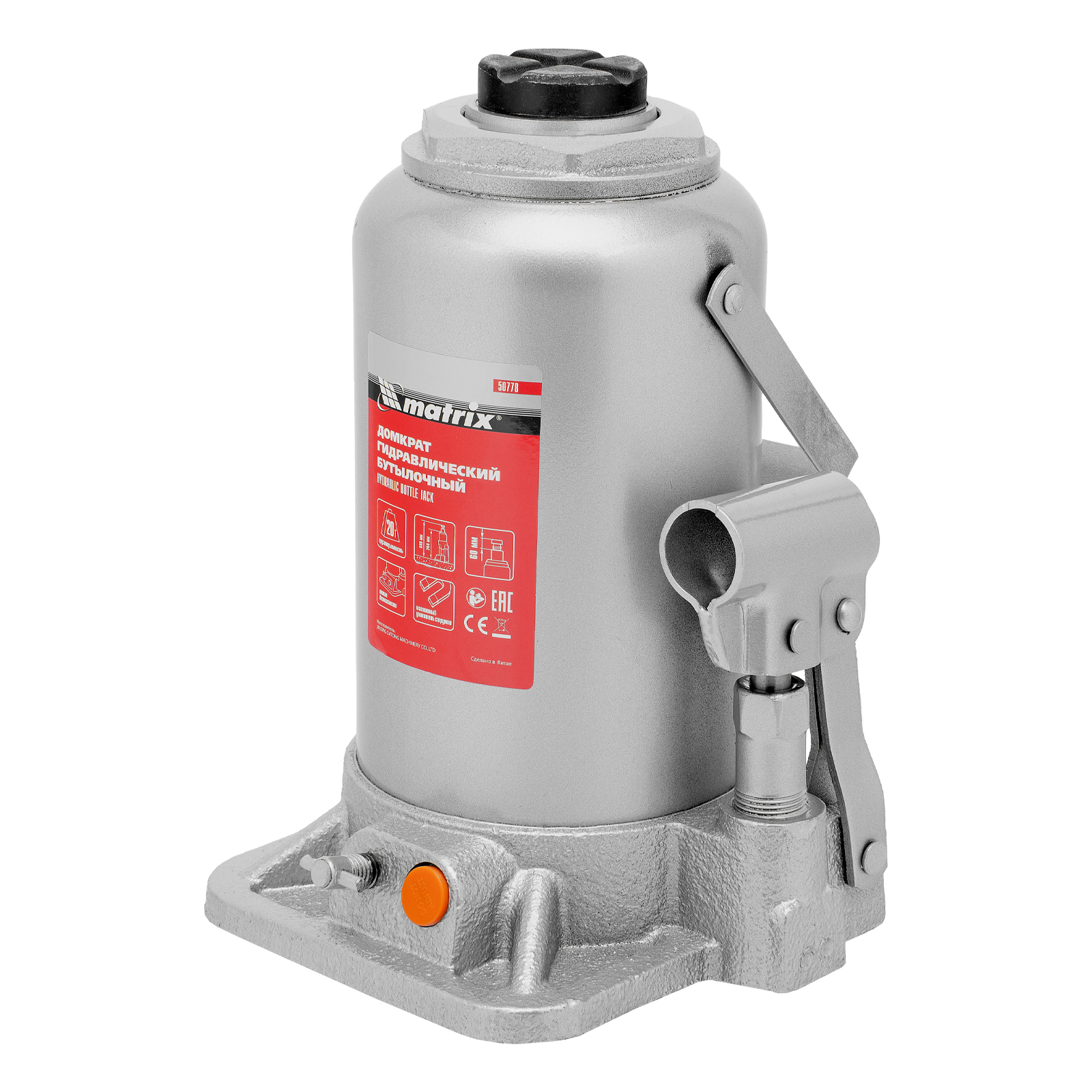 Гидравлический бутылочный домкрат Matrix 50778 поднимает грузы весом до 20 т на высоту 244-449 мм и может использоваться в гараже, на станции ТО или строительной площадке. Встроенный магнитный уловитель собирает металлическую стружку, образующуюся в процессе работы, что защищает домкрат от преждевременного износа.