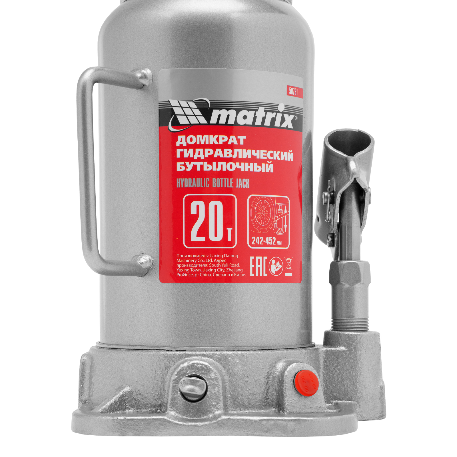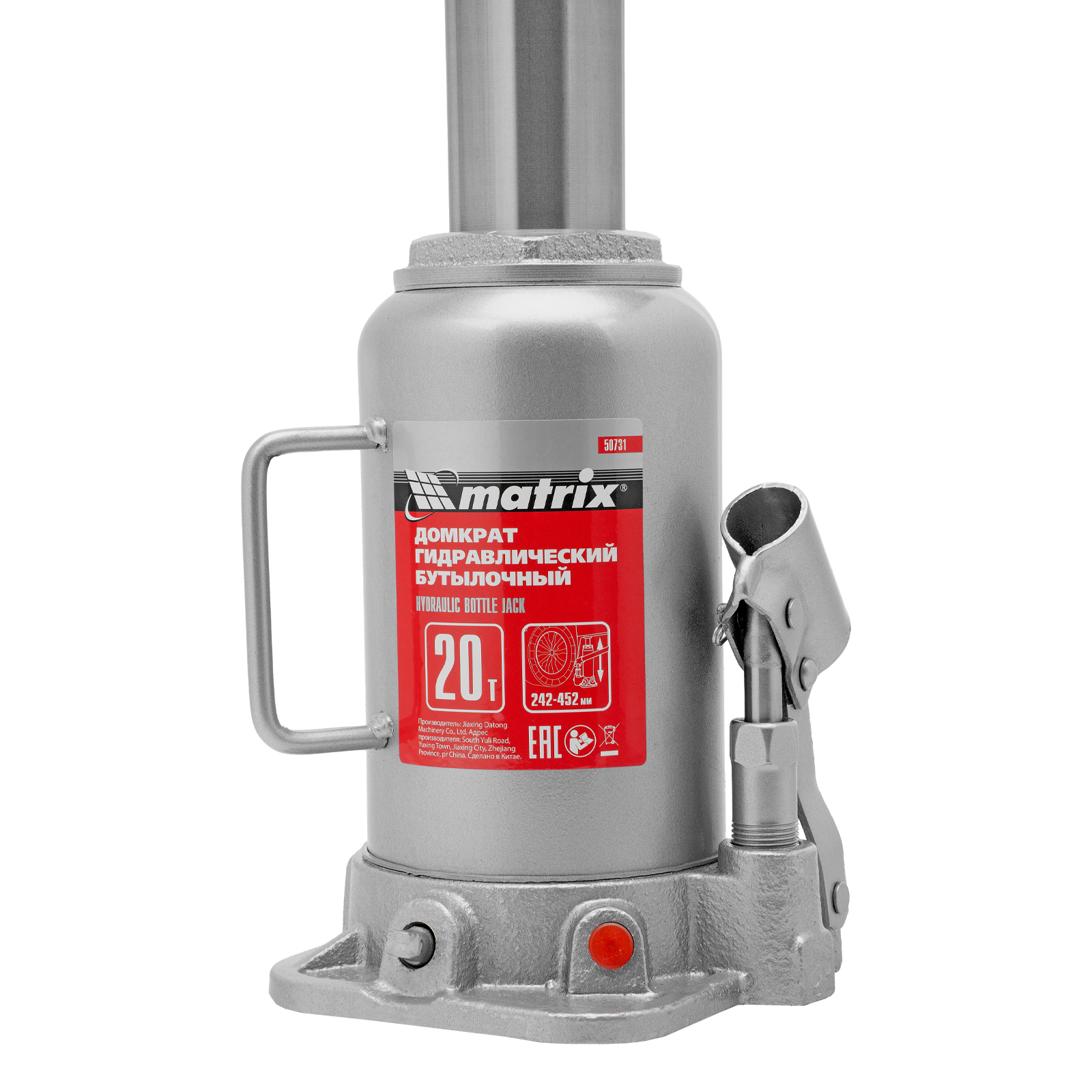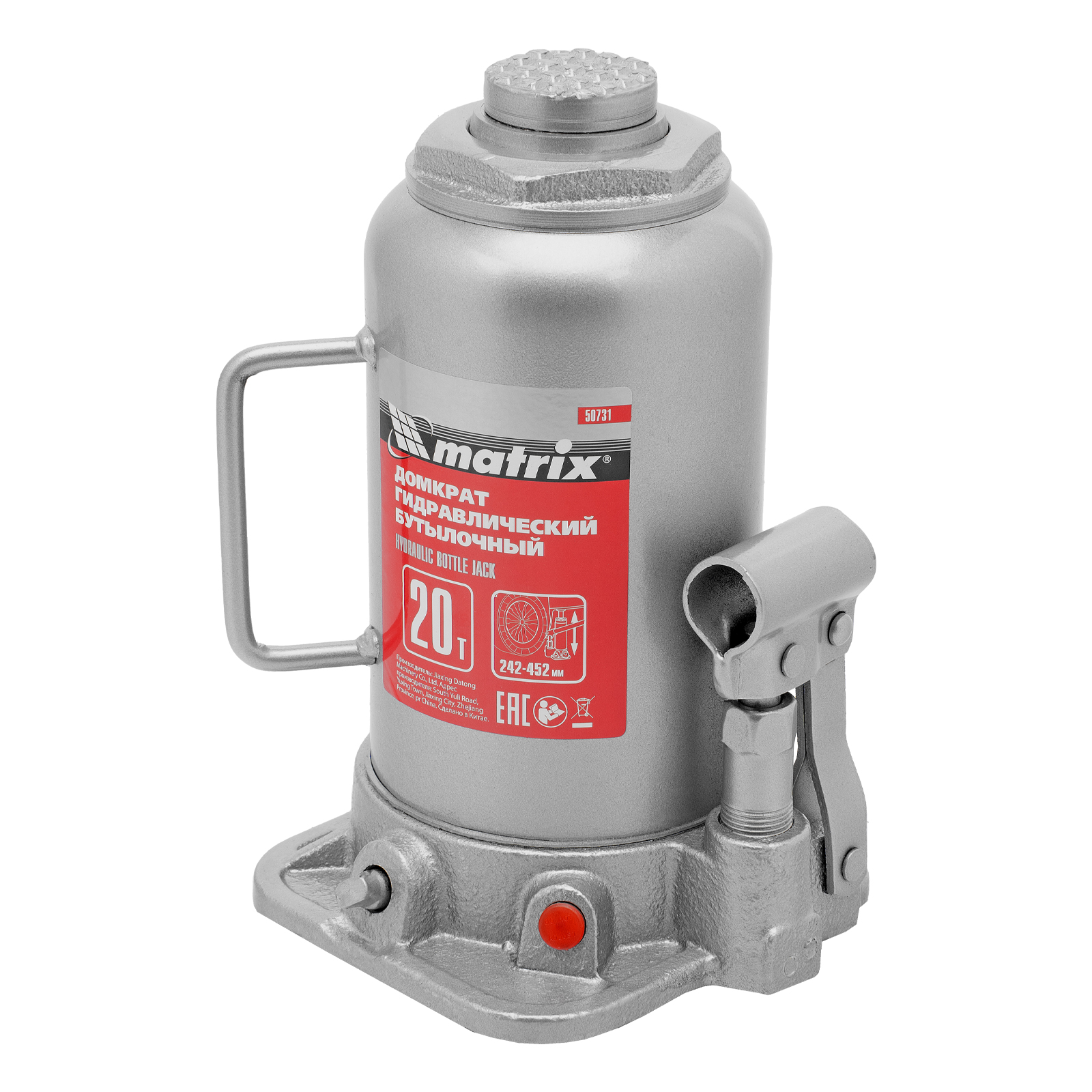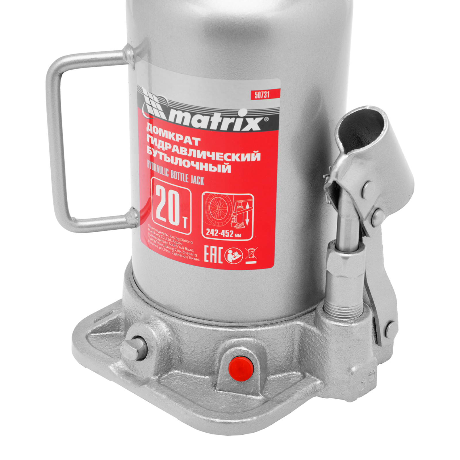 Домкрат гидравлический бутылочный, 20 т, высота подъема 242-452 мм Matrix