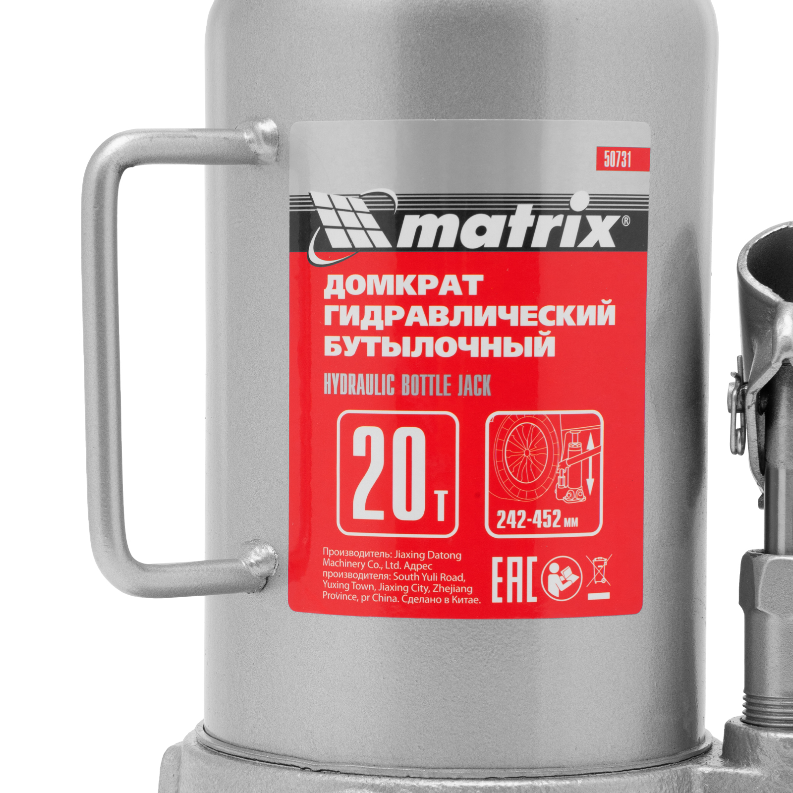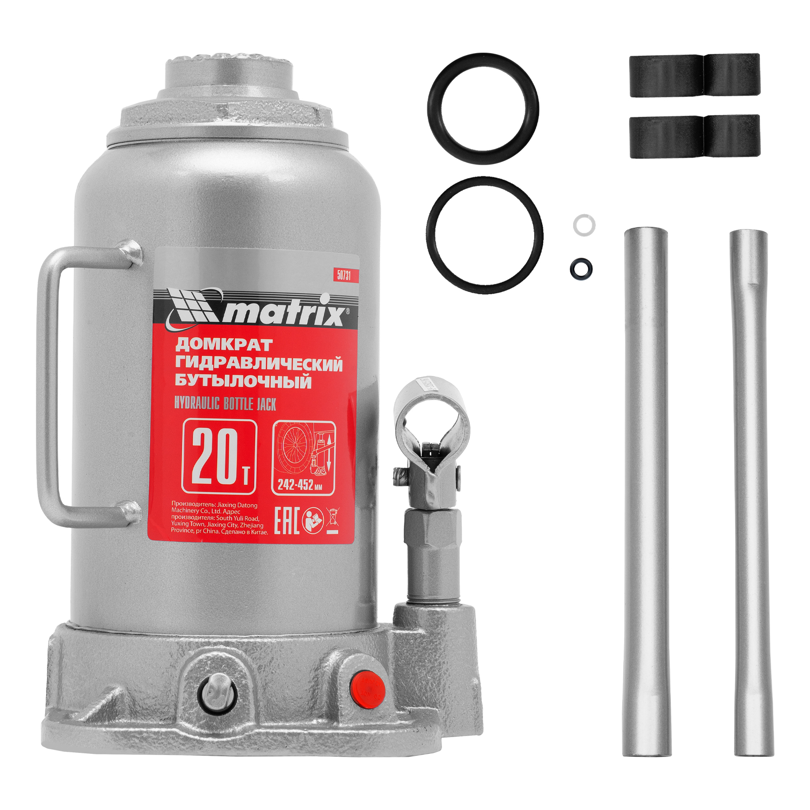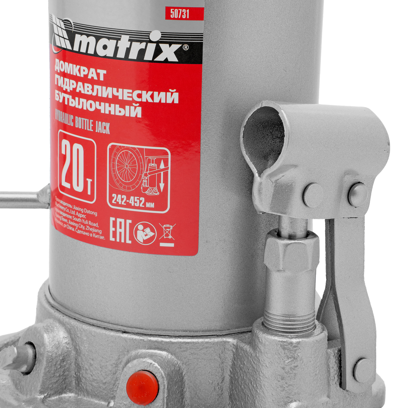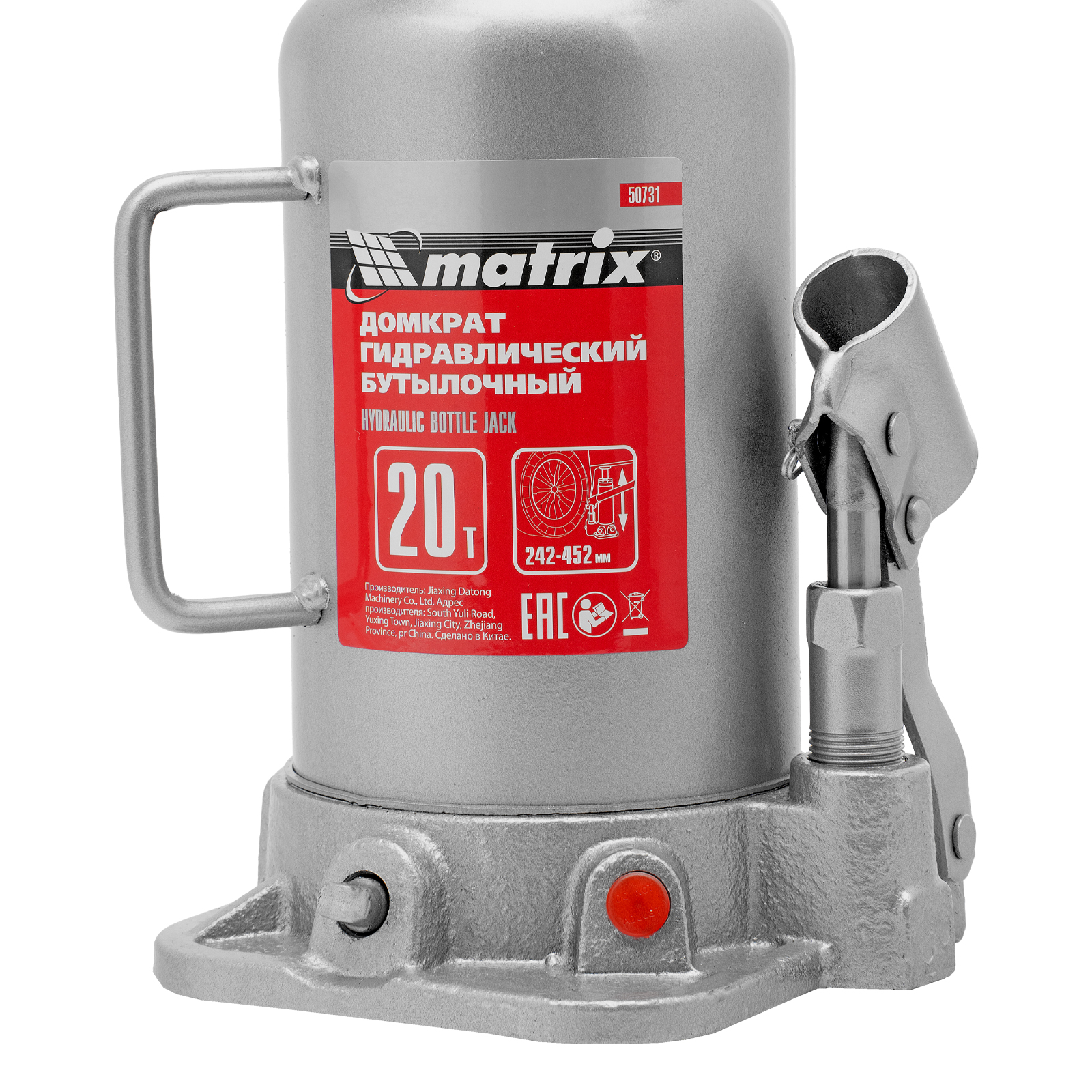 Домкрат гидравлический бутылочный, 20 т, высота подъема 242-452 мм Matrix