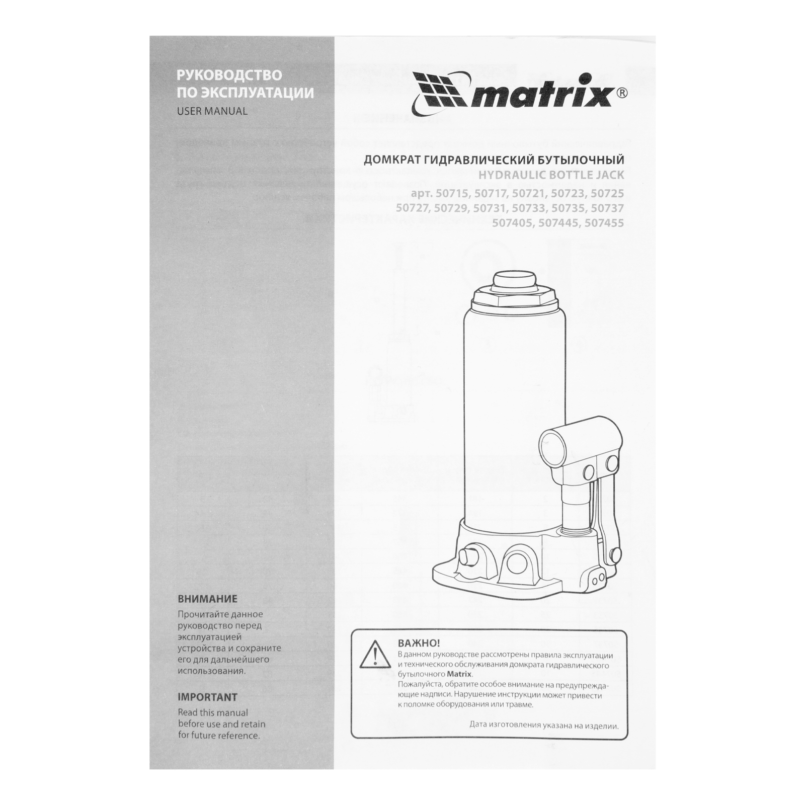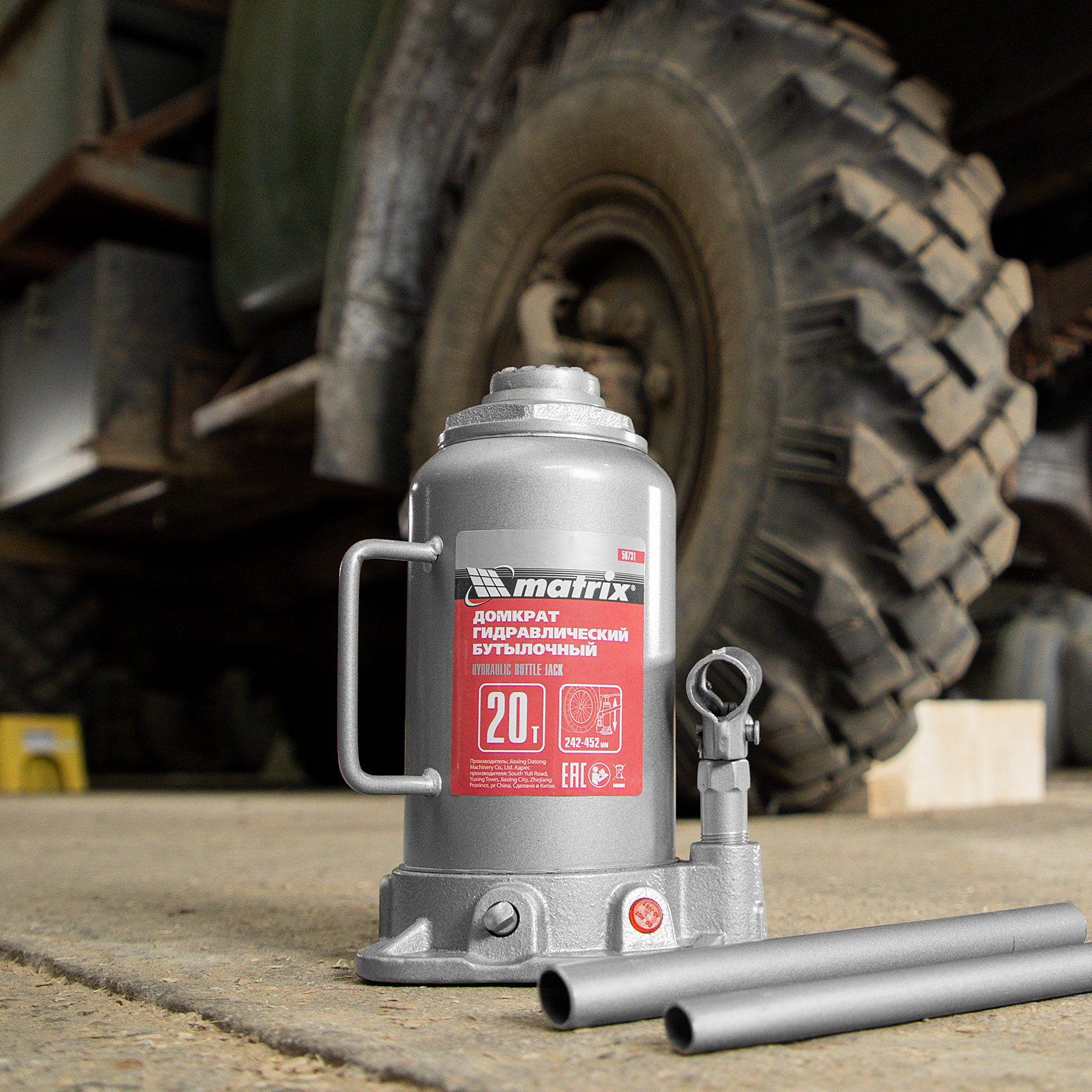 Домкрат гидравлический бутылочный Matrix 50731 используется для поднятия грузов массой до 20 т на высоту 242-452 мм. Подходит для автомобилей с высоким клиренсом. Домкрат будет полезен автолюбителям в гараже и дороге, а также сотрудникам СТО.