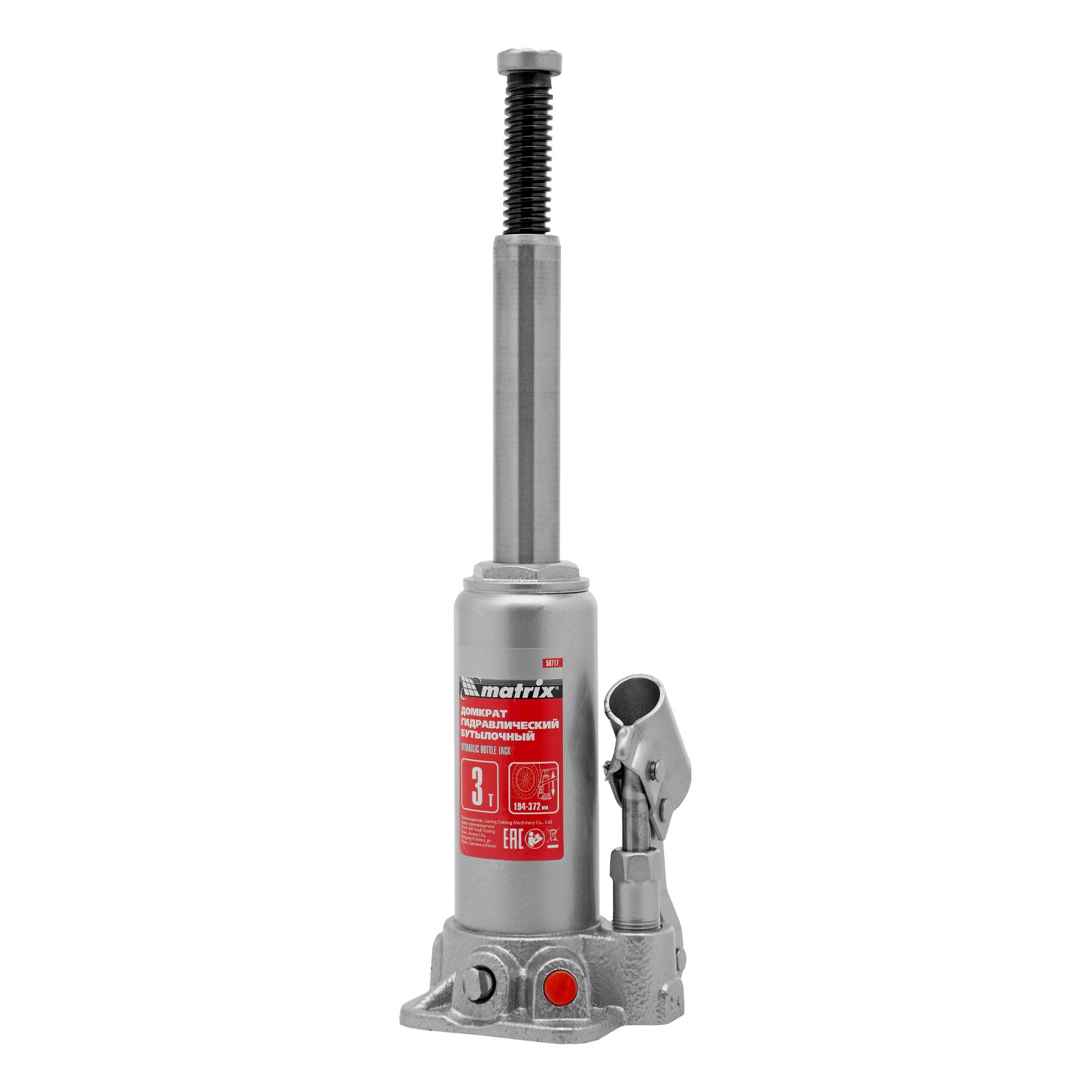 Домкрат гидравлический бутылочный Matrix 50717 используется для поднятия грузов массой до 3 т на высоту 194-372 мм. Подходит для автомобилей с высоким клиренсом. Домкрат будет полезен автолюбителям в гараже и дороге, а также сотрудникам СТО.