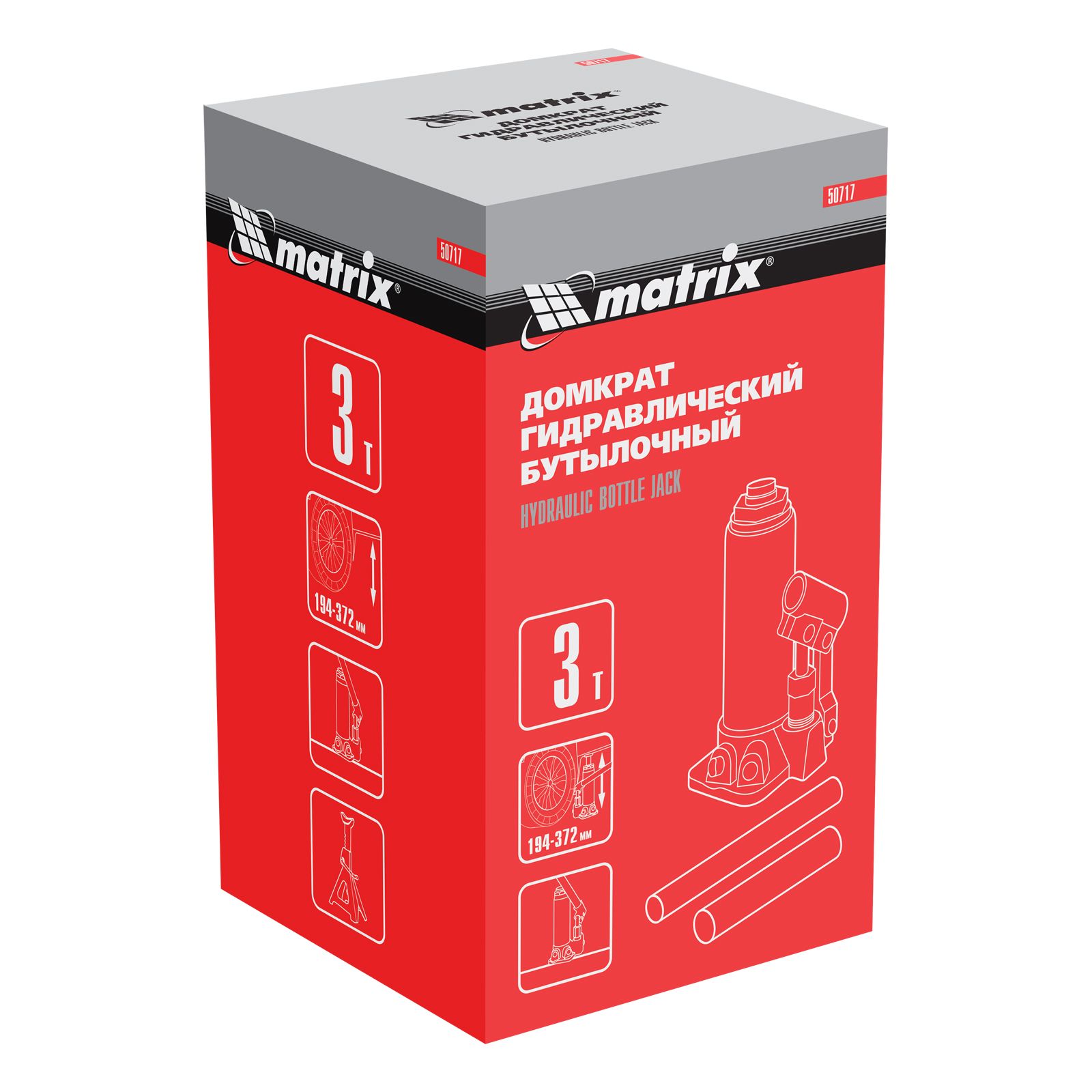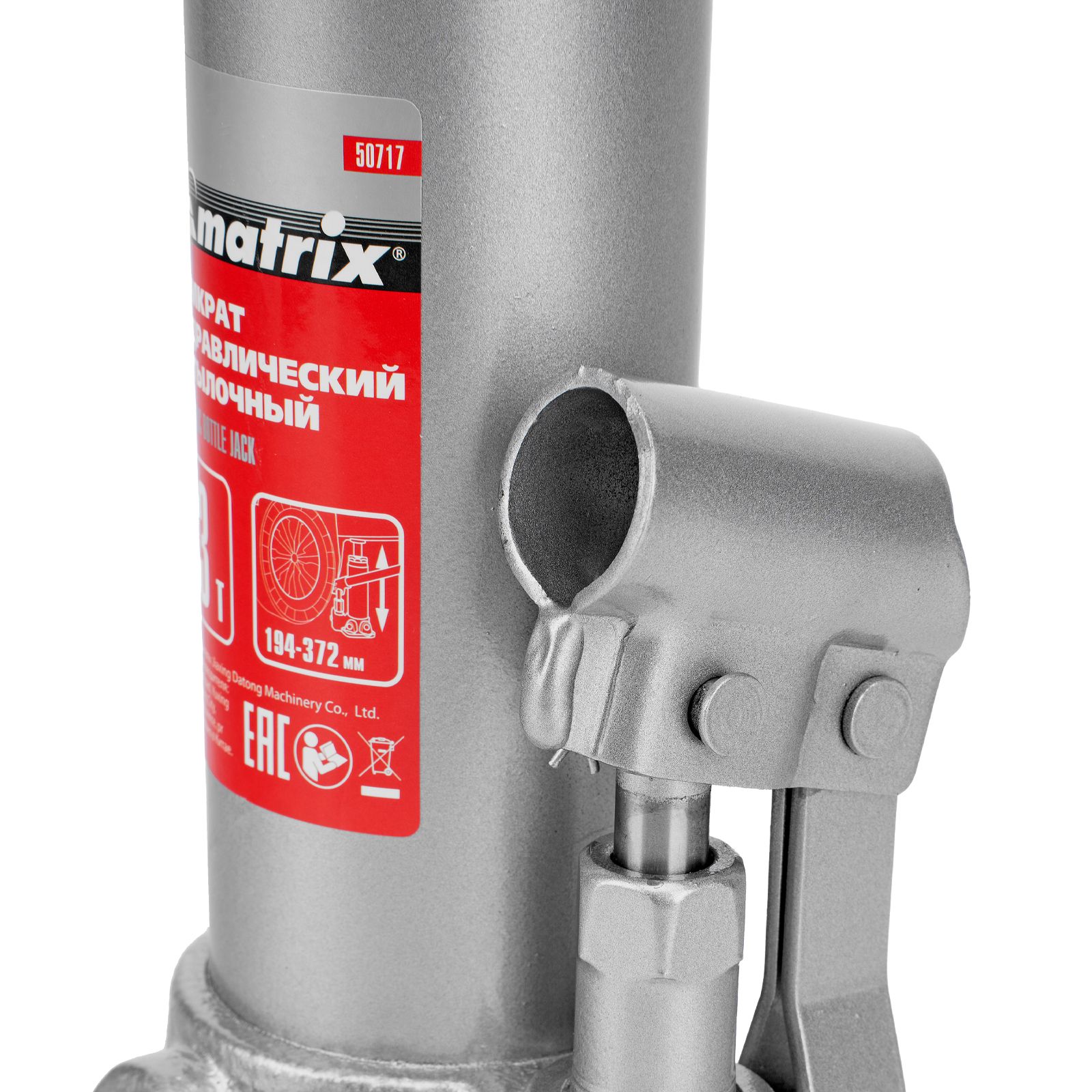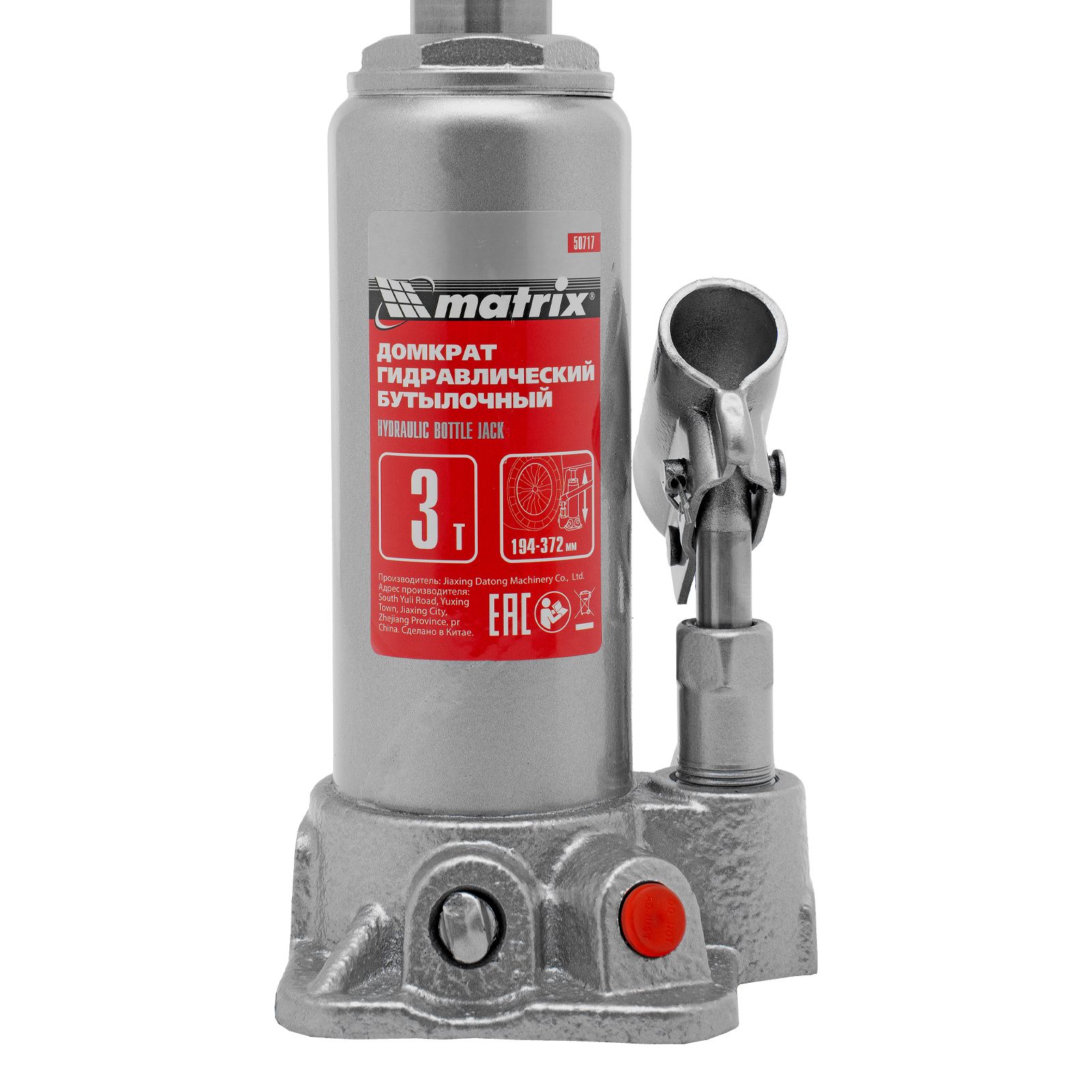 Домкрат гидравлический бутылочный, 3 т, высота подъема 194-372 мм Matrix