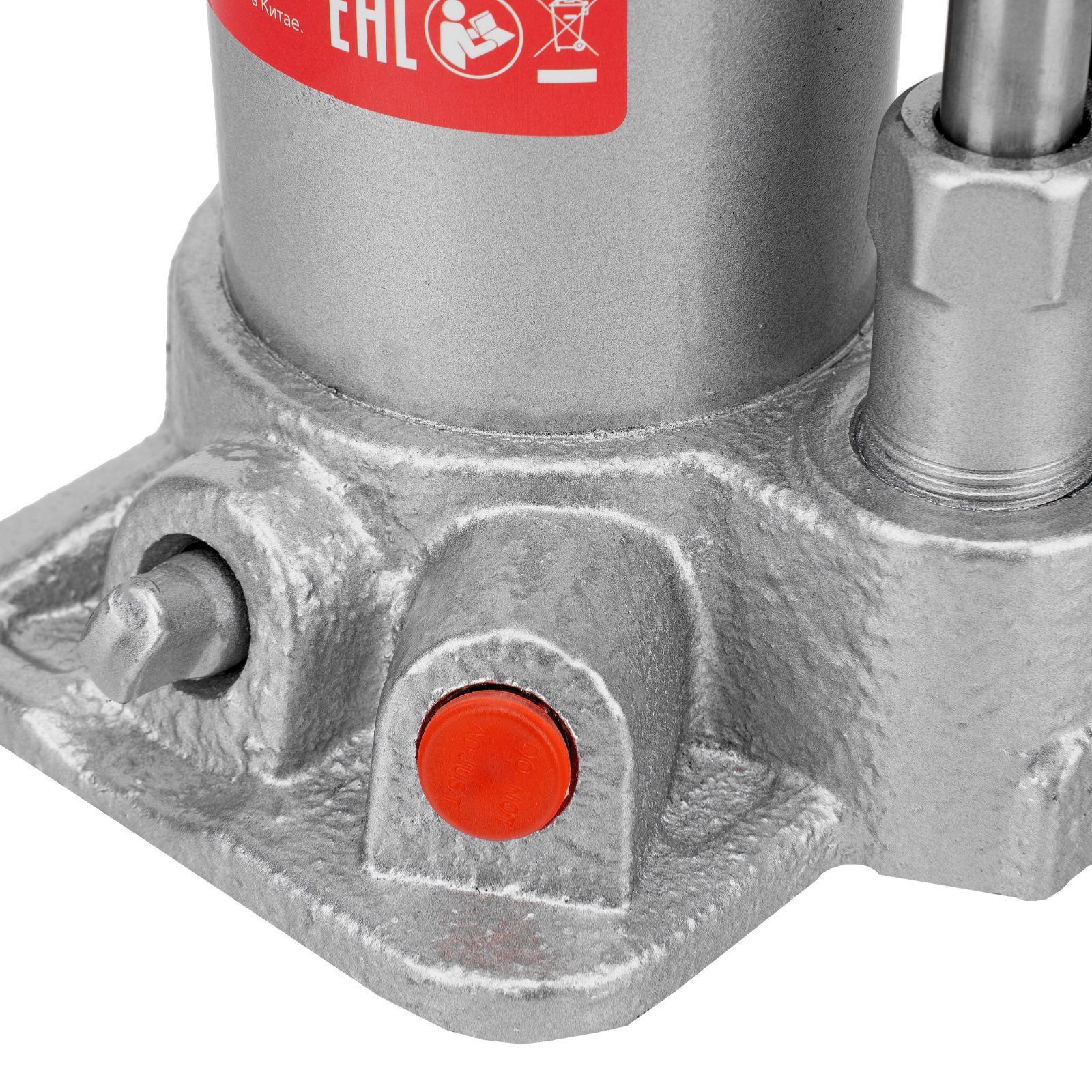 - Надежная конструкция — домкрат имеет устойчивое чугунное основание, корпус из высокопрочной стали, а также полированный шток, увеличивающий срок службы.