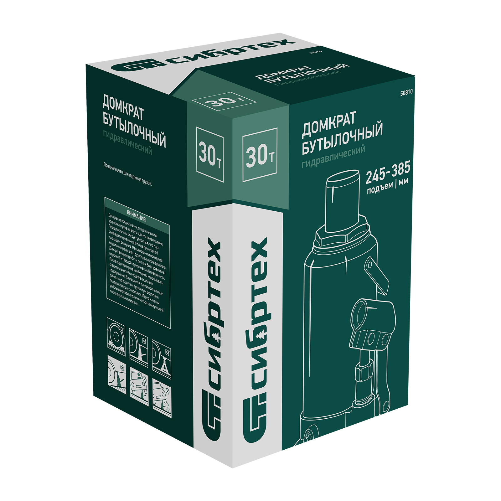 Домкрат гидравлический бутылочный Сибртех 50810 предназначен для подъема грузов массой до 30 т на высоту от 245 до 385 мм. Будет полезен при проведении техобслуживания машины в автосервисе или гараже.