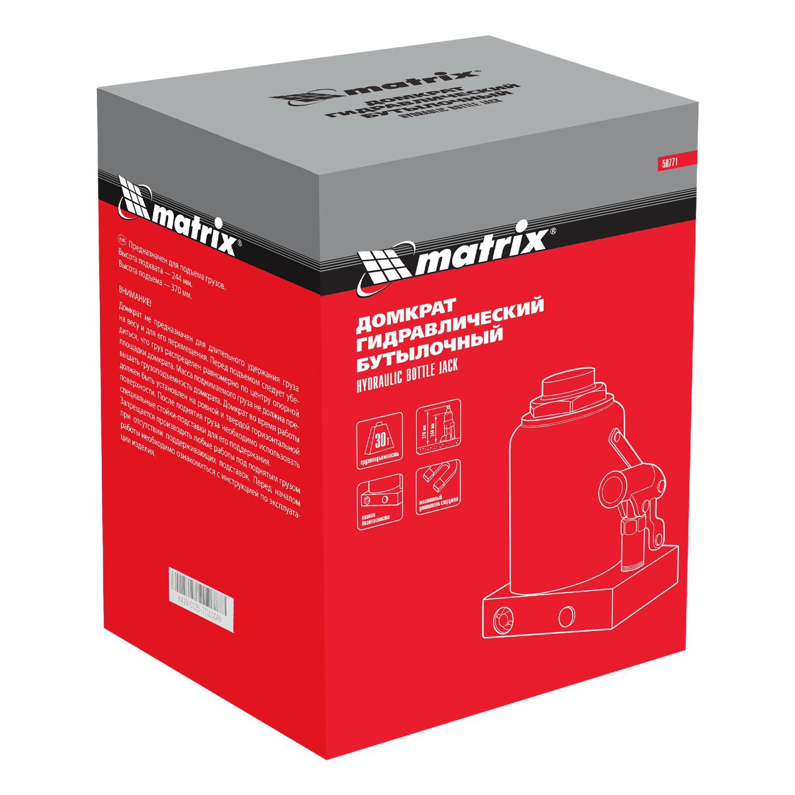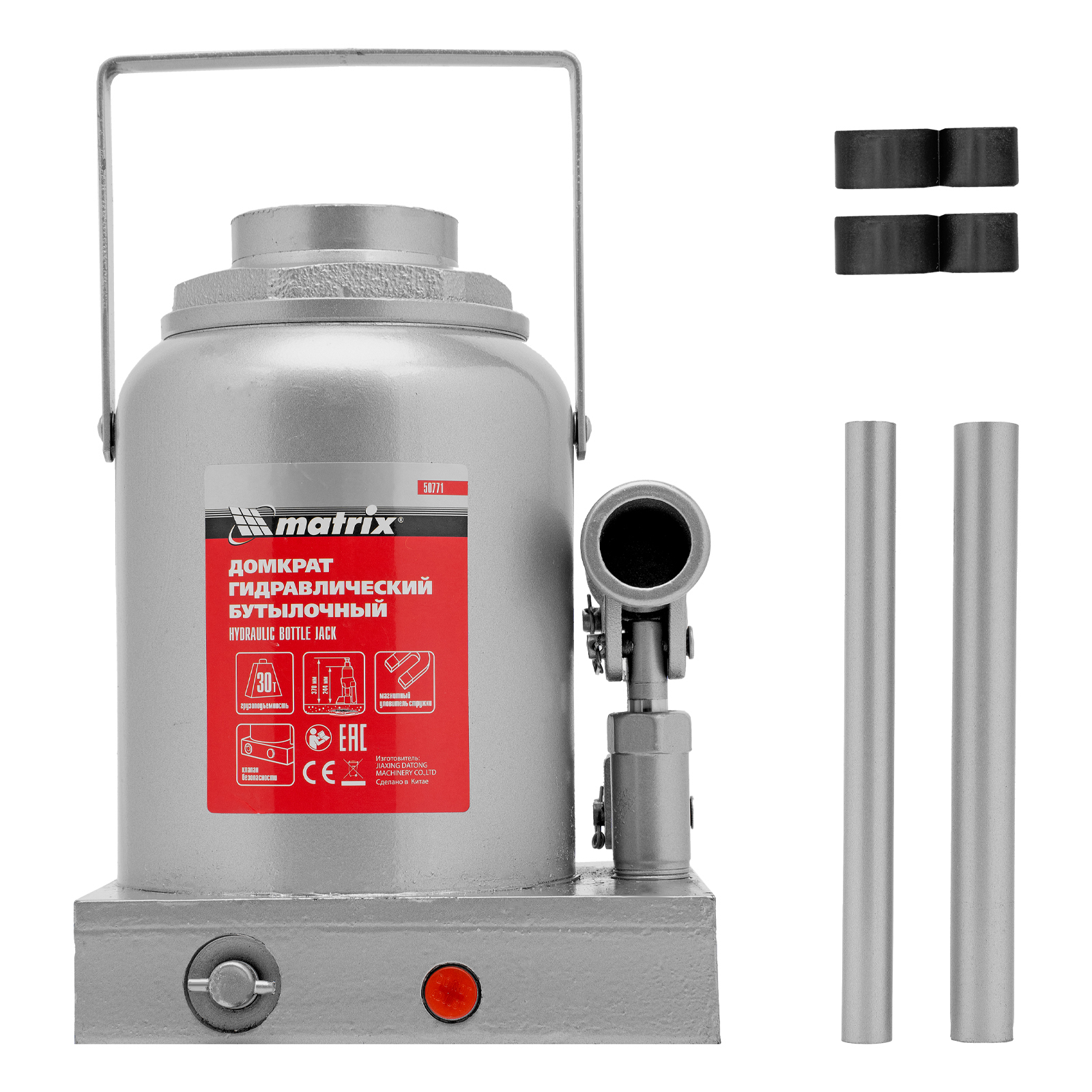 Домкрат гидравлический бутылочный, 30 т, h подъема 244-370 мм Matrix