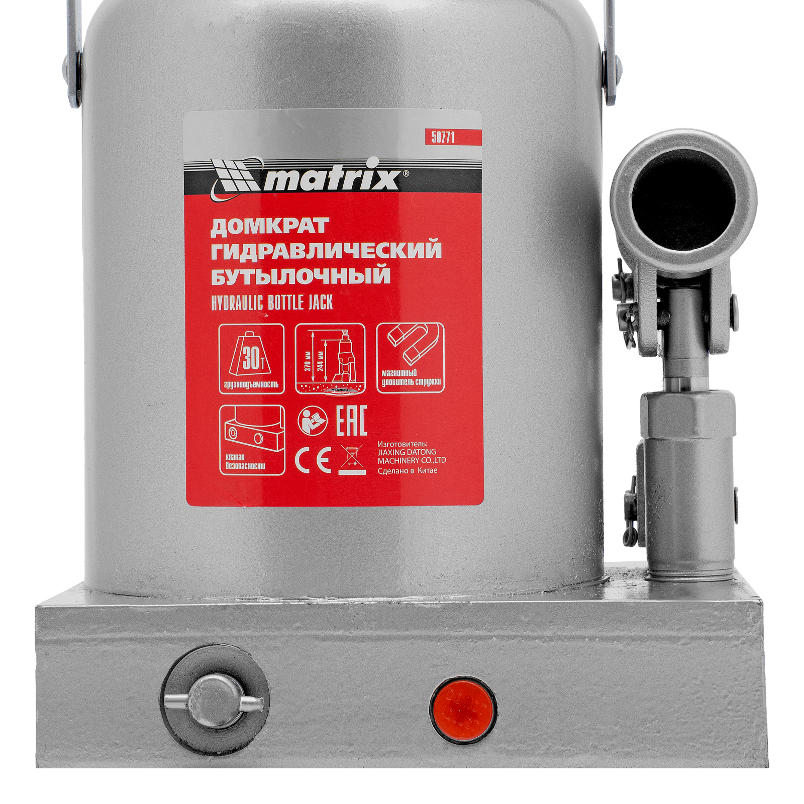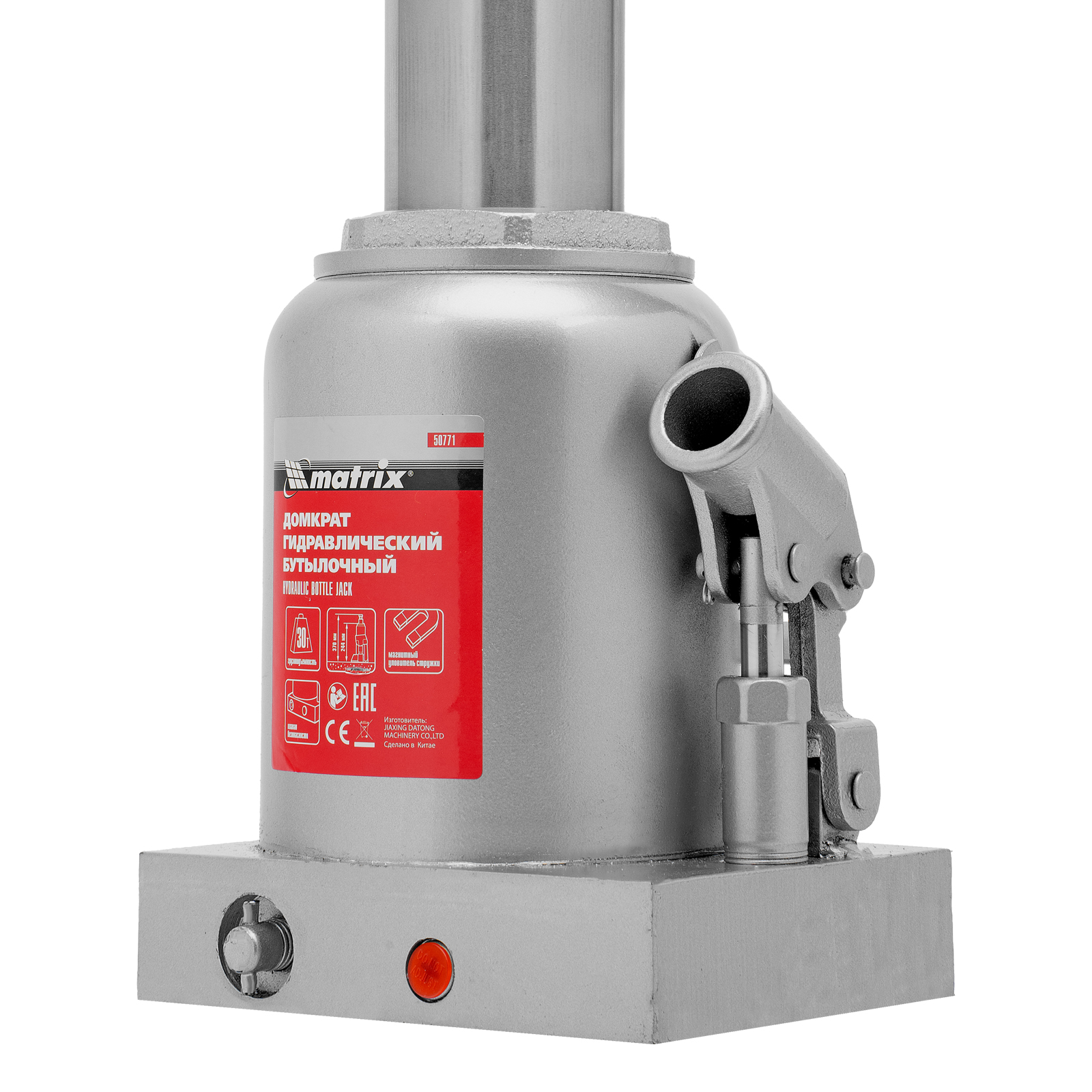 Гидравлический бутылочный домкрат Matrix 50771 предназначен для быстрого поднятия грузов массой до 30 т на высоту 244-370 мм. Будет полезен автолюбителям и мастерам СТО в качестве полупрофессионального инструмента. Встроенный магнитный уловитель металлической стружки защищает резиновые уплотнители от повреждений.