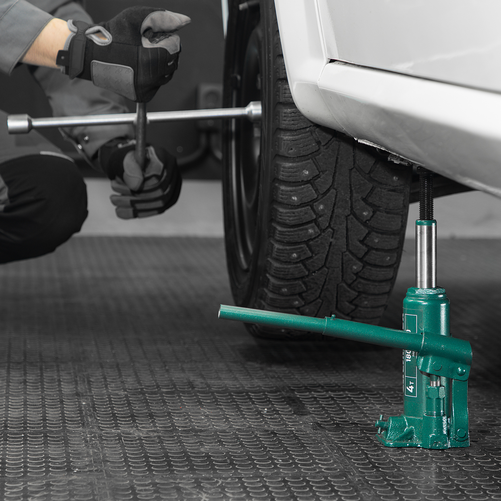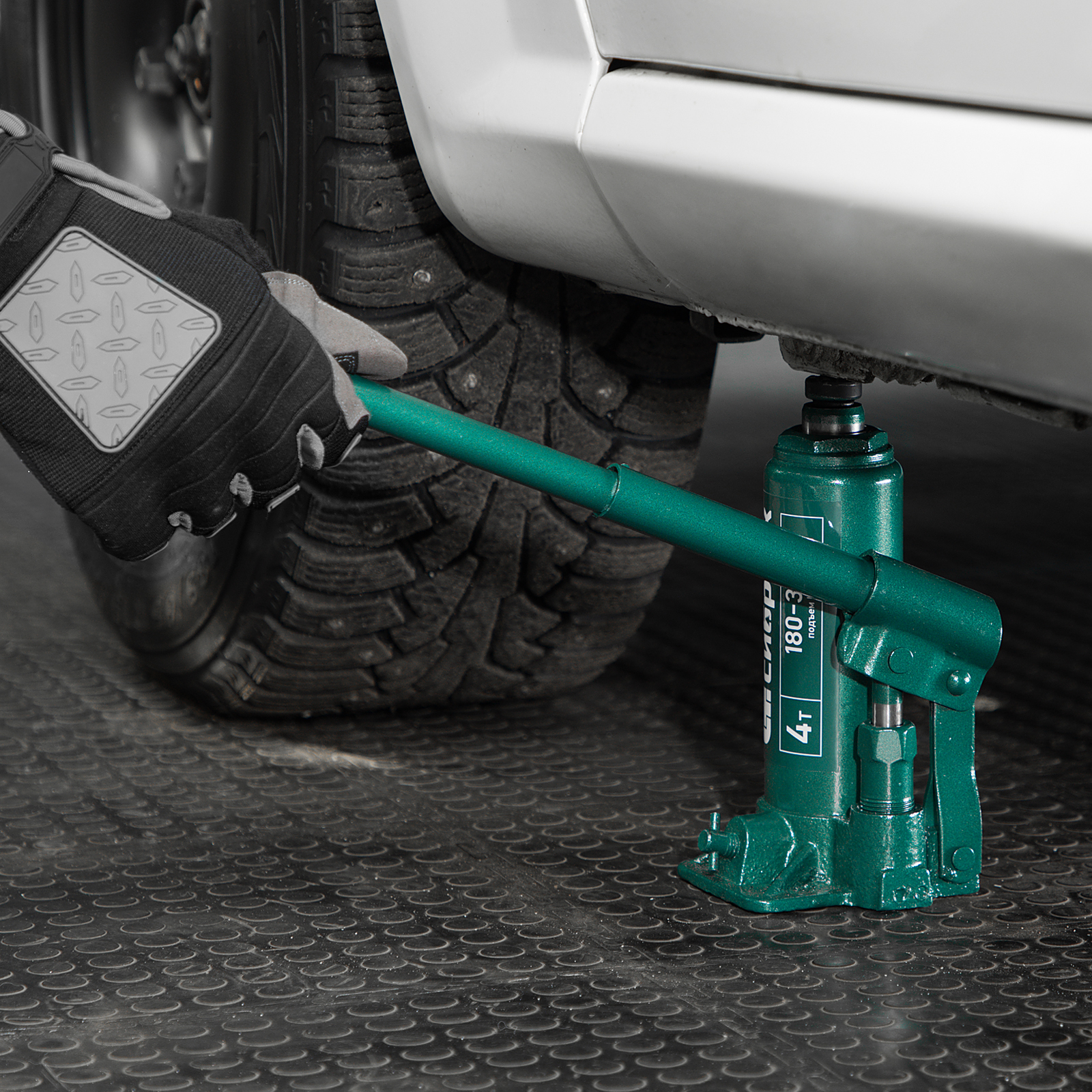 - Удобное хранение и транспортировка — домкрат весит всего 2,2 кг, а благодаря съемному рычагу не занимает много места.
