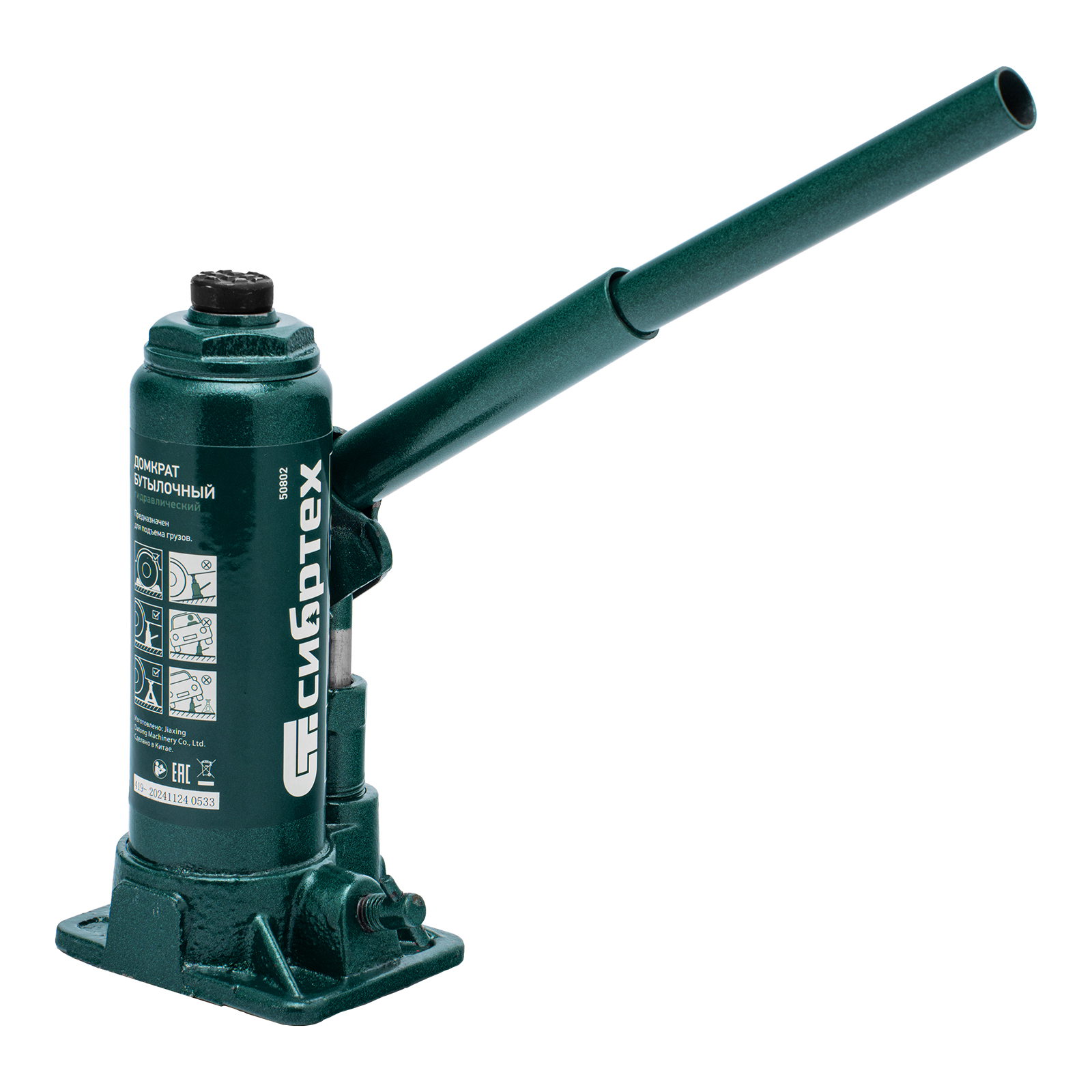 Домкрат гидравлический бутылочный Сибртех 50802 предназначен для подъема грузов массой до 4 т на высоту от 180 до 320 мм. Не требует больших усилий от пользователя и значительно облегчает рабочий процесс. Домкрат будет полезен при проведении техобслуживания машины в автосервисе или гараже.