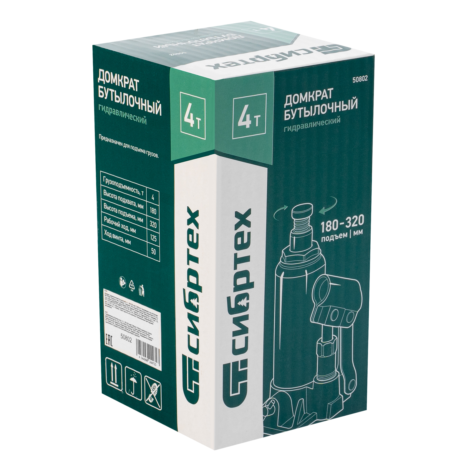 Домкрат гидравлический бутылочный, 4 т, 180-320 мм Сибртех