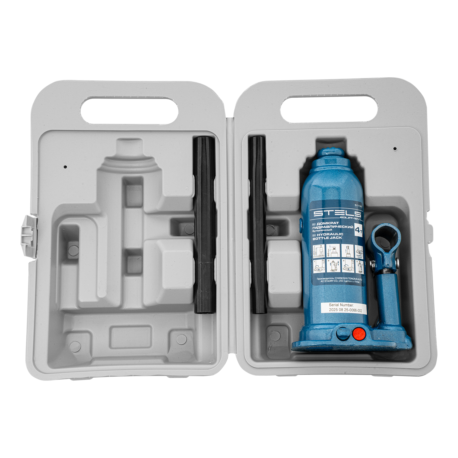 Домкрат гидравлический бутылочный, 4 т, h подъема 188-363 мм, в пластиковом кейсе Stels