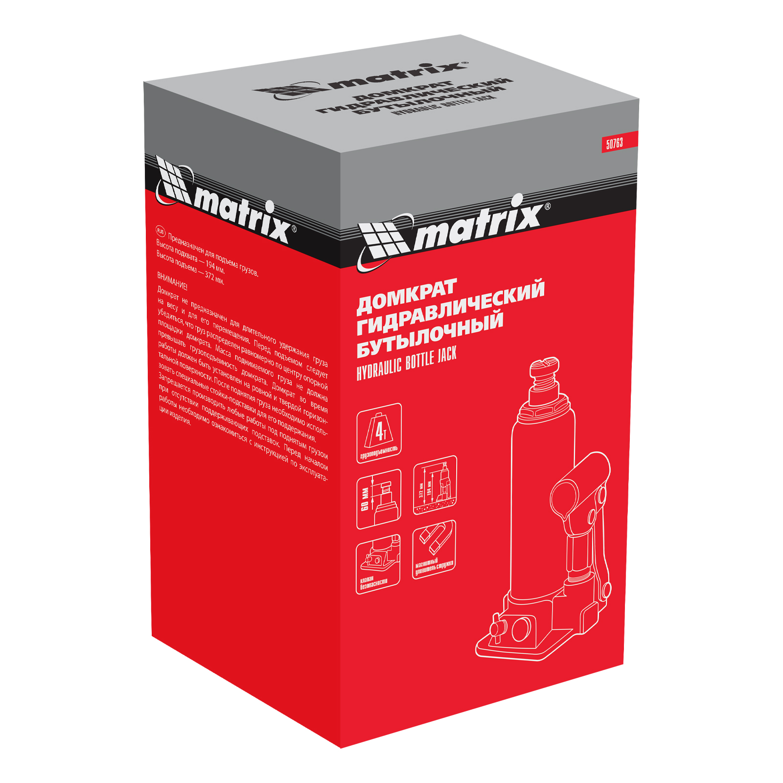Домкрат гидравлический бутылочный, 4 т, h подъема 194-372 мм Matrix
