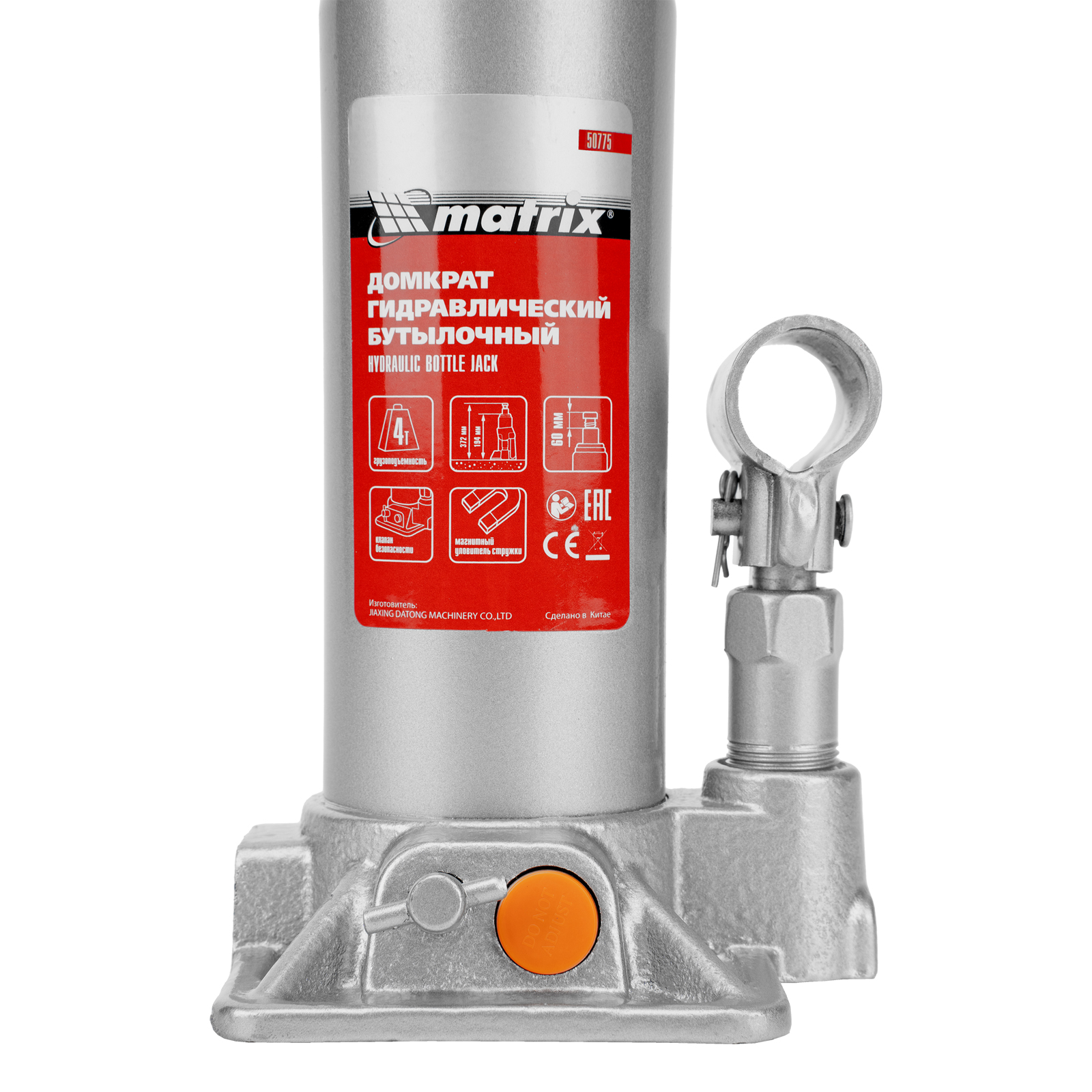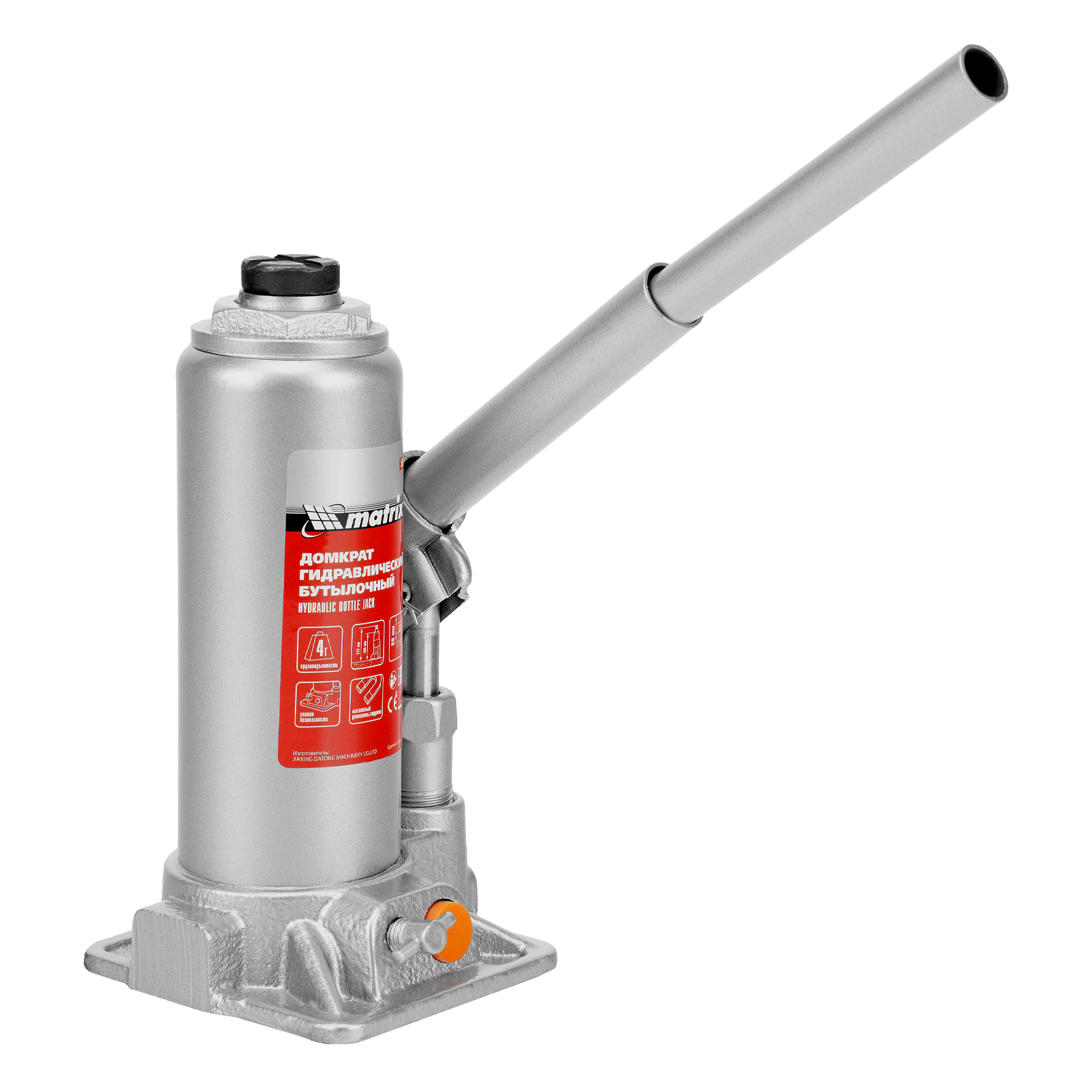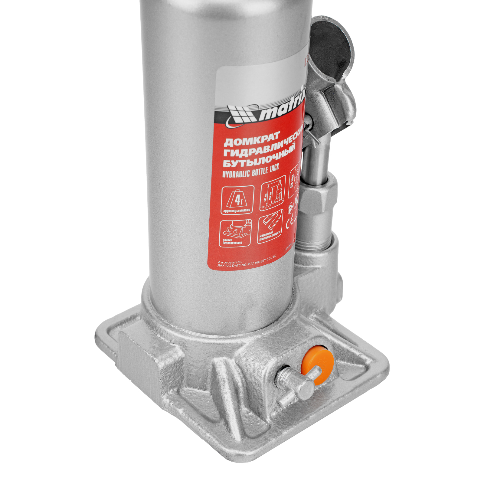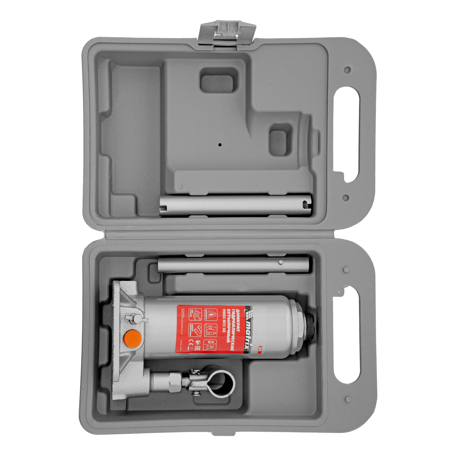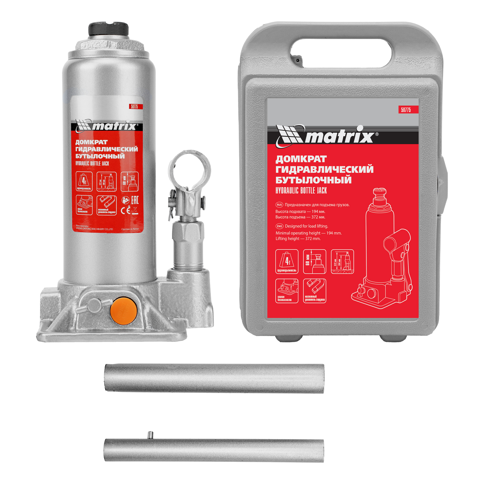 Домкрат гидравлический бутылочный, 4 т, h подъема 194-372 мм, в пластиковом кейсе Matrix