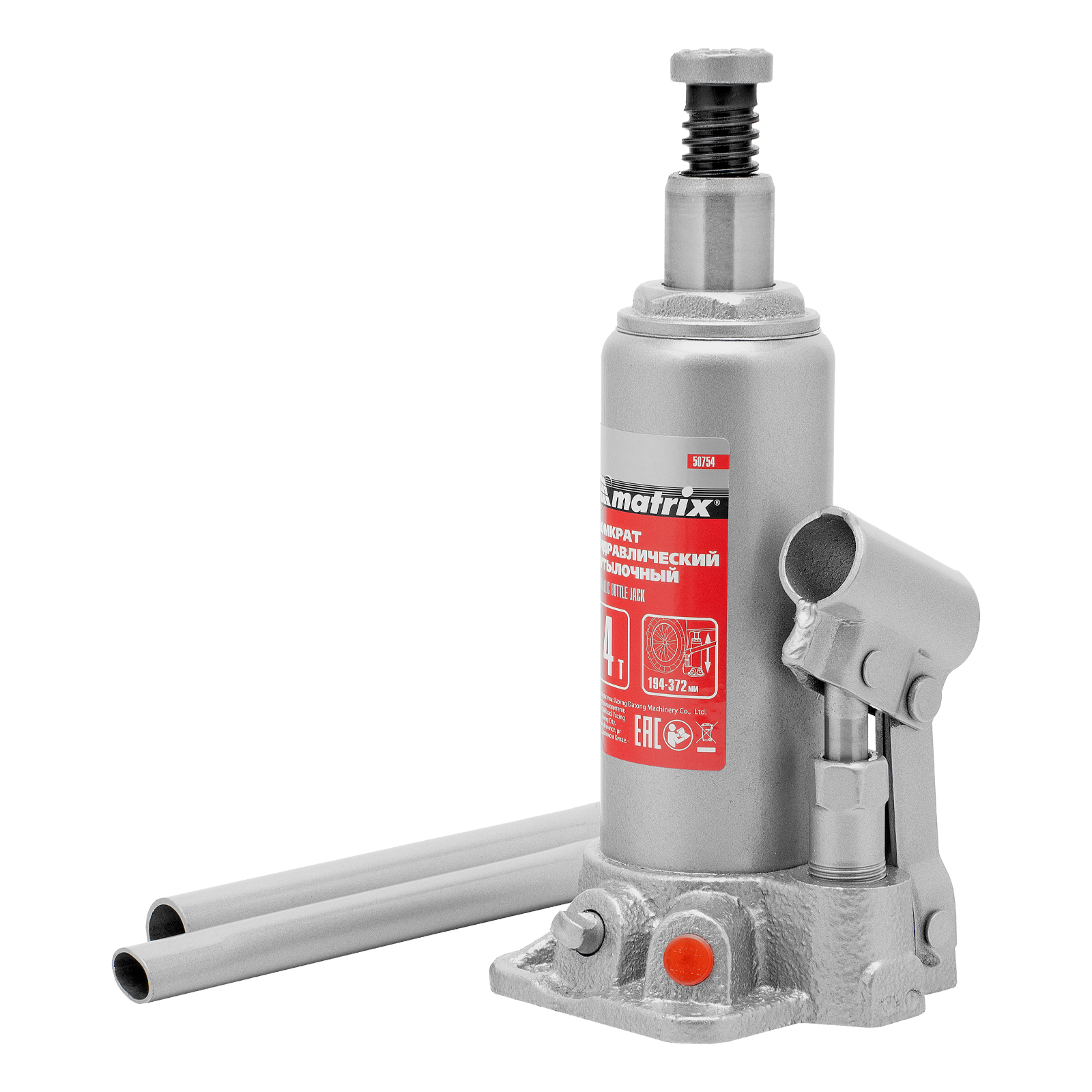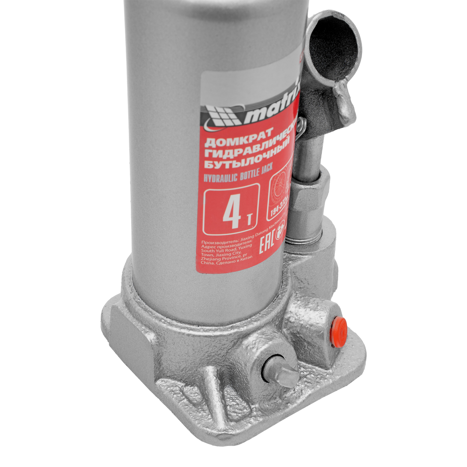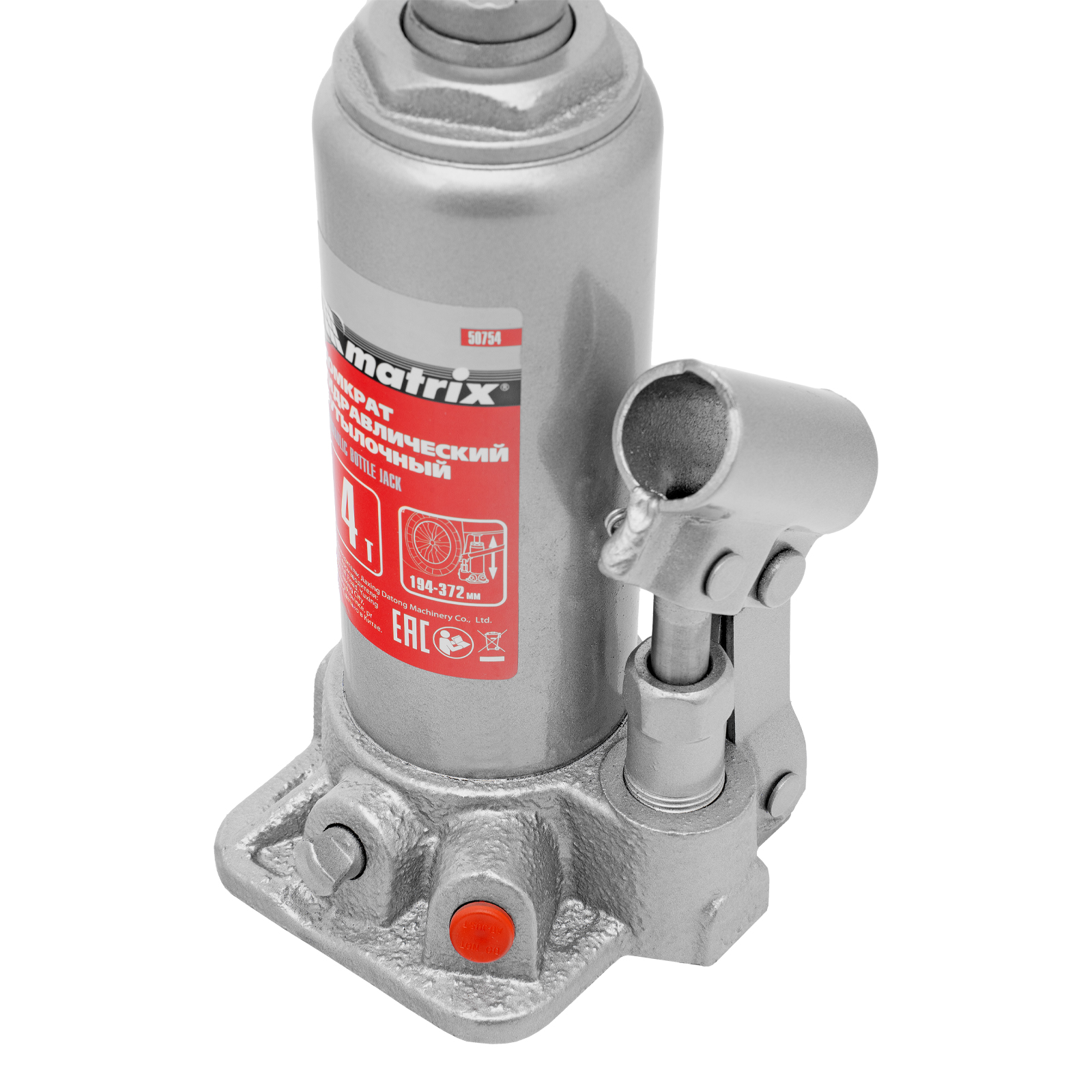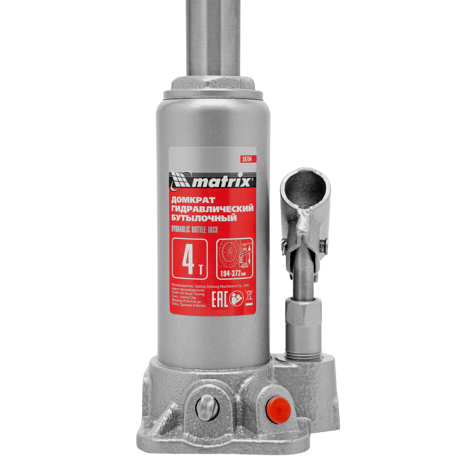 Домкрат гидравлический бутылочный, 4 т, высота подъема 194-372 мм, в пластиковый кейсе Matrix