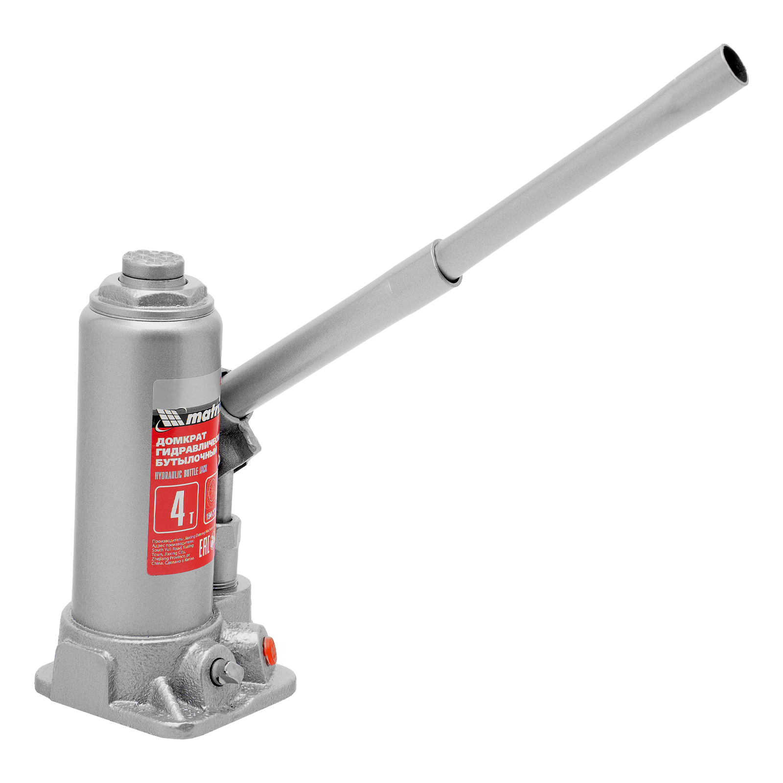 Домкрат гидравлический бутылочный Matrix 50754 предназначен для подъема грузов массой до 4 т на высоту от 194 до 372 мм. Оптимален для машин с большим клиренсом. Будет полезен автолюбителям при проведении технического обслуживания и ремонте авто в дороге или в гараже. Также домкрат подходит для полупрофессионального применения на станциях ТО.