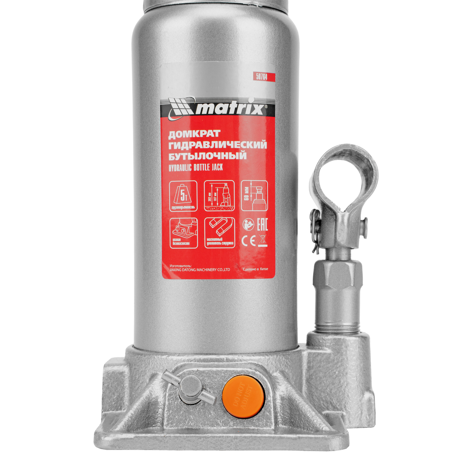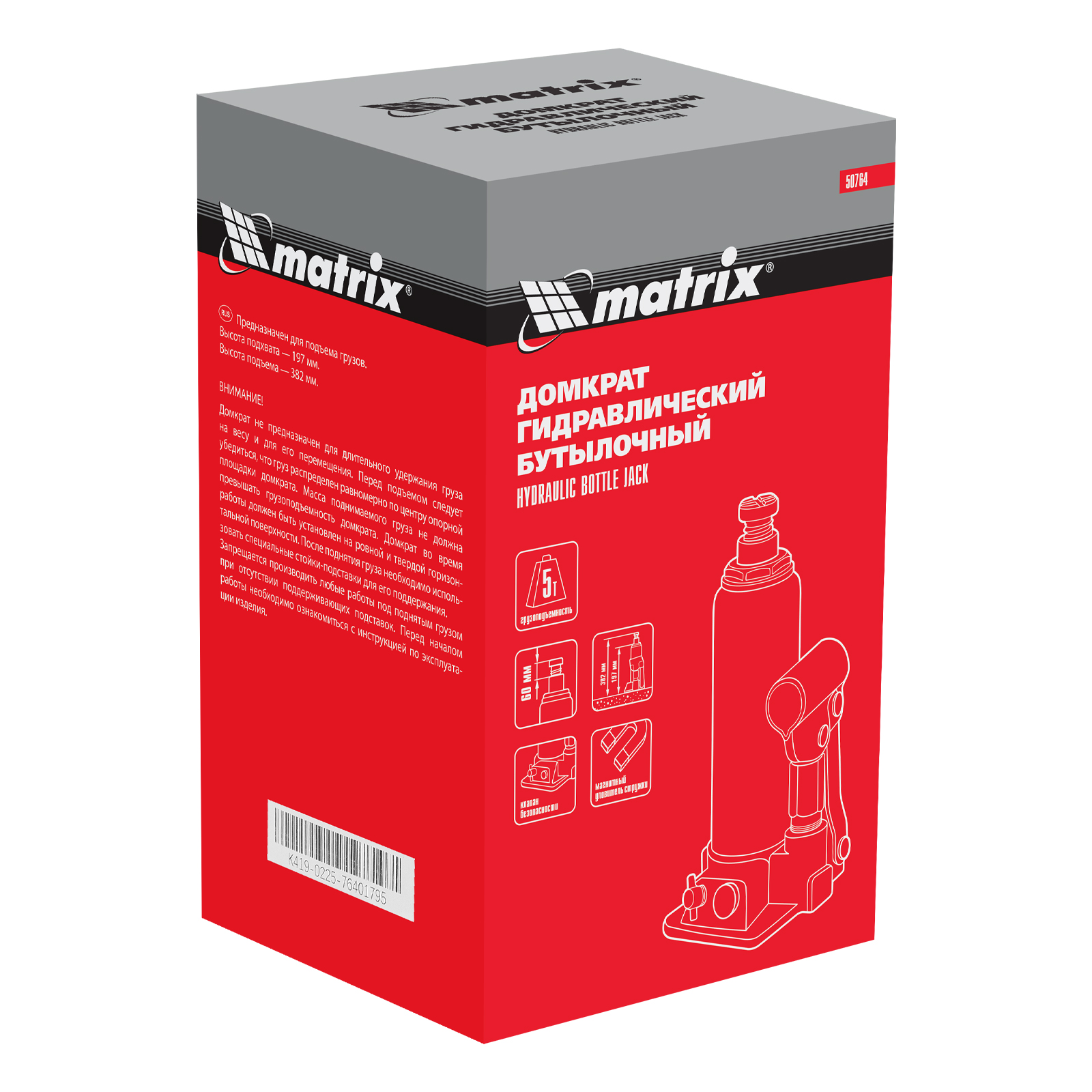 Домкрат гидравлический бутылочный, 5 т, h подъема 197-382 мм Matrix