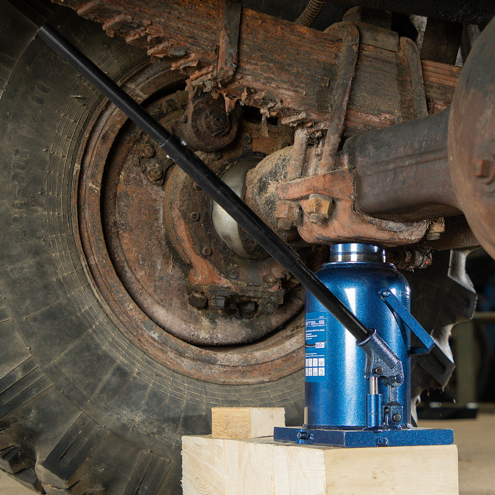 Гидравлический бутылочный домкрат Stels 51171 применяется для быстрого поднятия грузов весом до 50 т на высоту 280-450 мм. Оптимален для автомобилей с большим клиренсом. Домкрат будет полезен автолюбителям и профессионалам для ремонта транспортного средства.