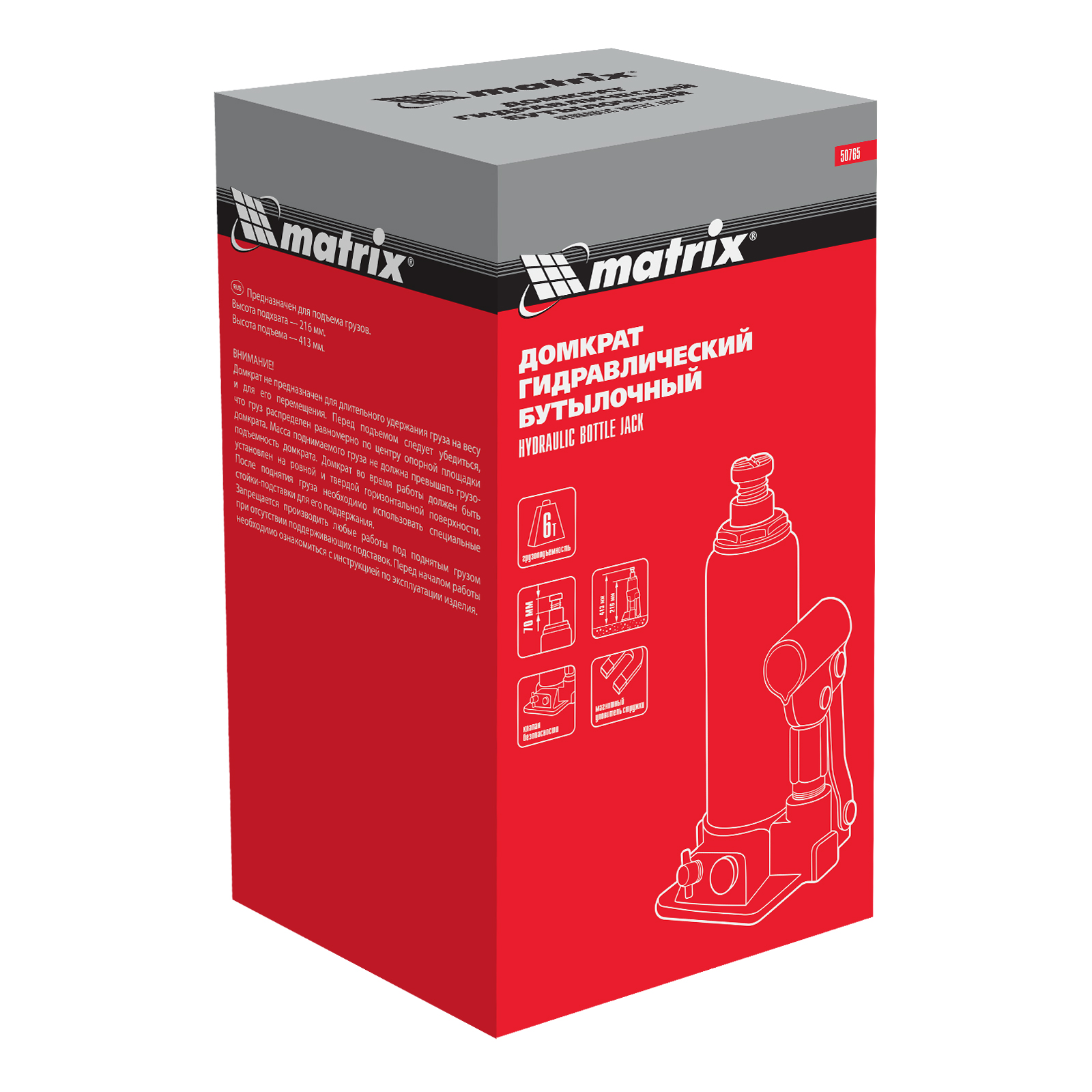 Домкрат гидравлический бутылочный, 6 т, h подъема 216-413 мм Matrix