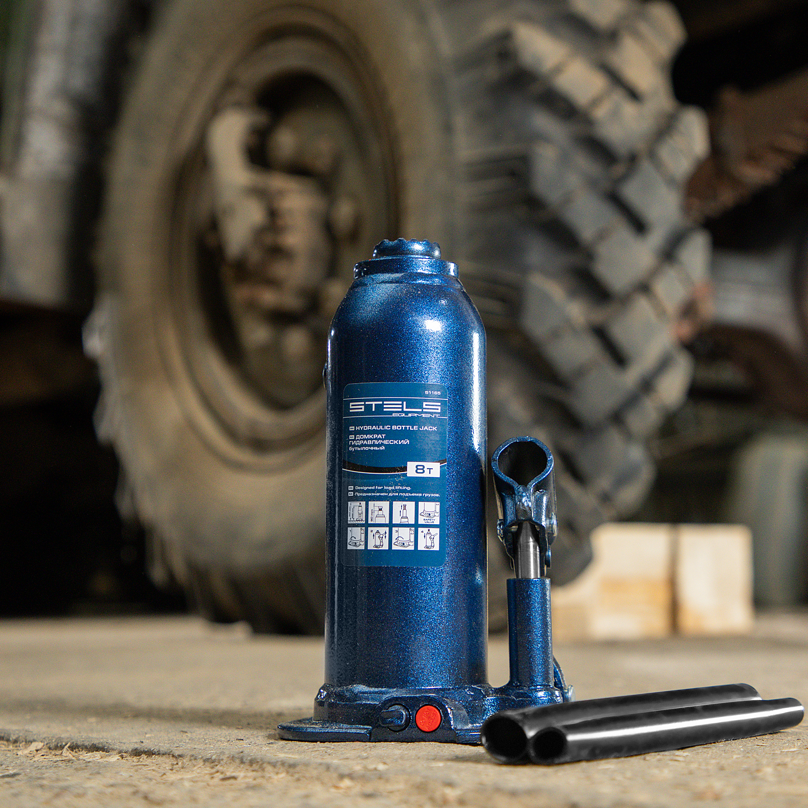 - Безопасная эксплуатация — благодаря предохранительному клапану домкрат не поднимает грузы тяжелее 8000 кг.
