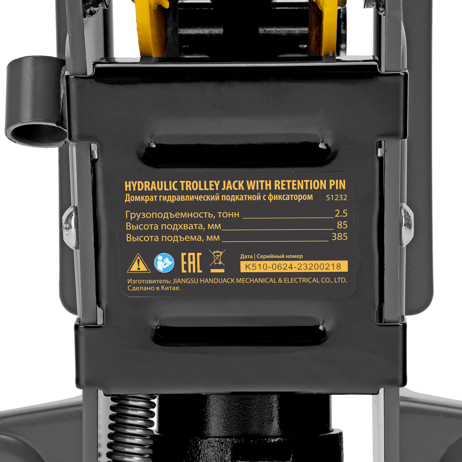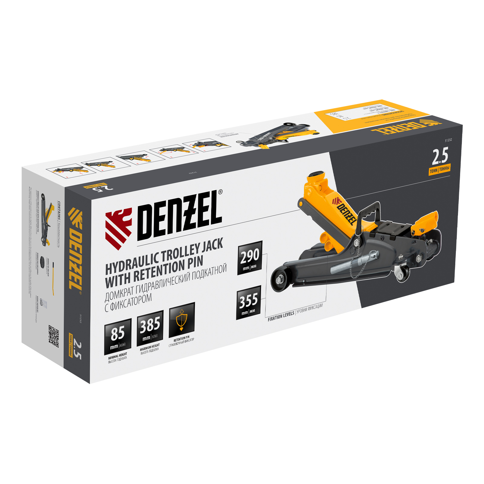 Домкрат гидравлический подкатной с фиксатором, 2,5 т, 85-385 мм Denzel