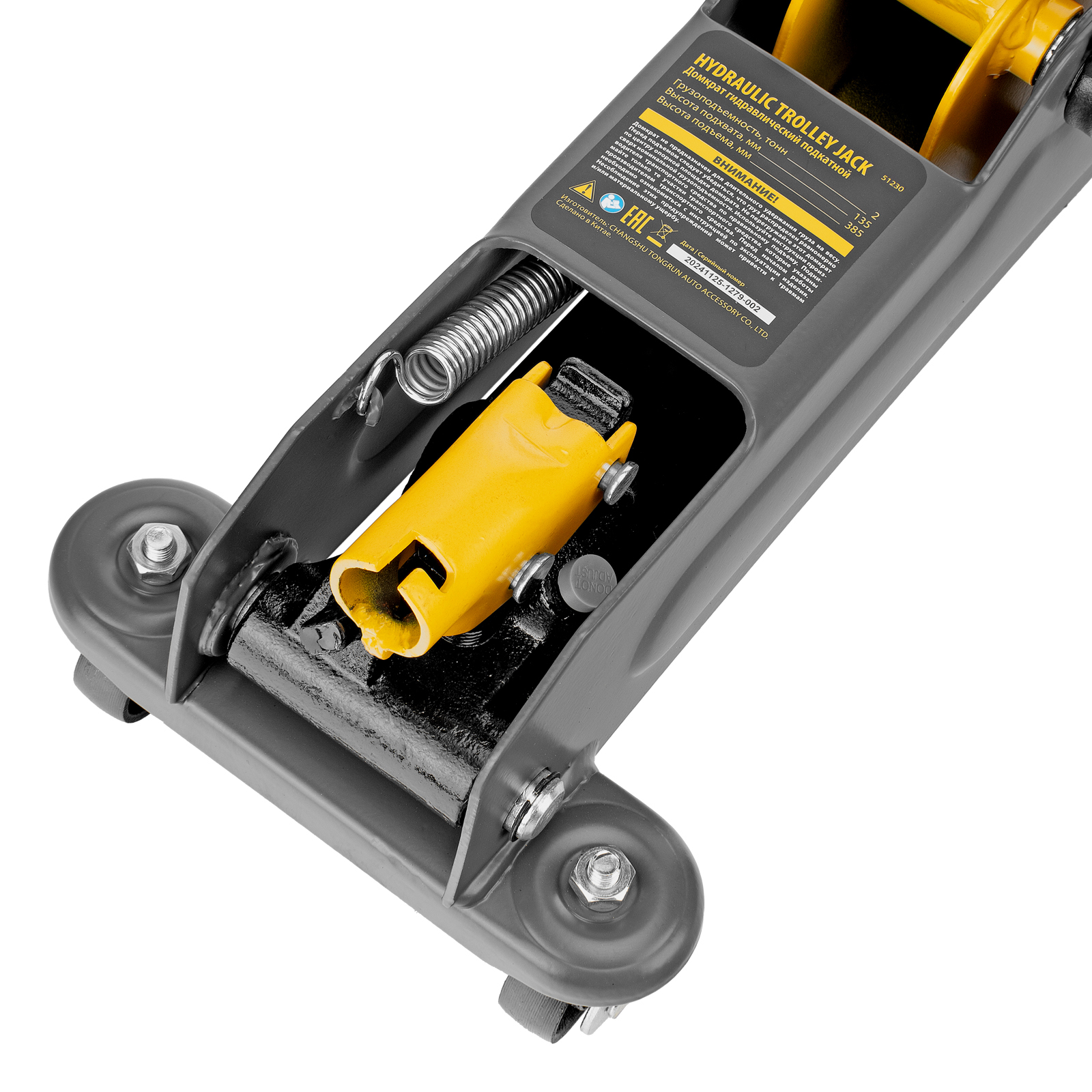 Гидравлический подкатной домкрат Denzel 51230 с высотой подхвата 135 мм предназначен для плавного подъема грузов массой до 2 т на высоту до 385 мм. Домкрат пригодится владельцам легковых автомобилей со стандартным клиренсом.