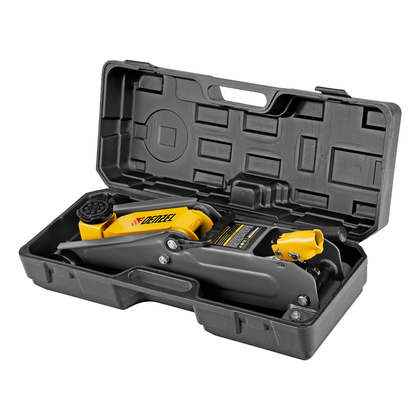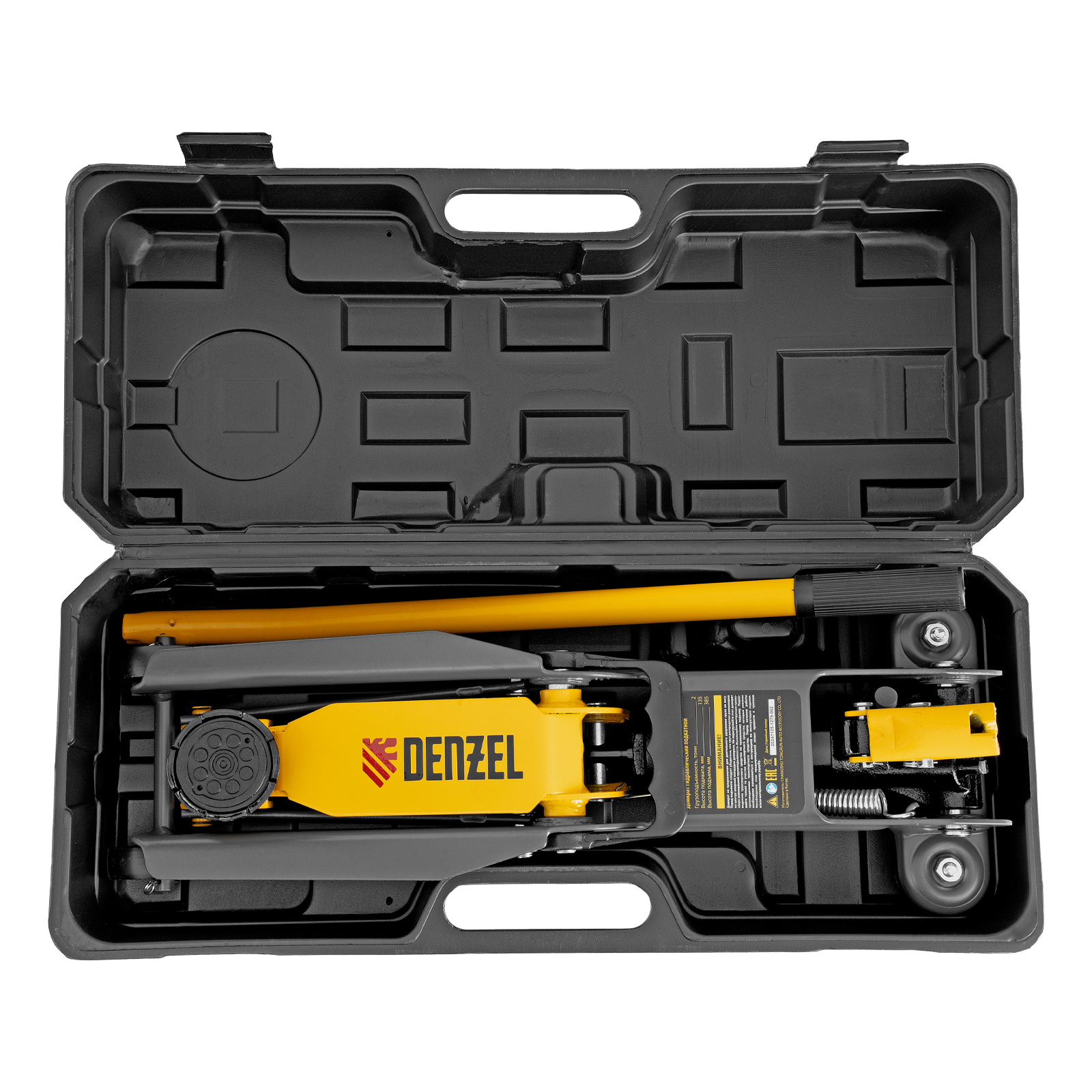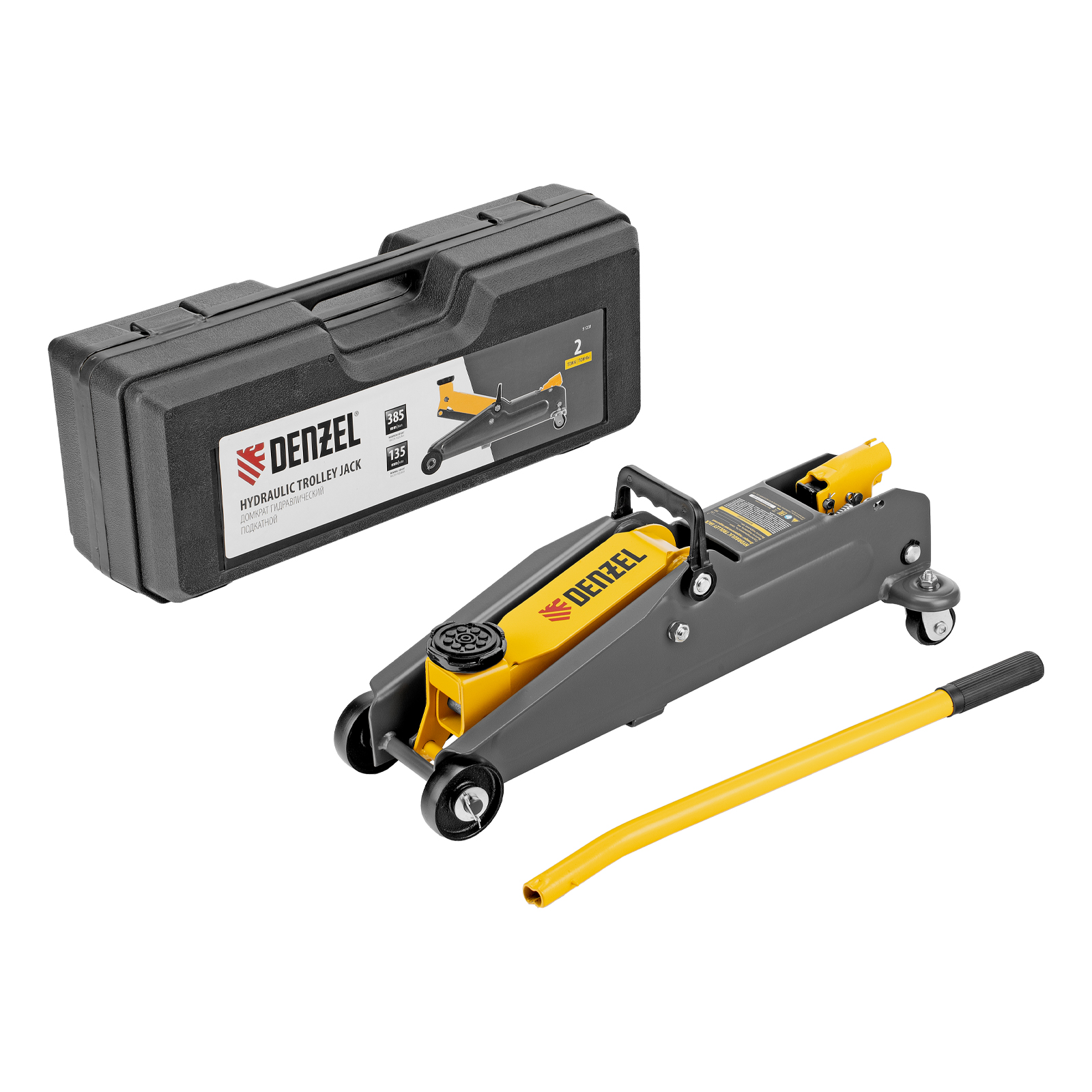 Домкрат гидравлический подкатной, 2 т, 135-385 мм, в пласт. кейсе Denzel