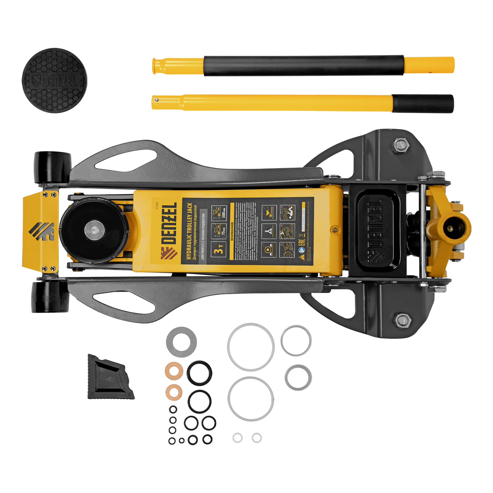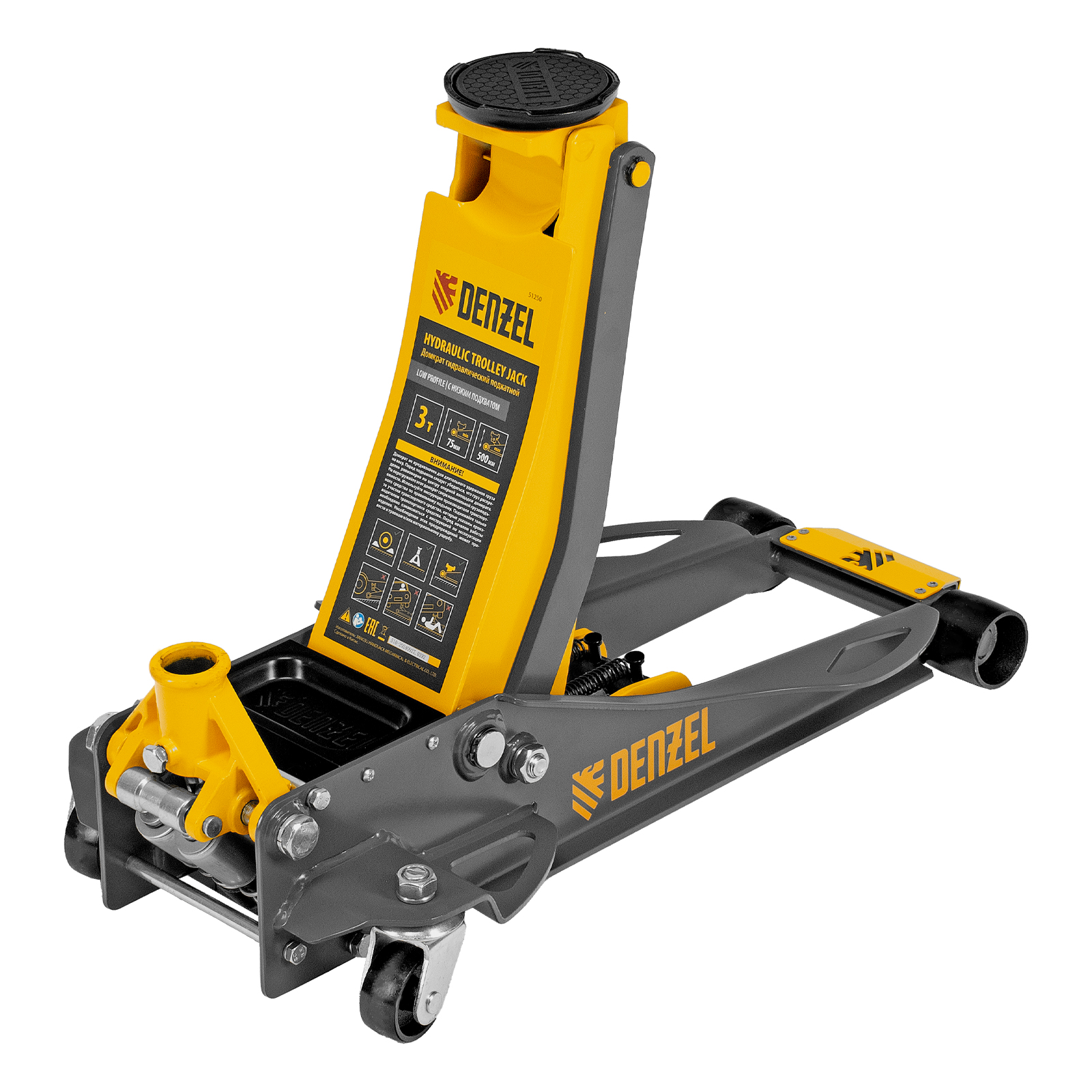 Домкрат гидравлический подкатной, 3 т, 75-500 мм, быстрый подъем, низкий подхват, проф. Denzel