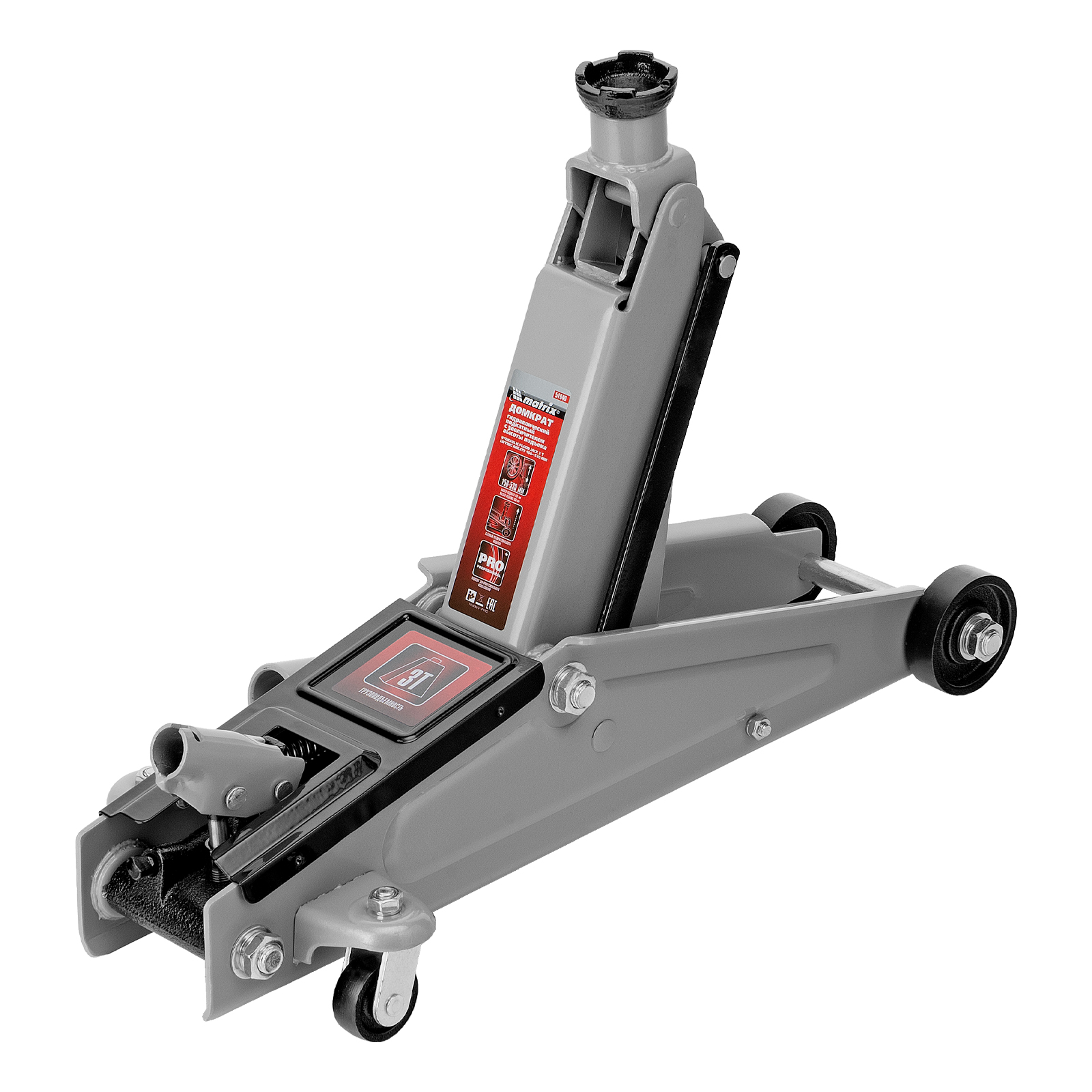 Домкрат гидравлический подкатной, 3 т, высота подъема 150-530 мм Matrix