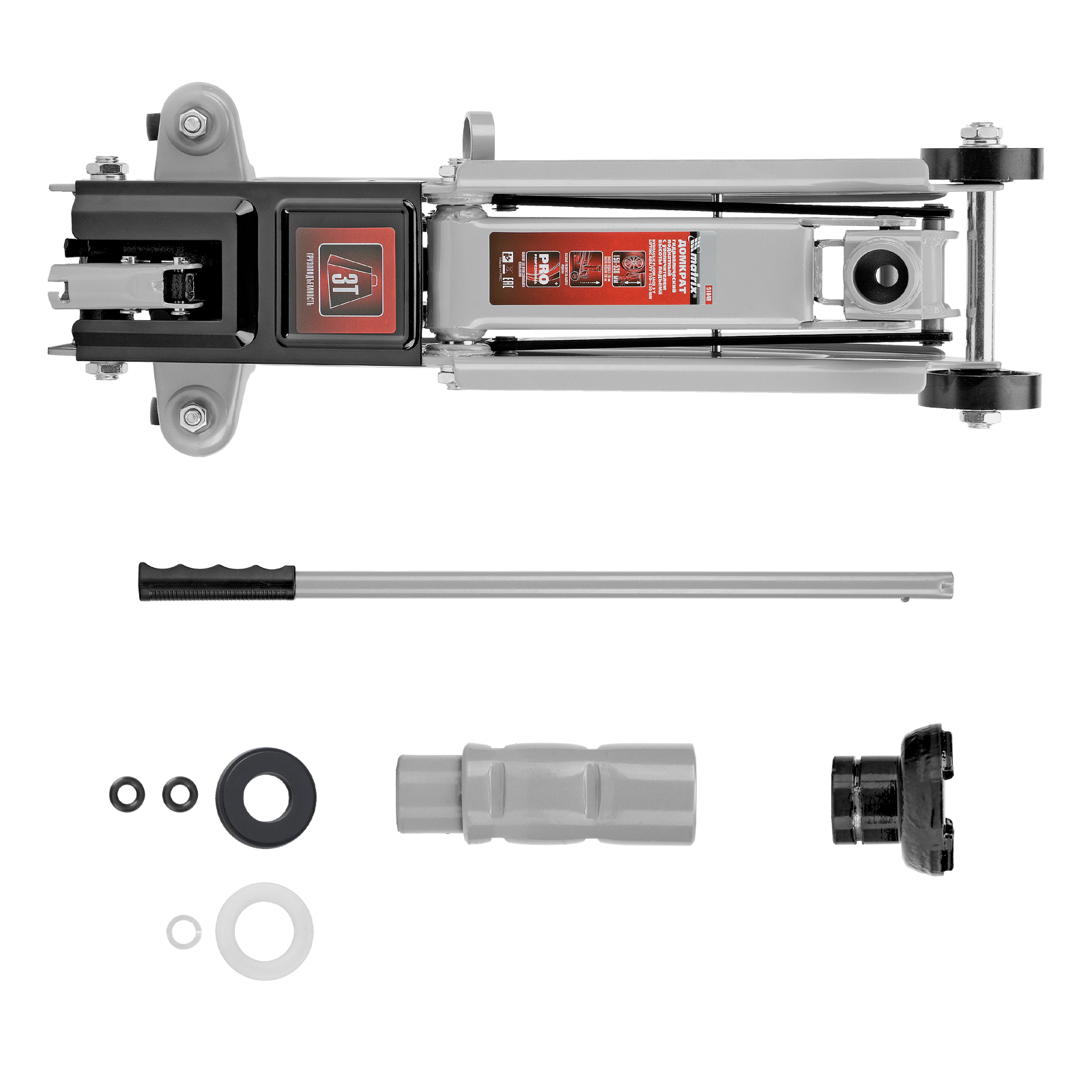 Домкрат - 1 штРукоятка домкрата - 1 штРемонтный комплект прокладок - 1 штРуководство по эксплуатации - 1 шт |