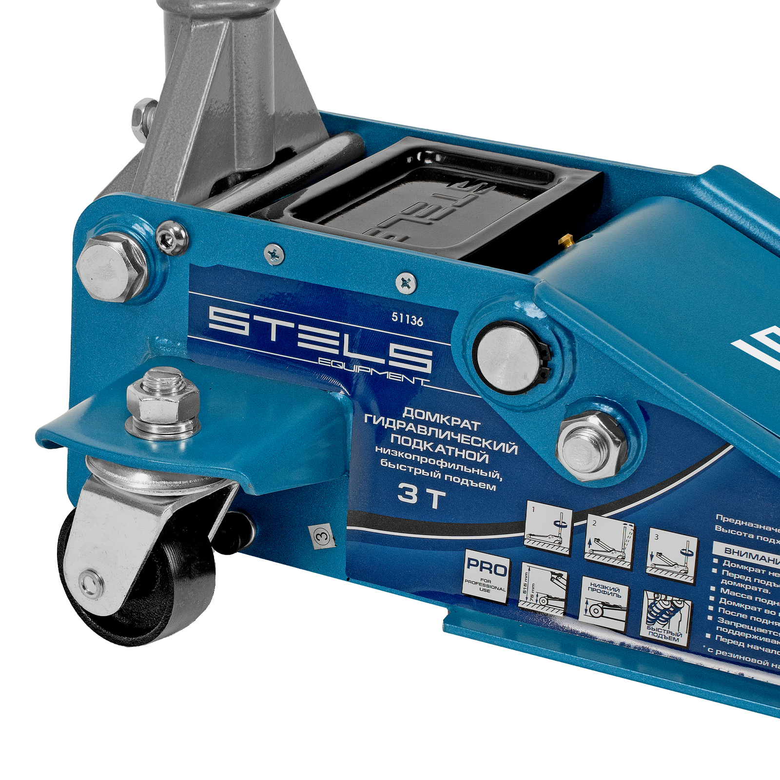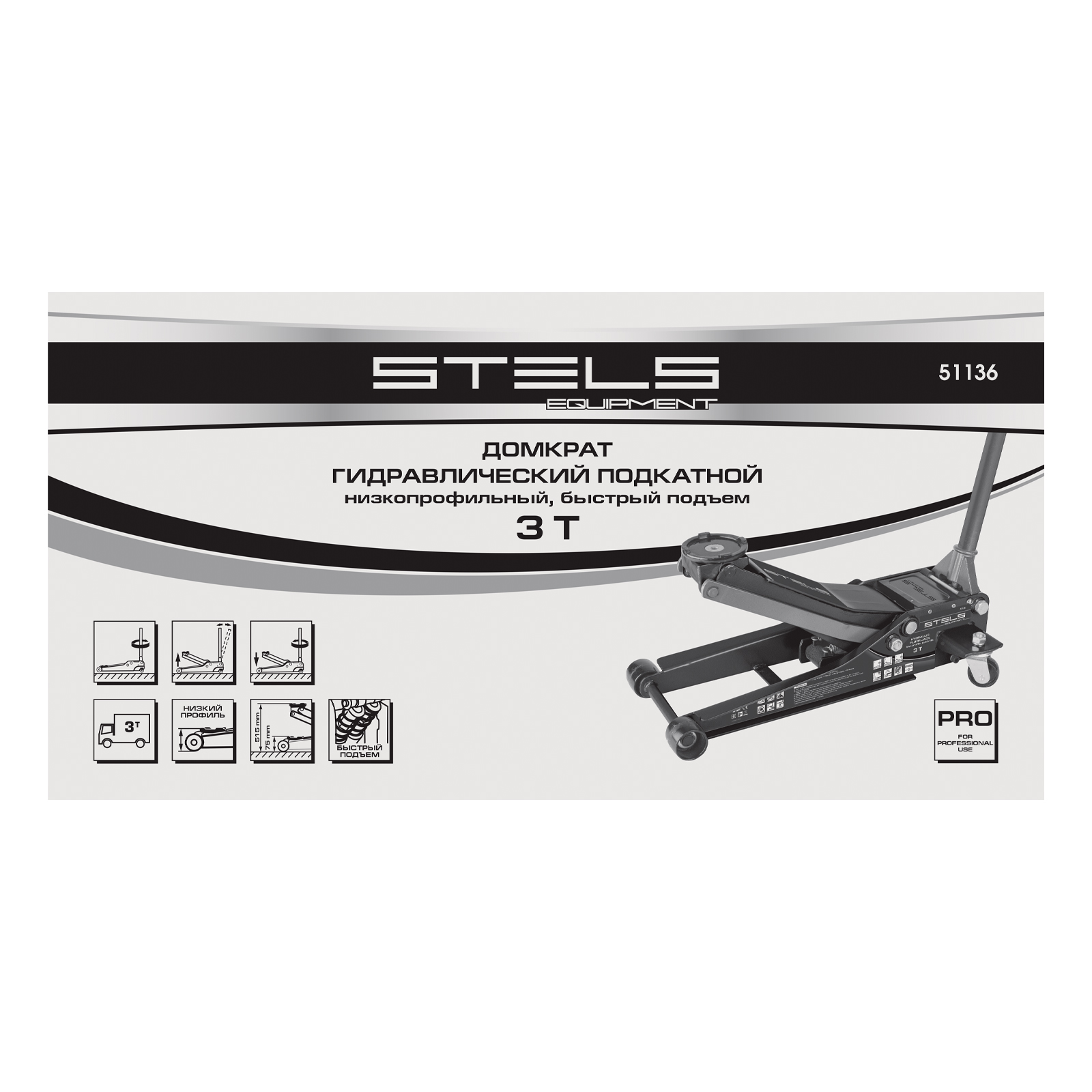Домкрат гидравлический подкатной, быстрый подъем, 3т Low Profile Quick, 75-515 мм, профессиональный Stels в Москве