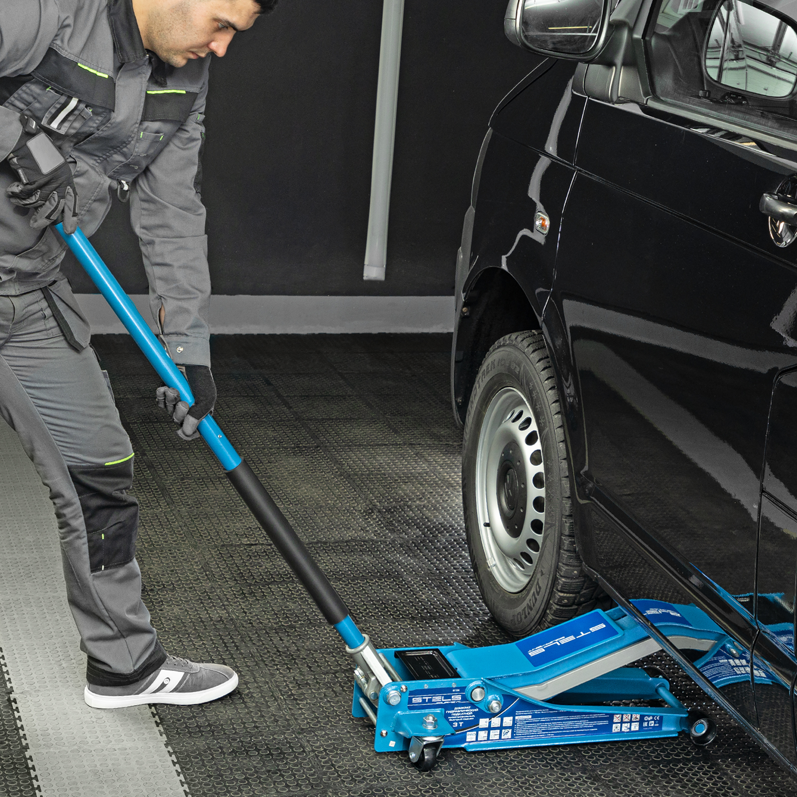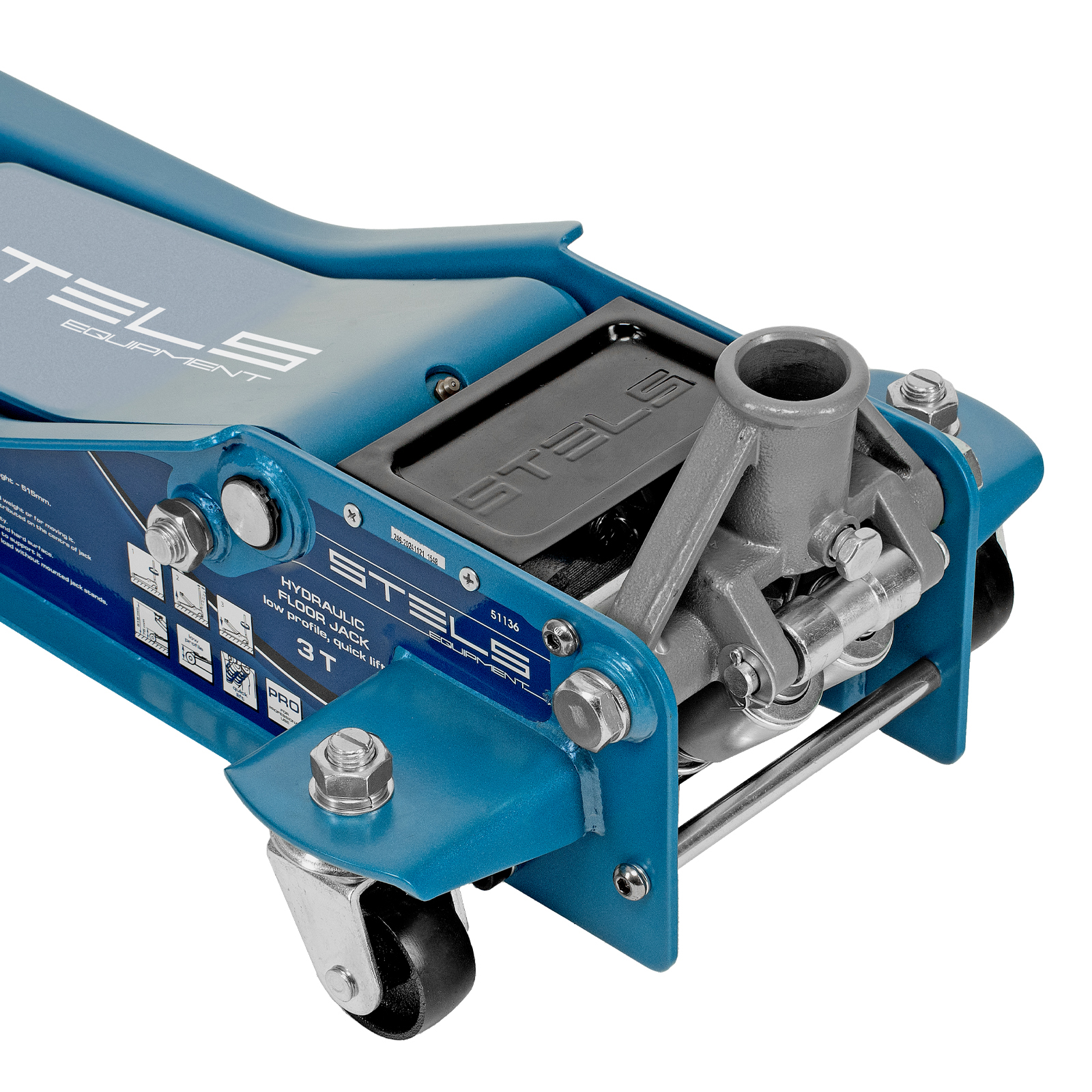 Профессиональный подкатной гидравлический домкрат Stels LOW PROFILE QUICK LIFT 51136 используется для быстрого подъема на высоту 75-515 мм всех типов автомобилей со сверхнизким клиренсом и массой до 3 тонн. Благодаря системе QUICK LIFT для достижения предельной высоты достаточно 12 качков рукоятки. Домкрат подходит для использования на станциях техобслуживания и шиномонтажа.
