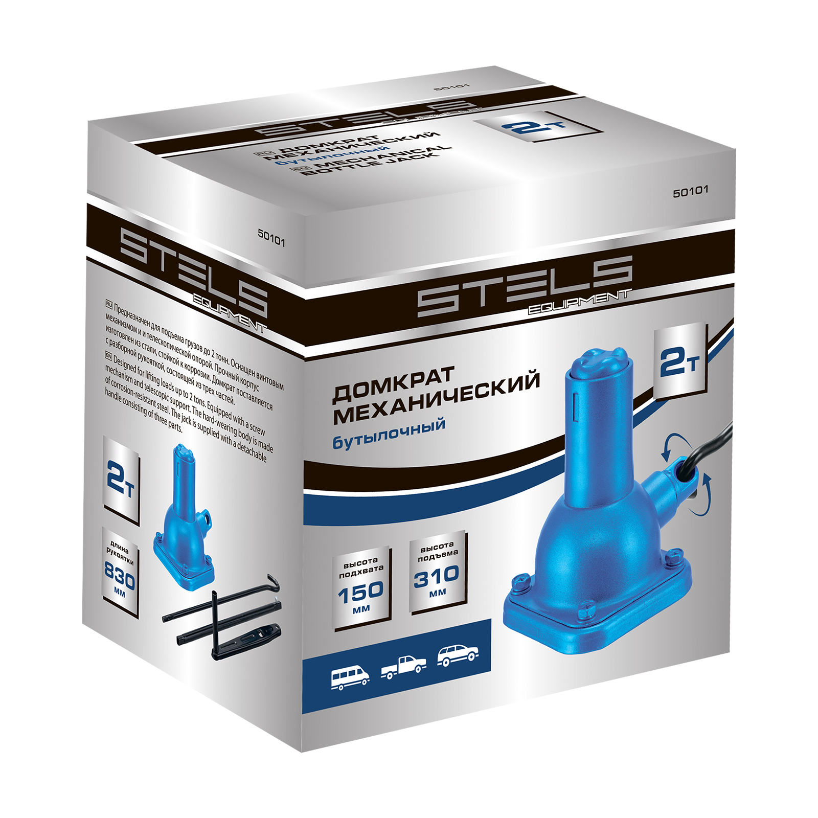 Механический бутылочный домкрат Stels 50101 состоит из 2 частей: самого домкрата и ручки, имеет телескопический шток и используется для быстрого подъема грузов массой до 2 т на высоту от 150 до 310 мм. Домкрат предназначен для самостоятельного применения, будет полезен владельцам легковых автомобилей в дороге и гараже.