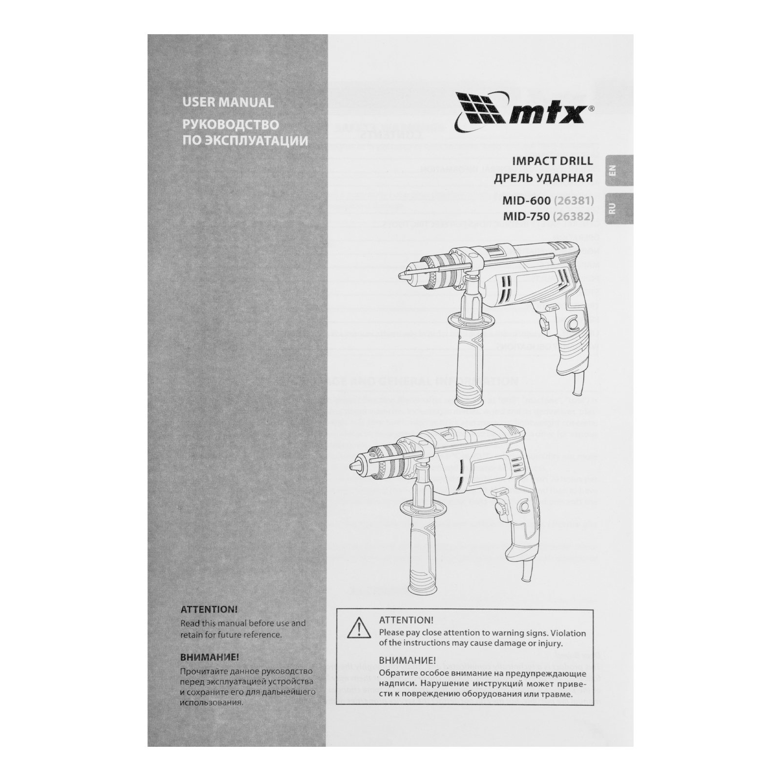 Дрель ударная MID-600, 600 Вт, 0-3000 об/мин, 0-48000 уд/мин MTX