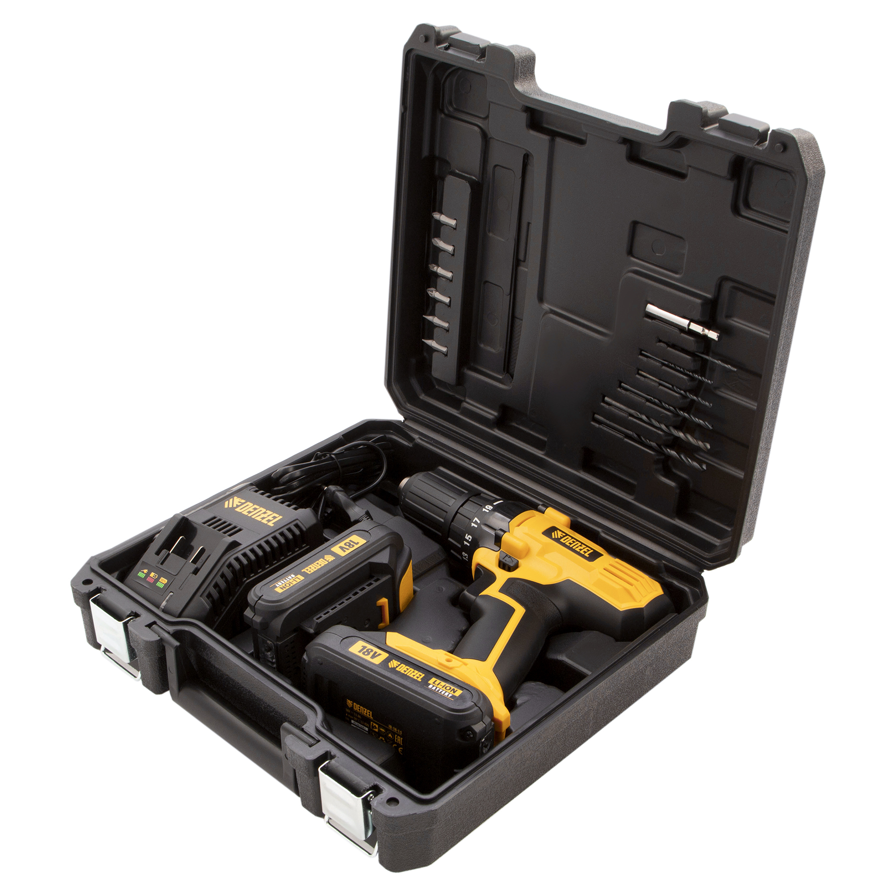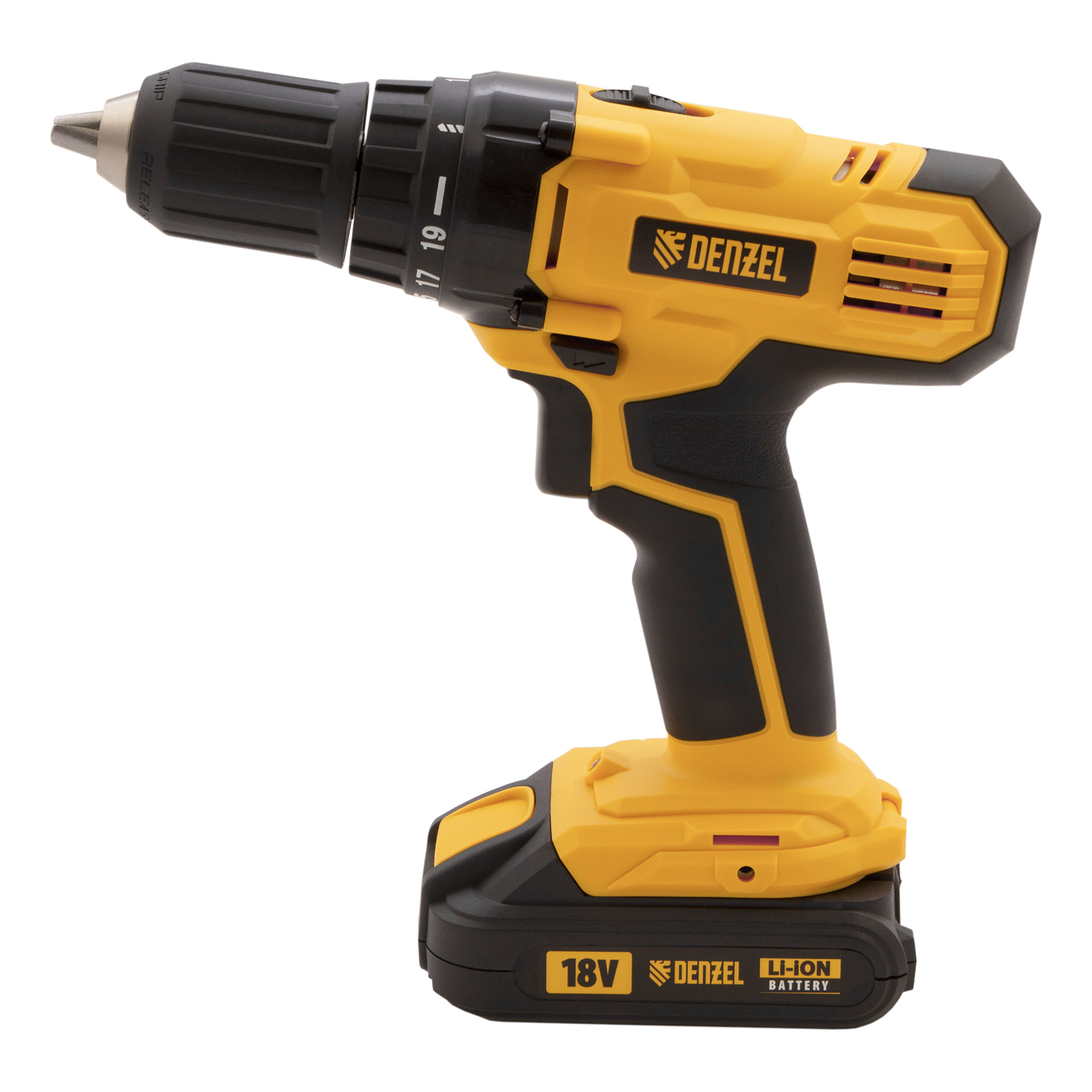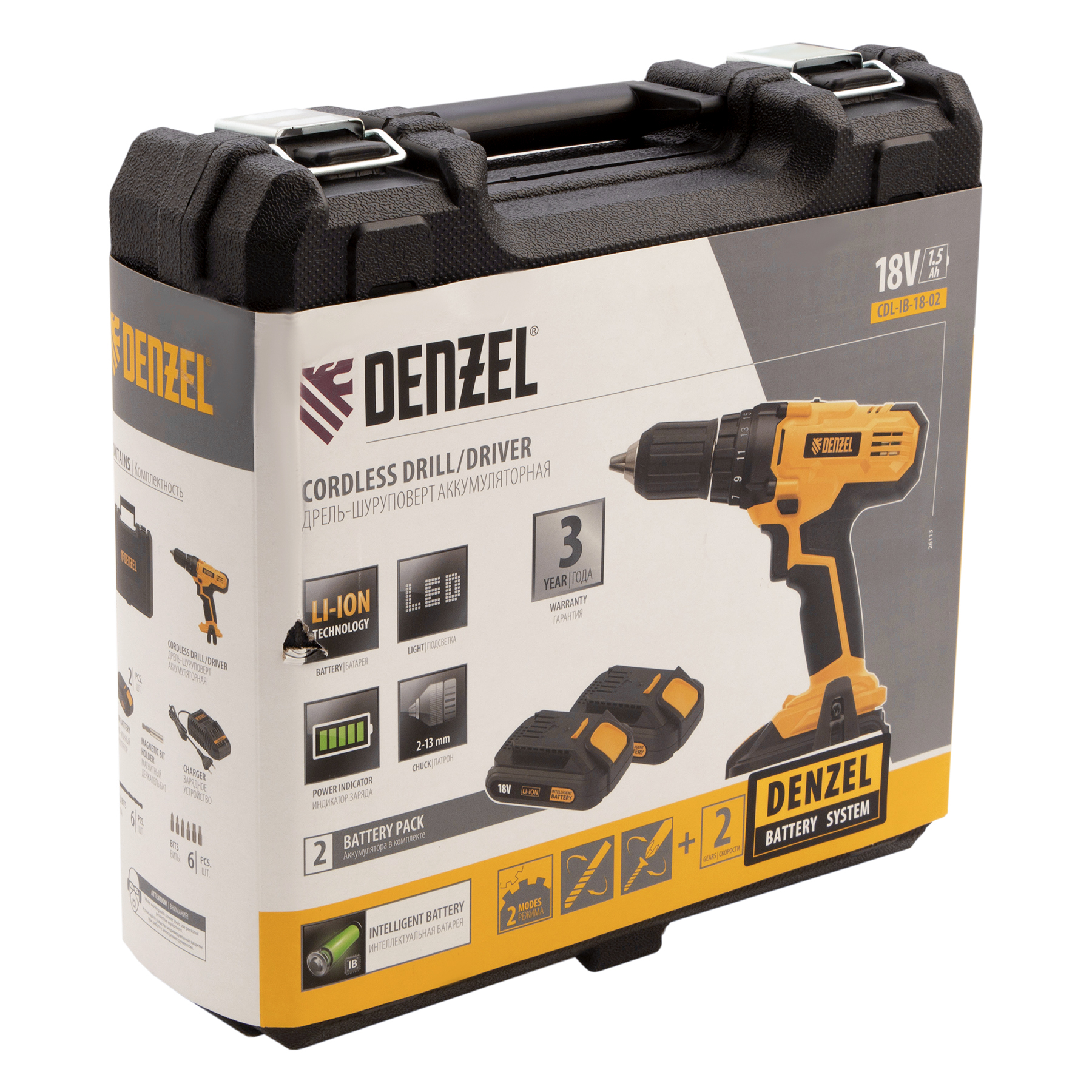Дрель-шуруповерт аккумуляторная CDL-IB-18-02, Li-Ion, 18 В, 2 акк. Denzel