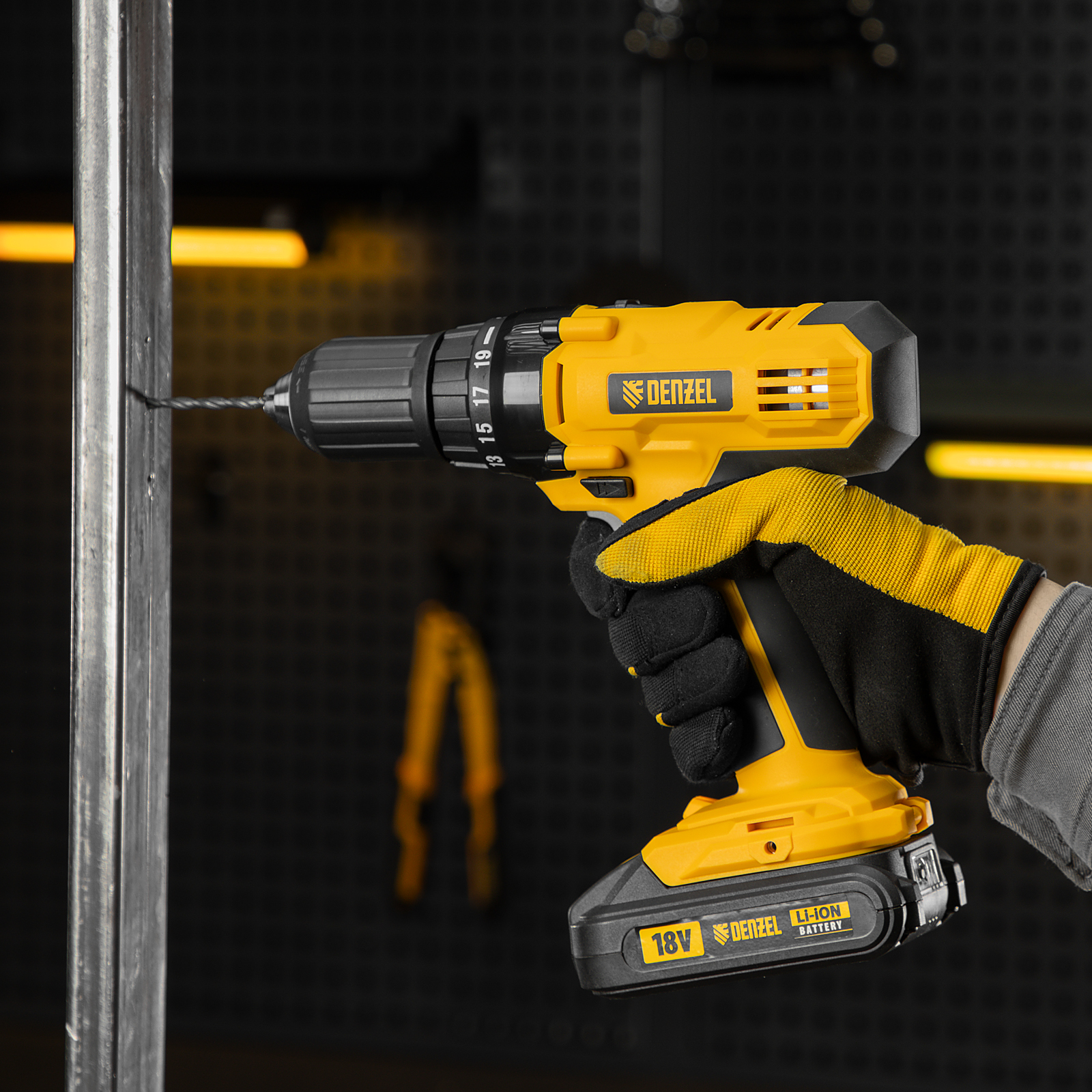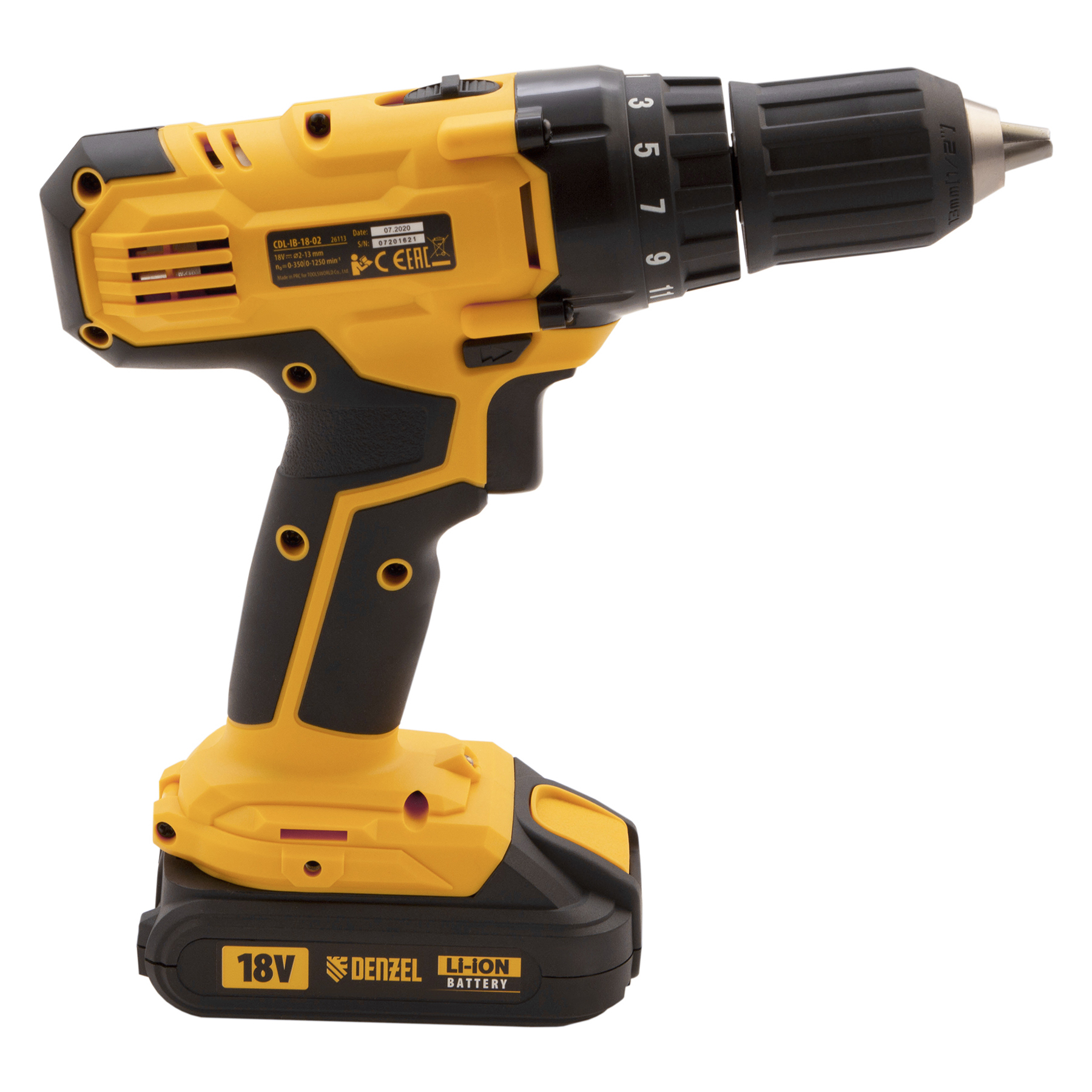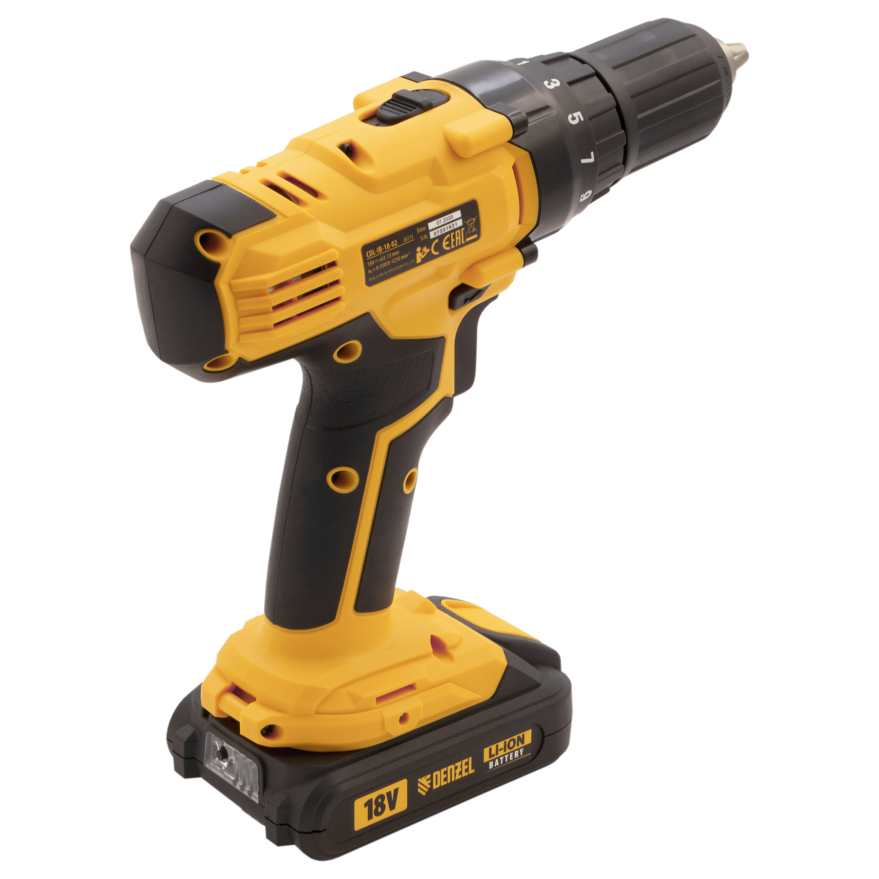Дрель-шуруповерт аккумуляторная CDL-IB-18-02, Li-Ion, 18 В, 2 акк. Denzel
