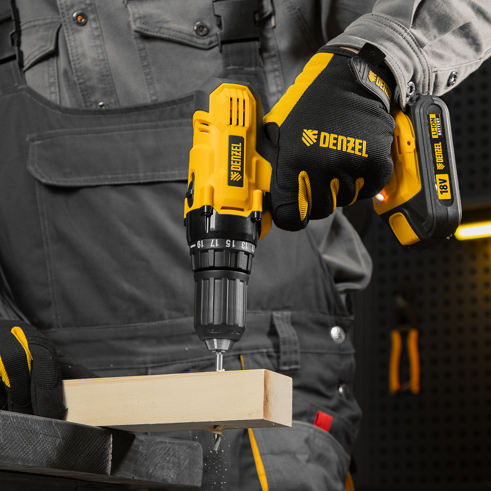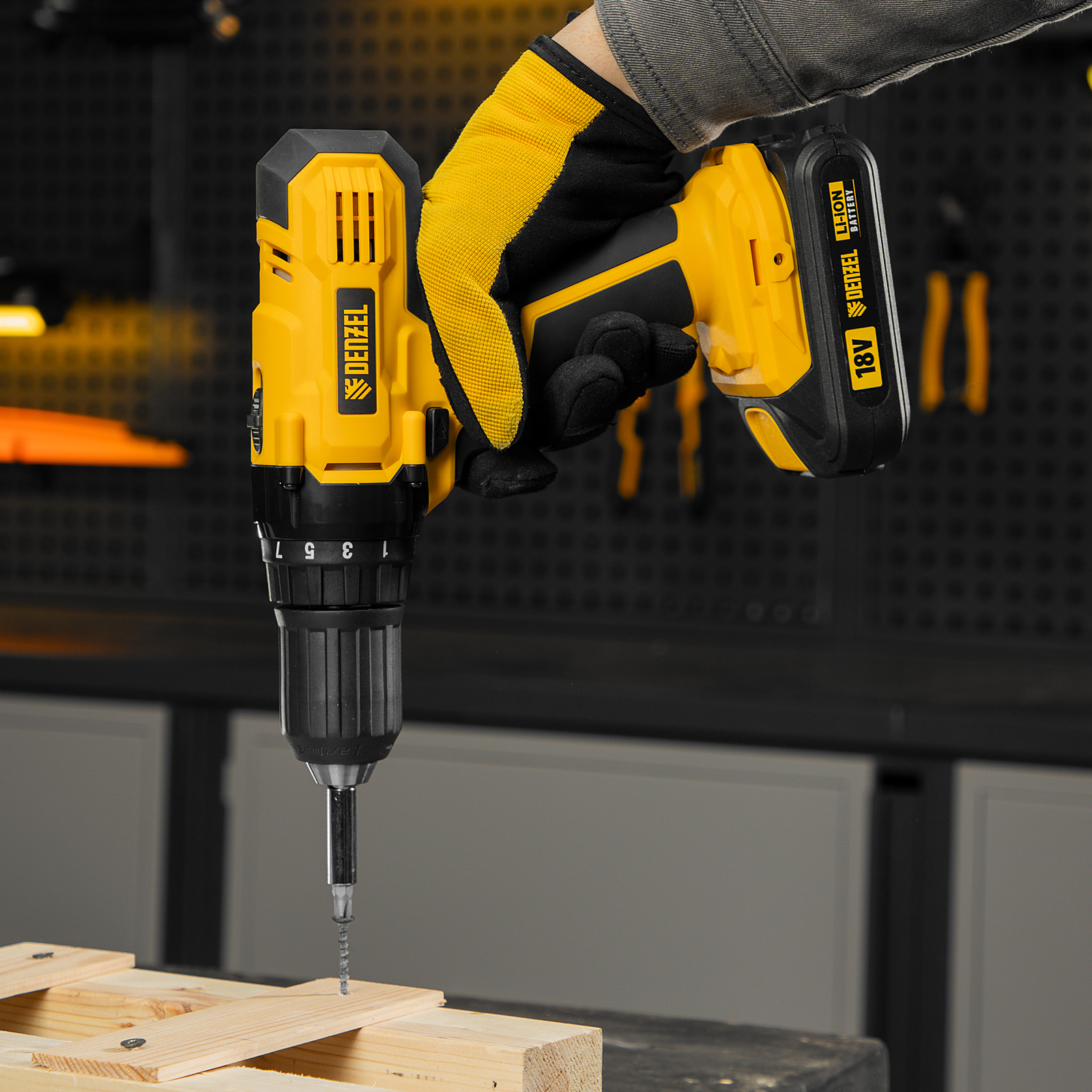 - Универсальность — аккумулятор 1,5 Ач Li-ion совместим с любым инструментом 18V Denzel battery system серии IB.