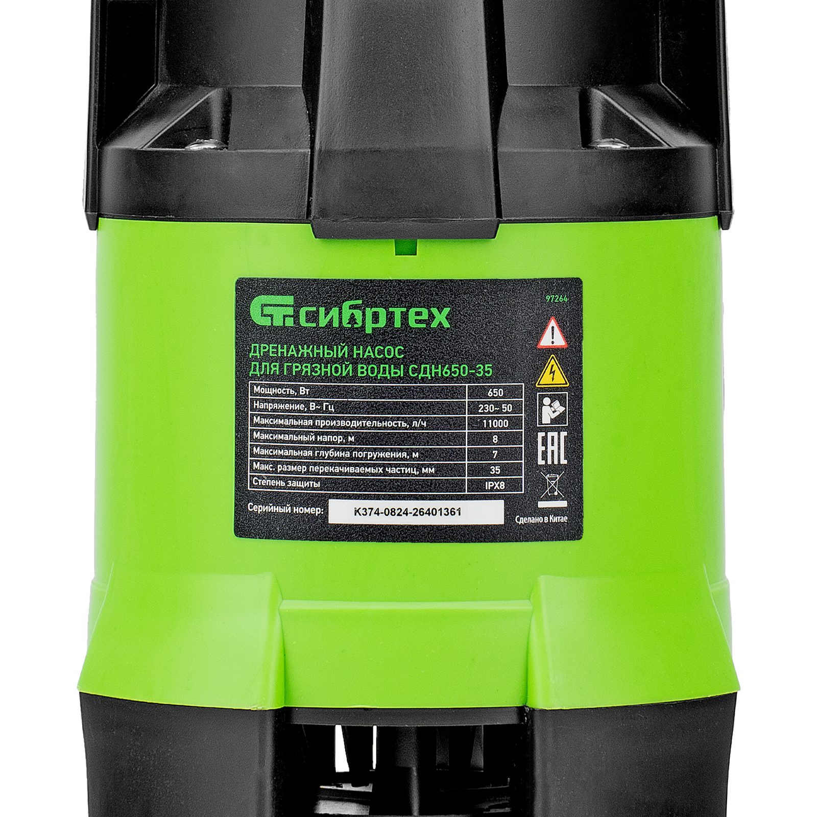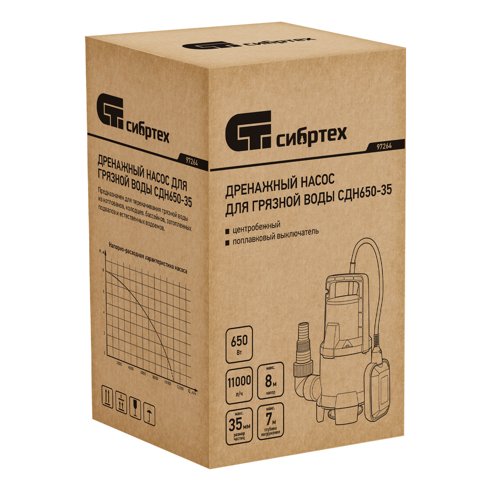 Дренажный насос для грязной воды СДН650-35, 650 Вт, напор 8 м, 11000 л/ч Сибртех в Москве