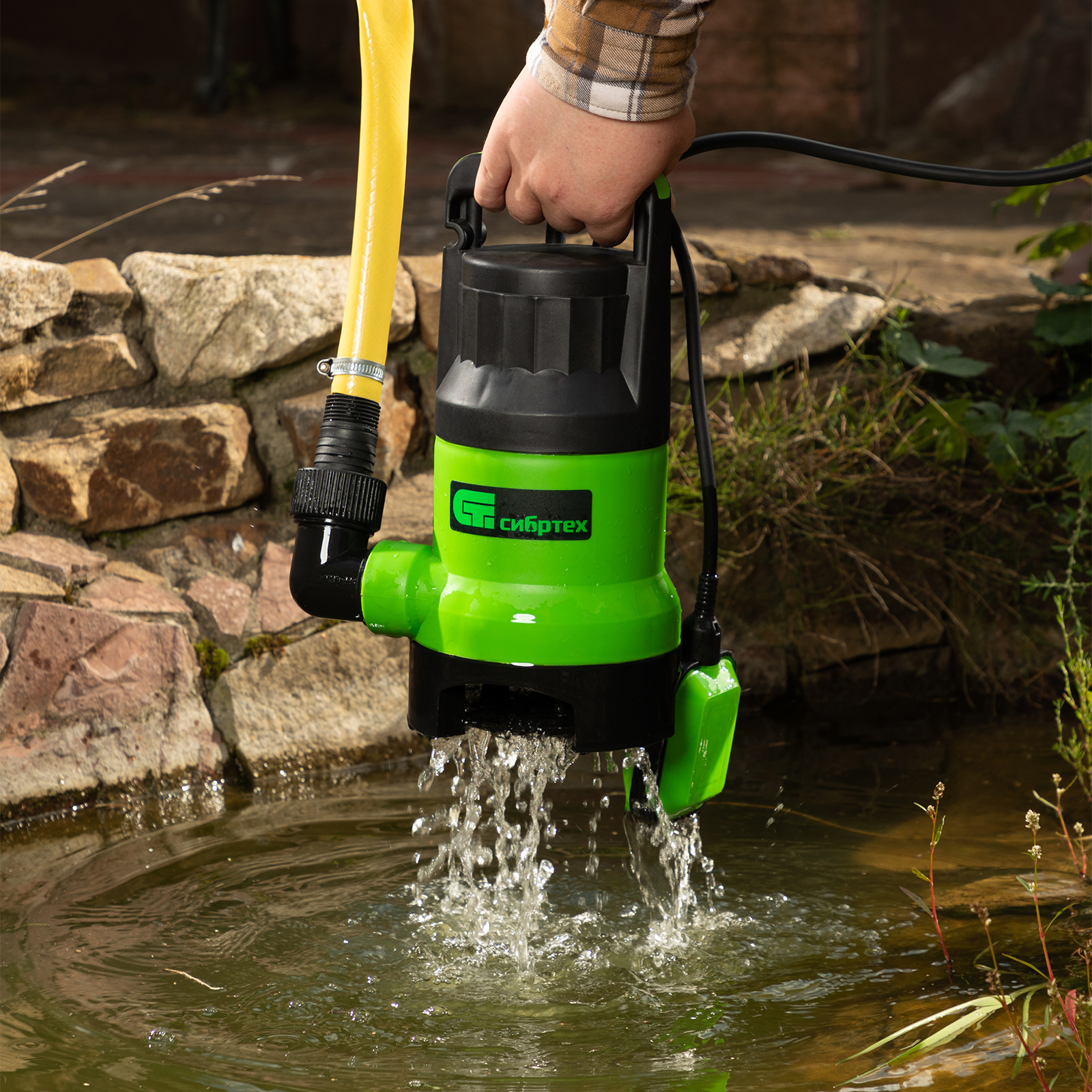 - Безопасная работа — насос с широким основанием не опрокидывается, электронные компоненты надежно изолированы от воды (степень защиты IPX8).