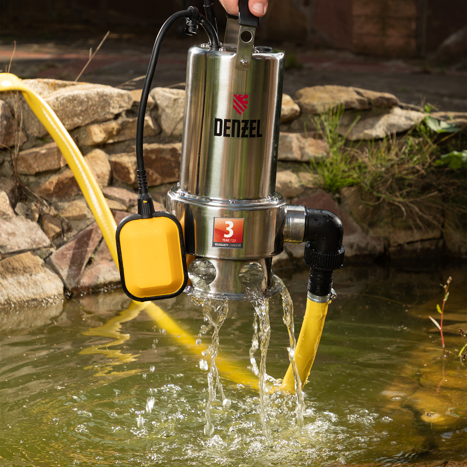 Дренажный насос DP1100X, 1100 Вт, подъем 11 м, 15500 л/ч Denzel