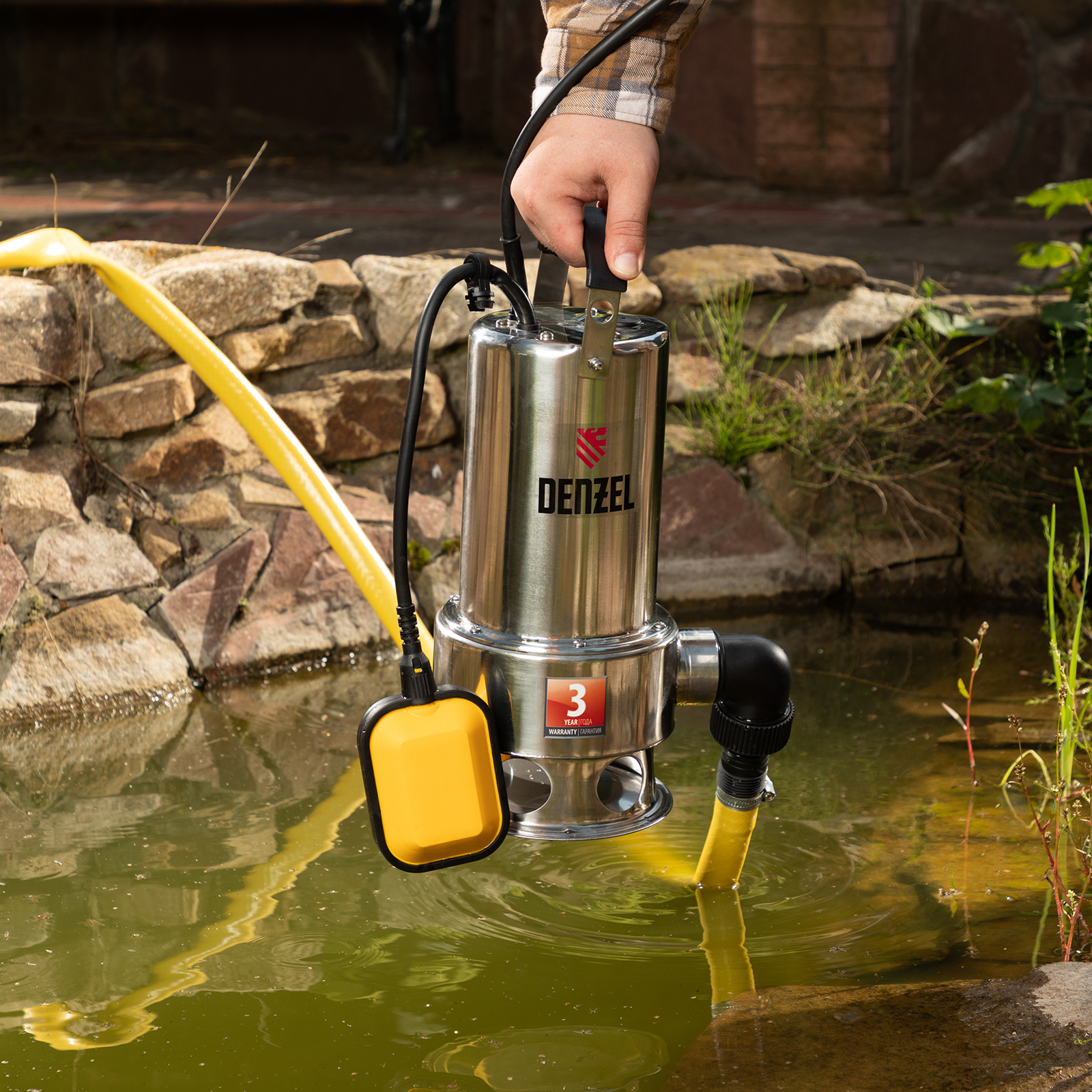 - Длина кабеля 10 м — устройство можно погружать на большую глубину и подключать к розетке без удлинителя.