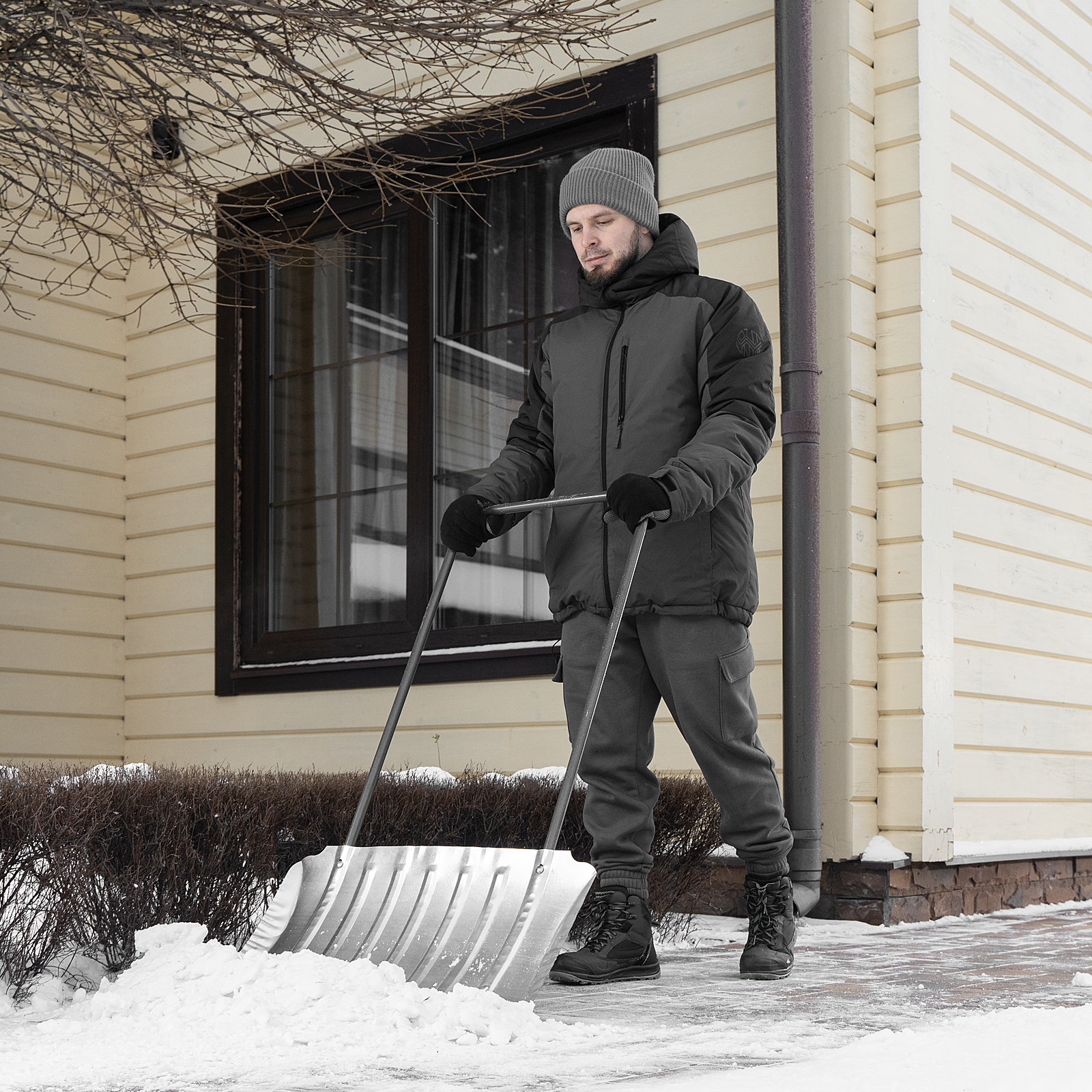 - Повышенная устойчивость к нагрузкам — стальная рукоятка отличается высокой прочностью на изгиб, ковш усилен ребрами жесткости.