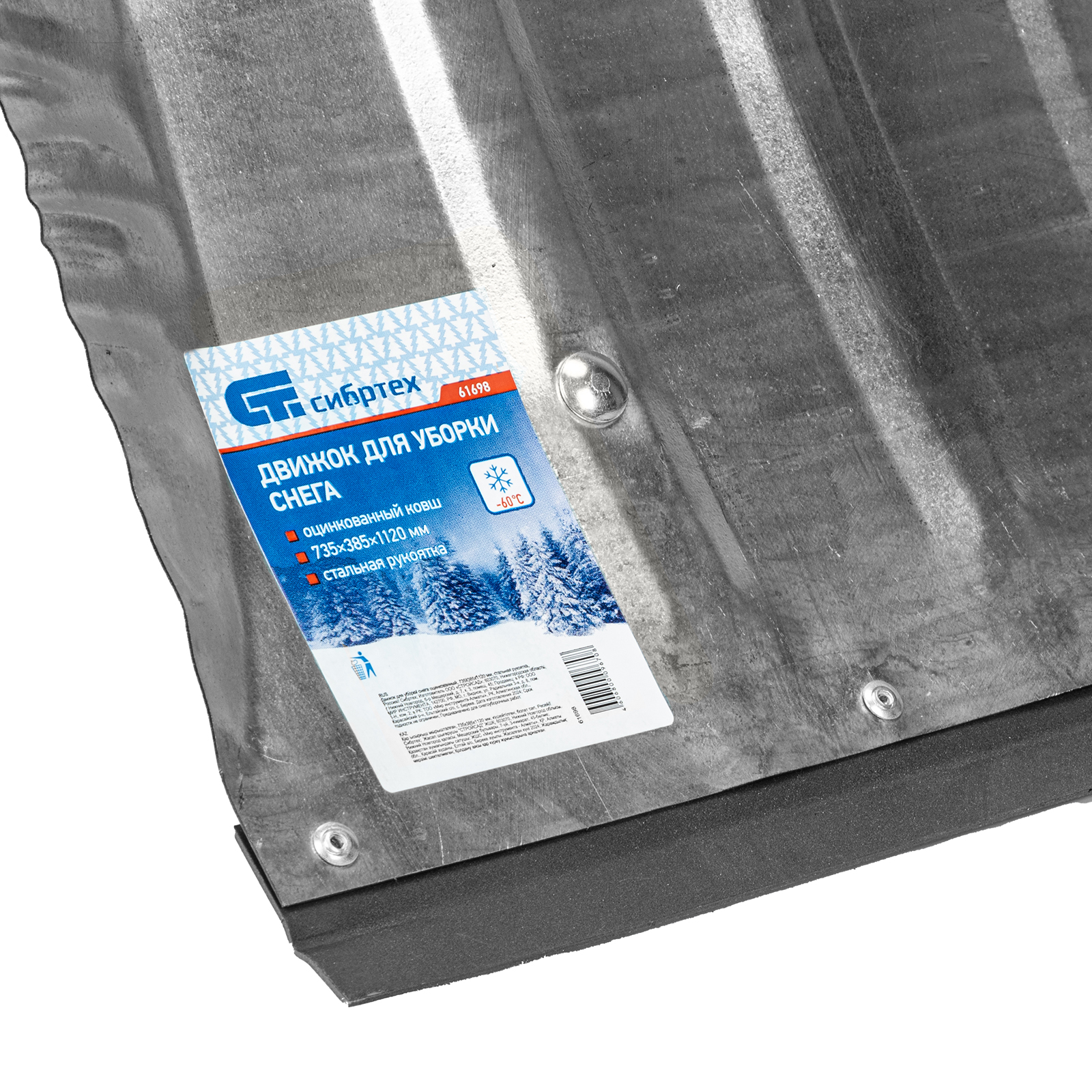 Движок для уборки снега оцинкованный, 735x385x1120 мм, стальная рукоятка, Сибртех