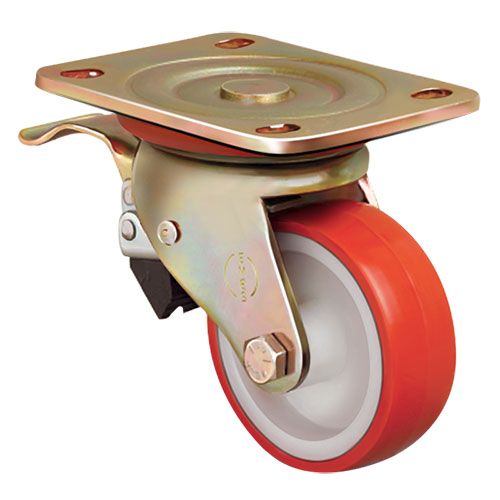 Большегрузное колесо EMES ED01 ZBP 125 F имеет поворотный кронштейн с ножным тормозом. Полиуретановая шинка устойчива к истиранию и механическим повреждениям. Максимальная грузоподъемность колесной опоры составляет 300 кг, общая высота — 170 мм. Обод изготовлен из нейлона. Модель подходит для установки на платформенные тележки, передвижное складское и строительное оборудование.