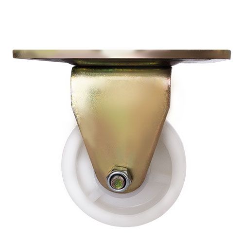 Данное большегрузное нейлоновое колесо предназначено для установки на передвижное оборудование, используемое в пищевой, химической и фармацевтической промышленности. Оно не боится воздействия влаги и различных химически агрессивных веществ, отличается низким коэффициентом трения и высокой износостойкостью. Шариковый подшипник в оси обеспечивает плавное вращение. Неповоротный кронштейн изготовлен из оцинкованной стали, тип крепления — платформа с отверстиями под болты. Максимальная грузоподъемность модели — 750 кг.