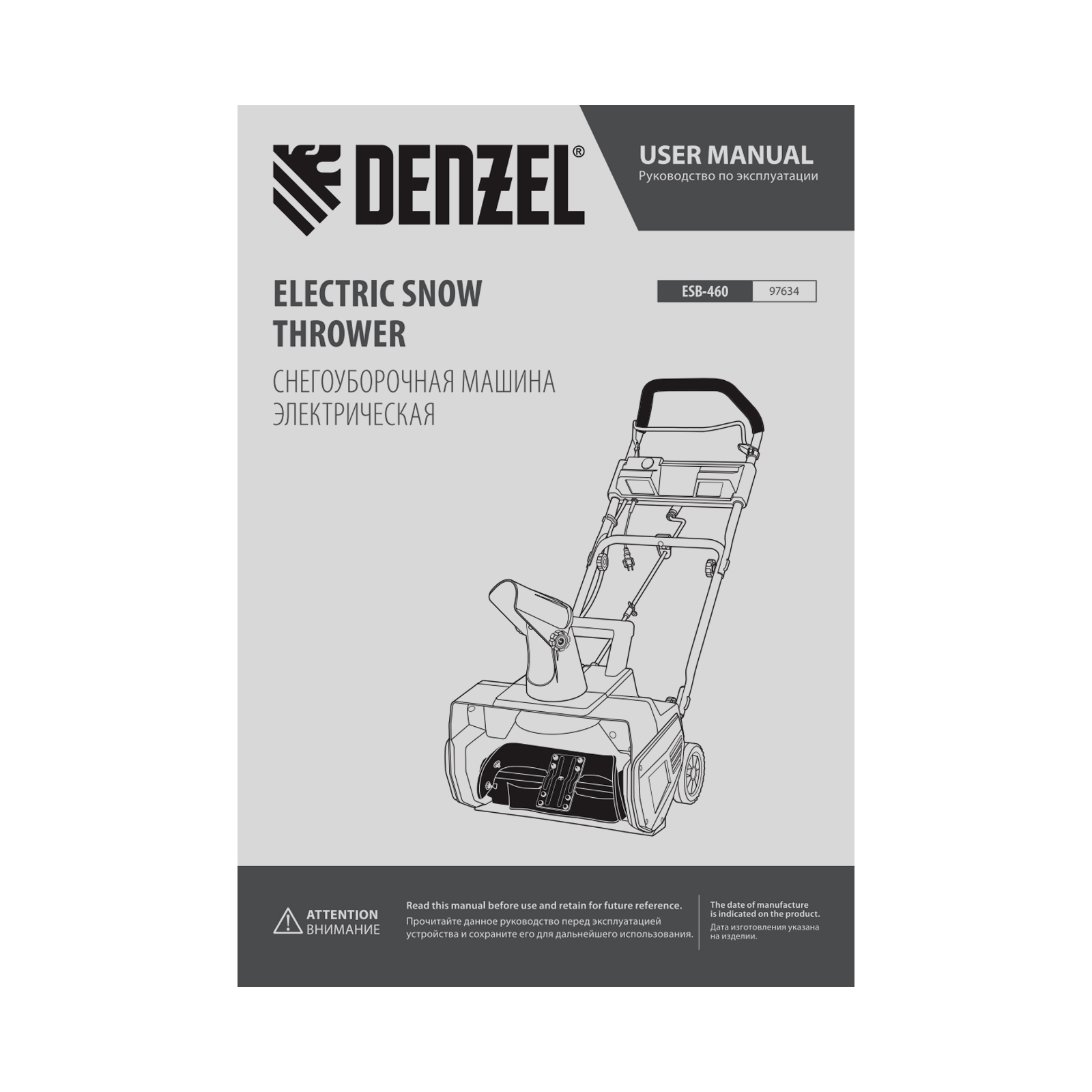 Электрическая снегоуборочная машина ESB-460, 2 кВт Denzel в Москве