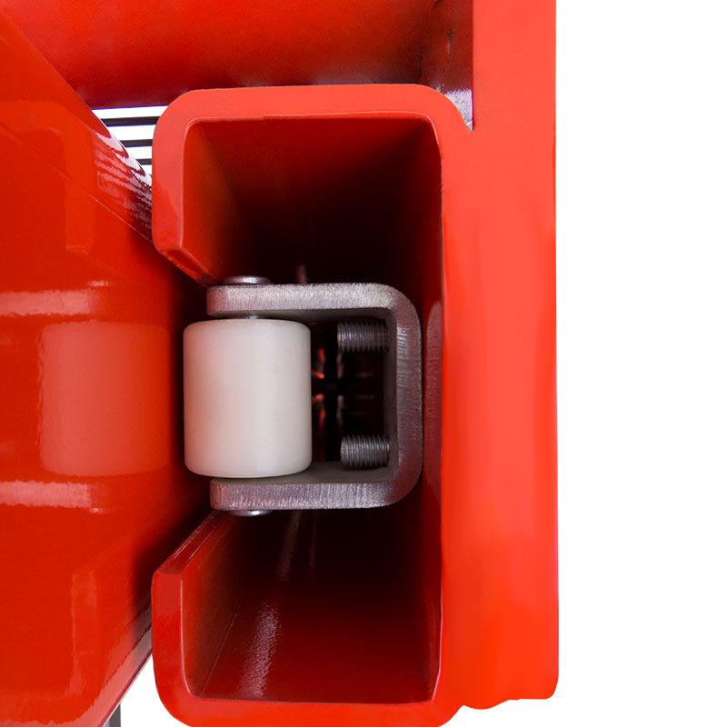 Наличие цепной связи между ручкой управления и поворотным колесом позволяет усилить маневренность. С целью повышения безопасности и комфорта работы сотрудника на штабелере установлены защитные кожухи на колесах, предотвращающие возможность наезда на ноги, решетчатый экран мачты, стояночный тормоз и прорезиненное покрытие на рукоятке управления, исключающее скольжение рук.