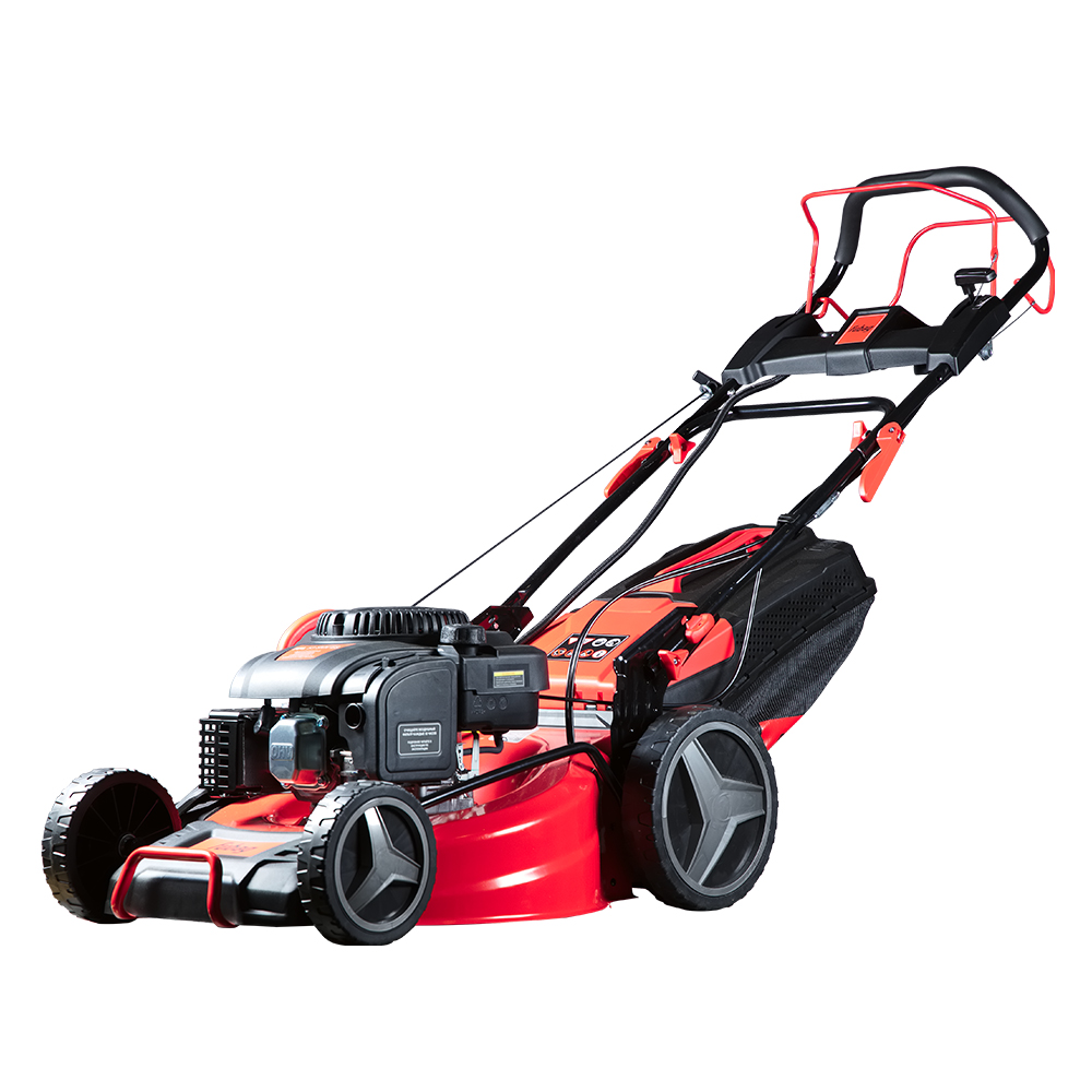 Надежный двигатель, Трехступенчатая регулировка скорости, Лёгкий запуск, Регулируемый наклон ручки, Колеса для идеального газона |